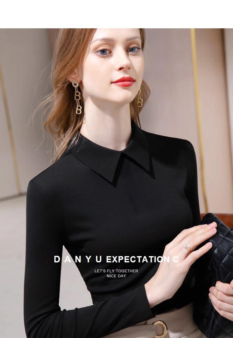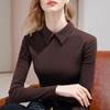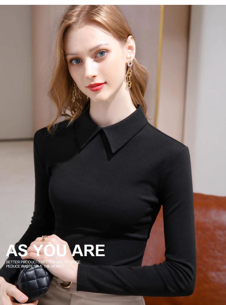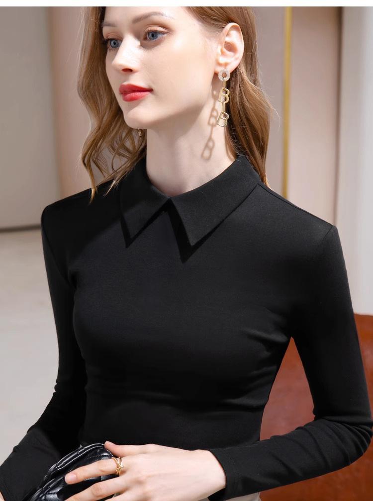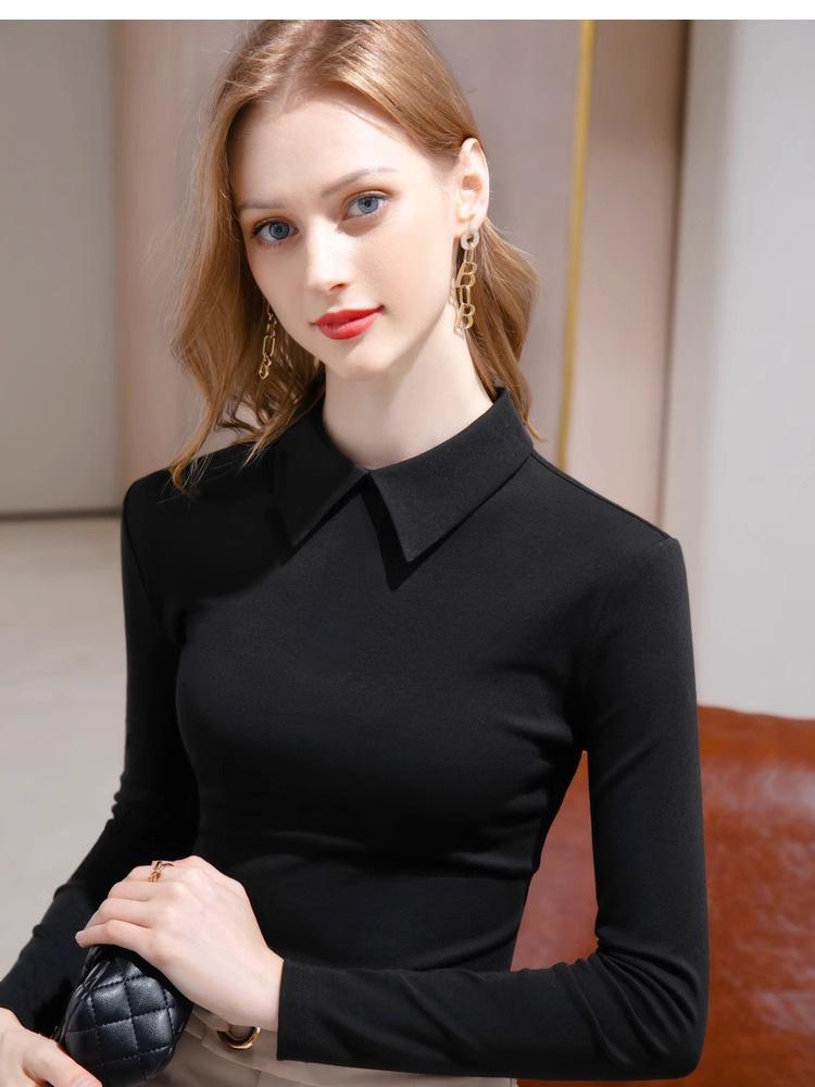 Camiseta base de terciopelo negra delgada de estilo europeo, estilo Hong Kong, temperamento, reductora de edad, de manga larga, otoño e invierno, cuello polo, camiseta chic para mujer