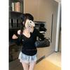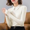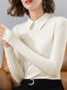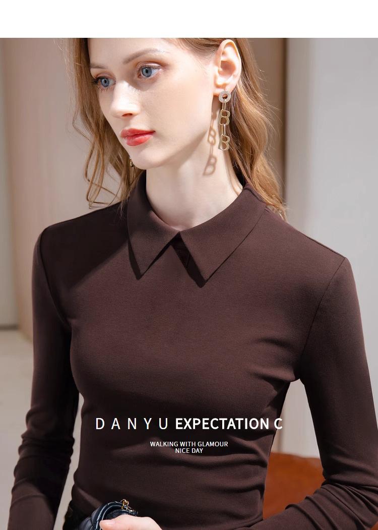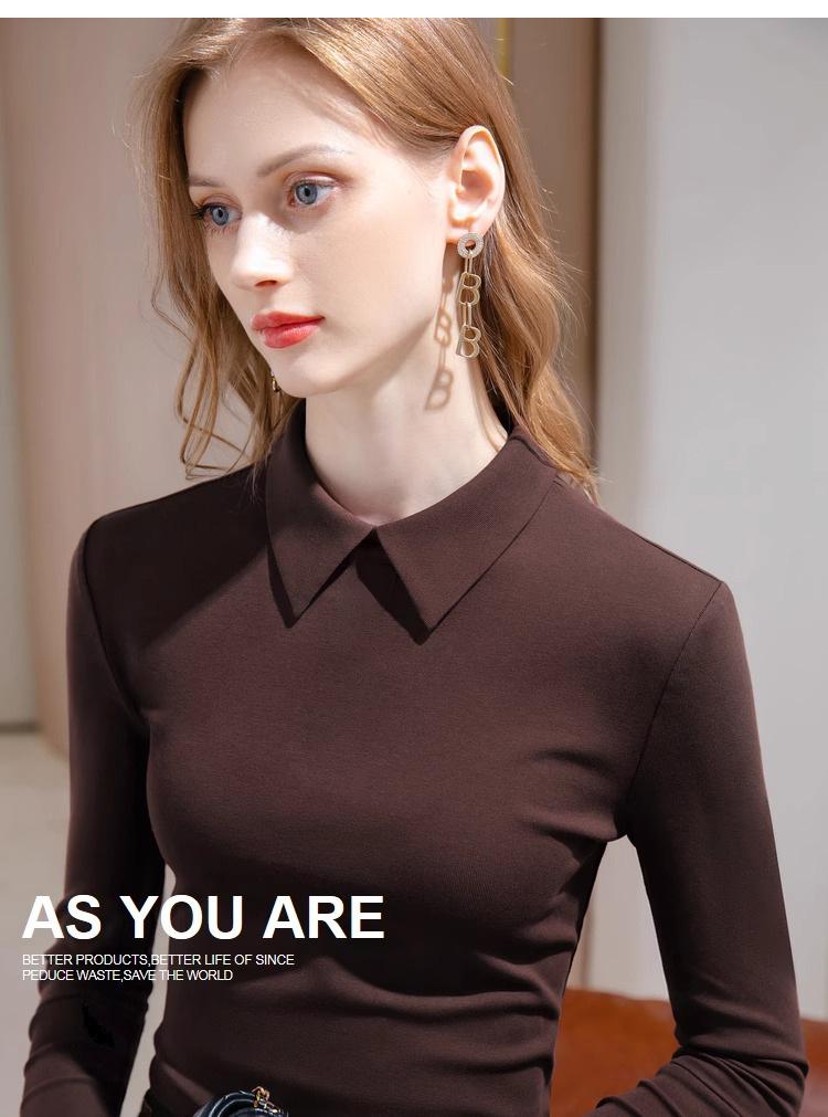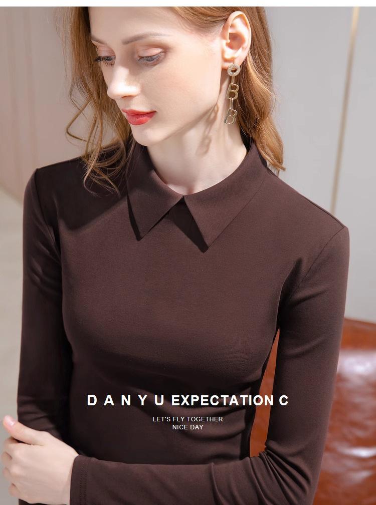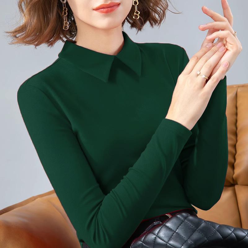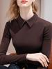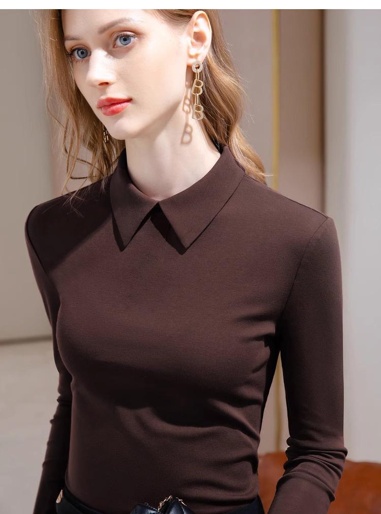 Camiseta base de terciopelo negra delgada de estilo europeo, estilo Hong Kong, temperamento, reductora de edad, de manga larga, otoño e invierno, cuello polo, camiseta chic para mujer