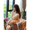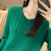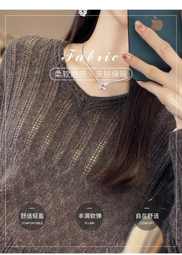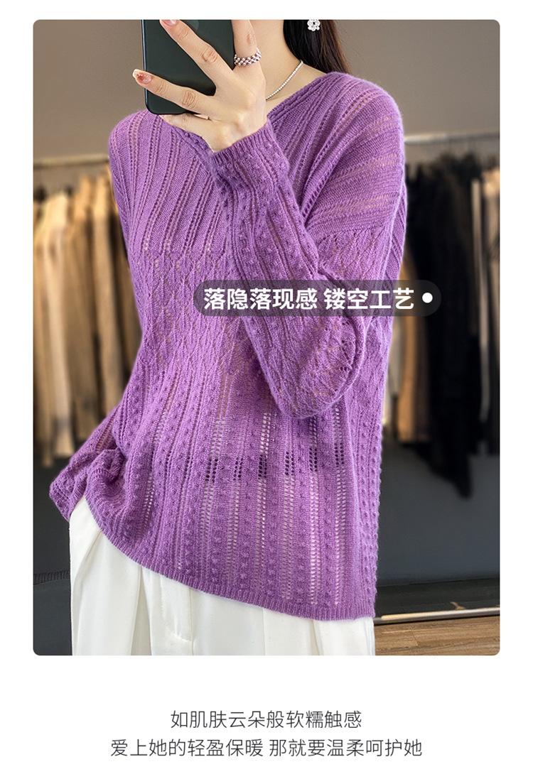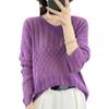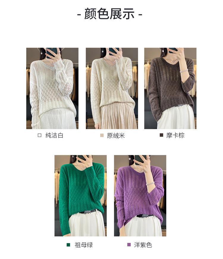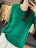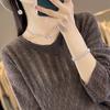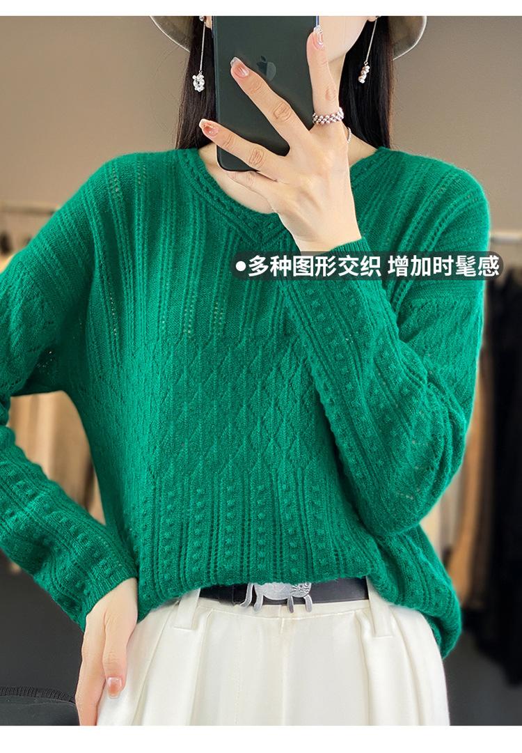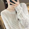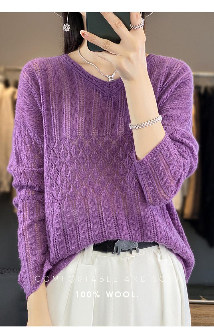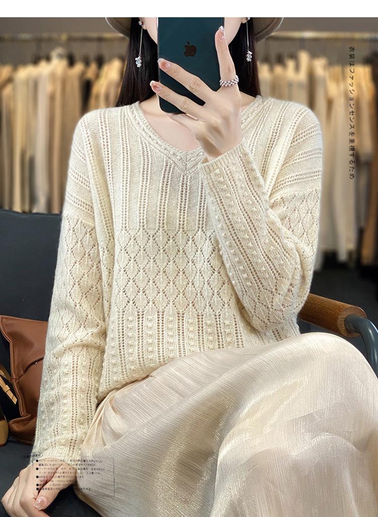 Suéter de lana 100% pura con cuello en V y flores retorcidas de diamante para mujer, suéter de punto de manga larga ahuecado con flores retorcidas, top holgado de corte bajo
