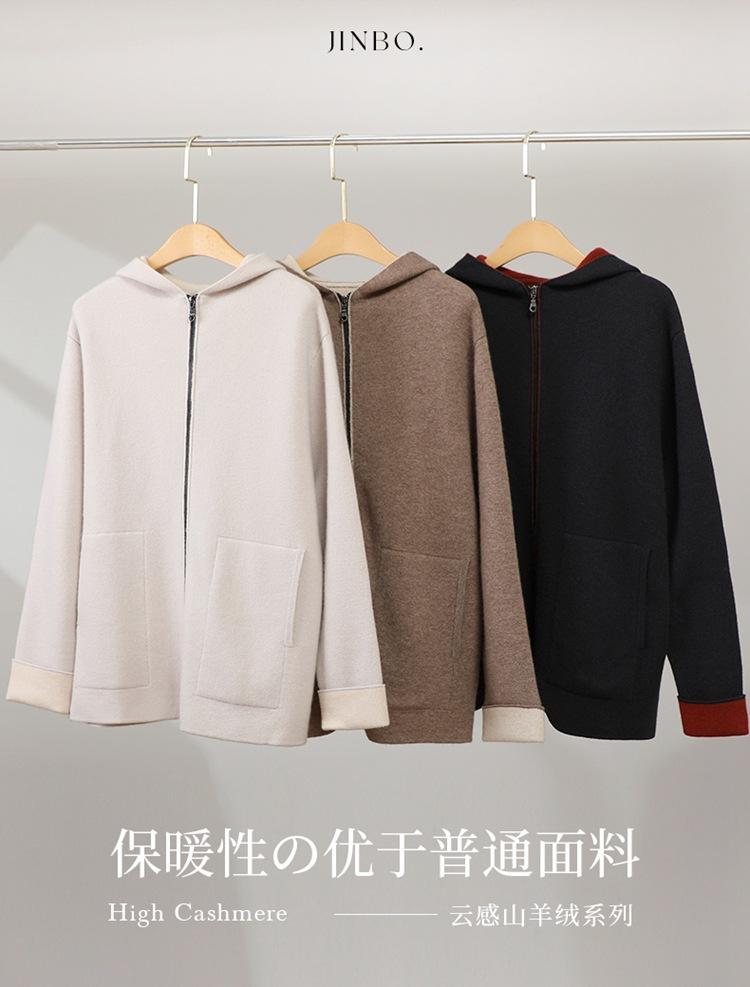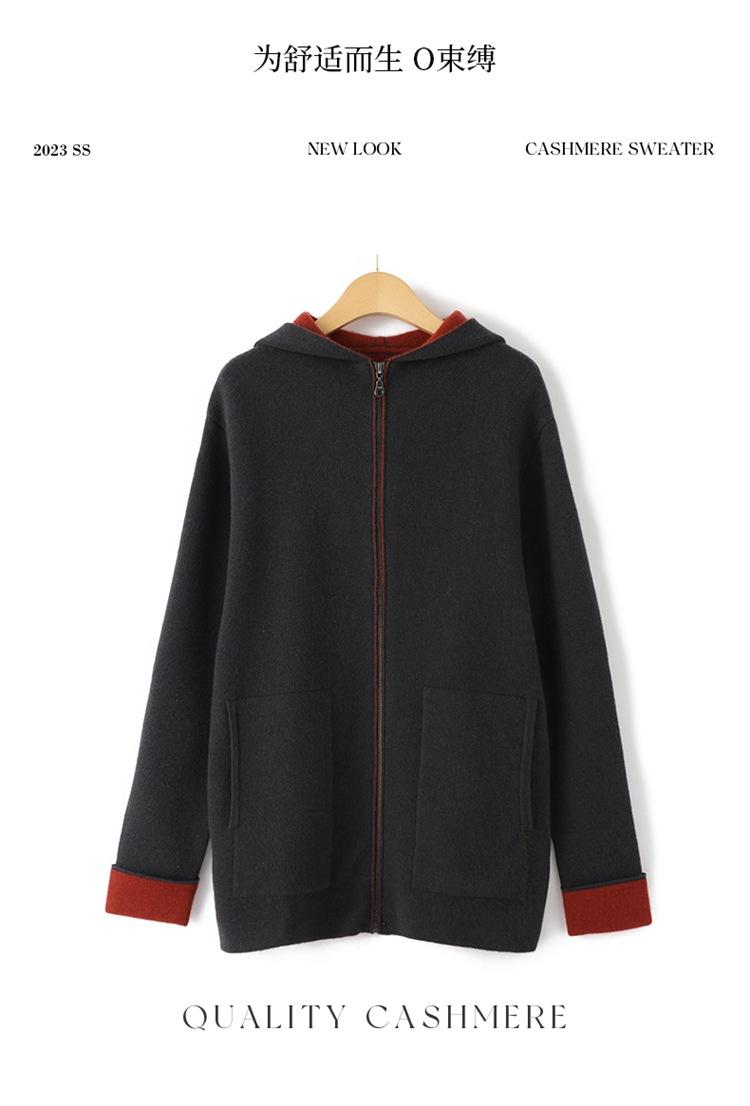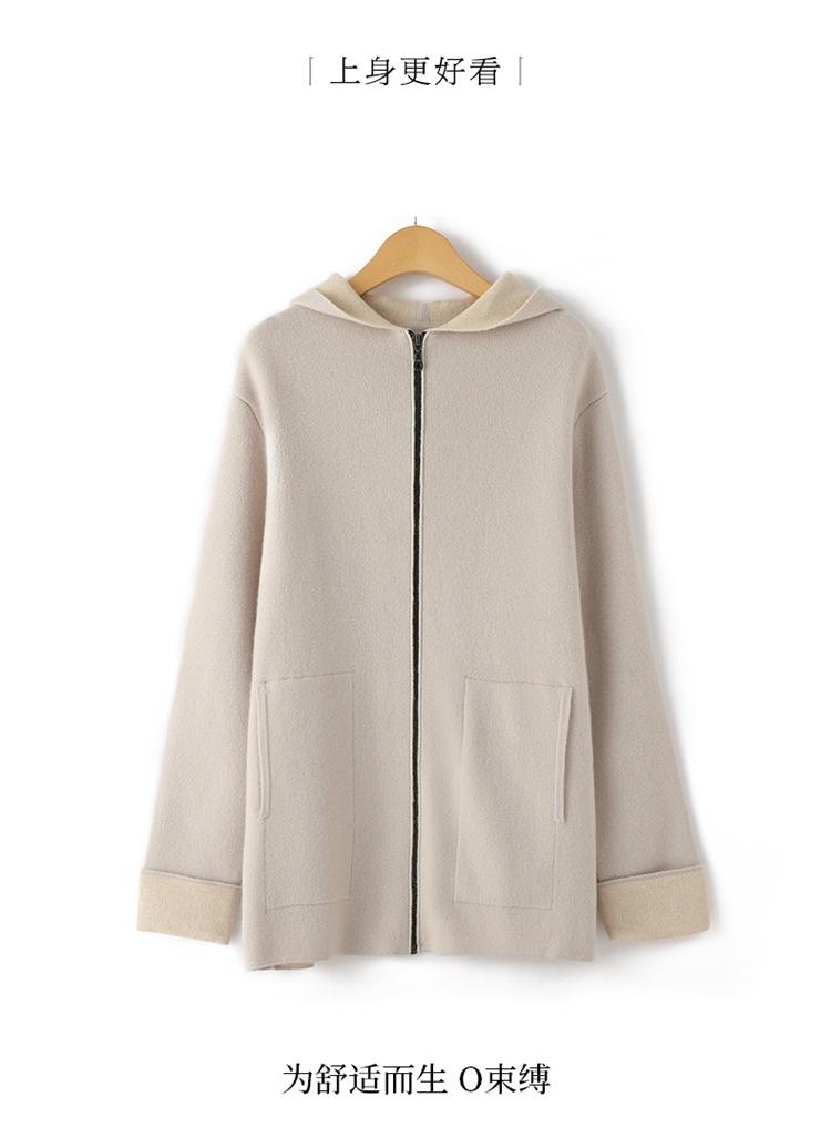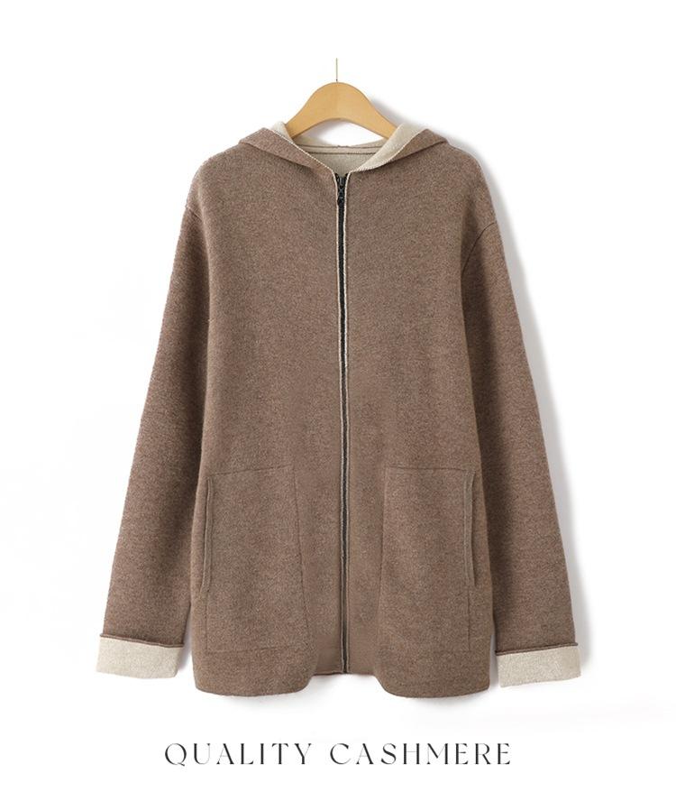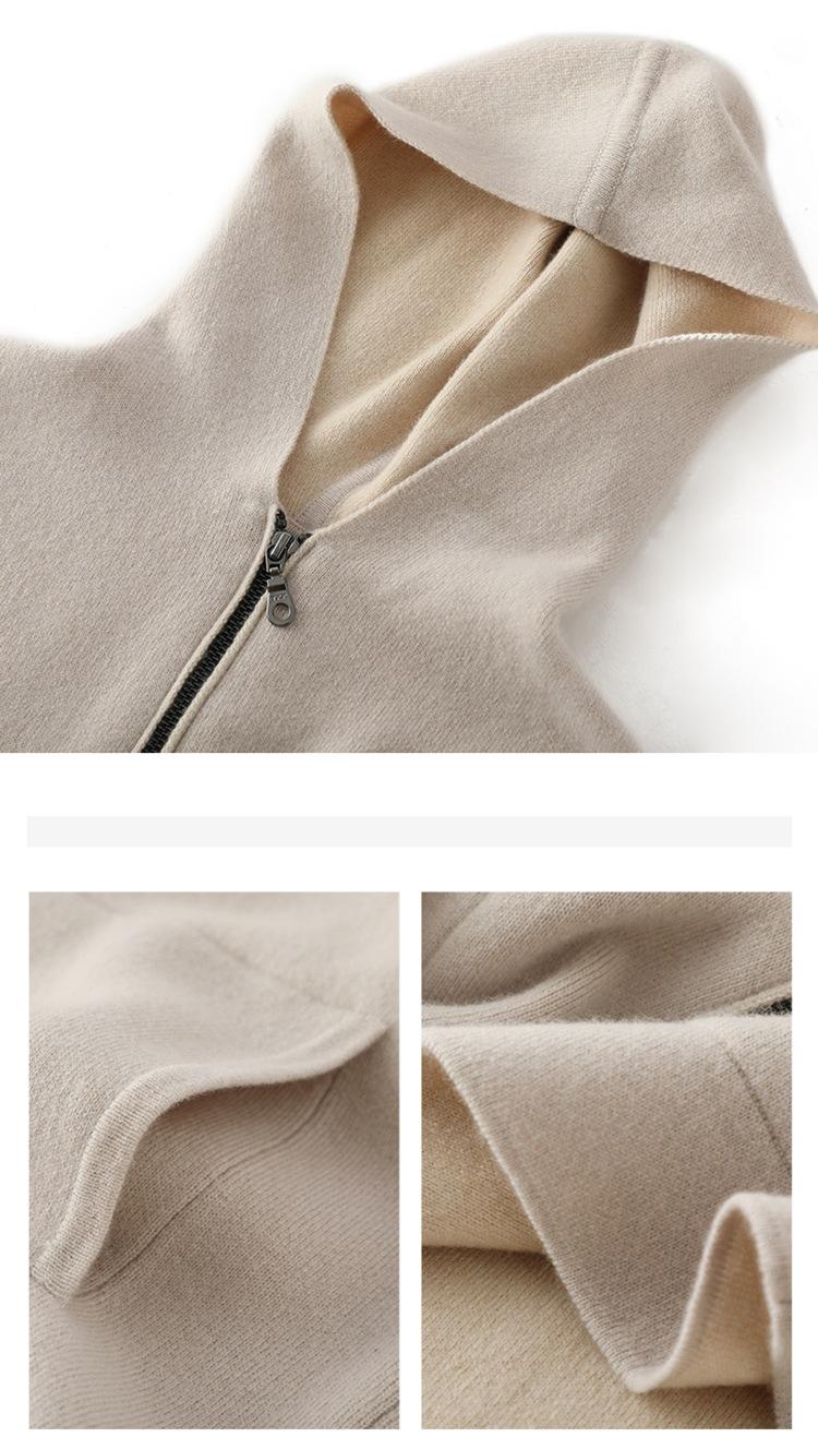 Chaqueta de Cachemira Gruesa con Capucha de Color Claro para Mujer Otoño e Invierno 2023 Cárdigan Holgado Casual de Capa de Aire de Longitud Media para Mujer