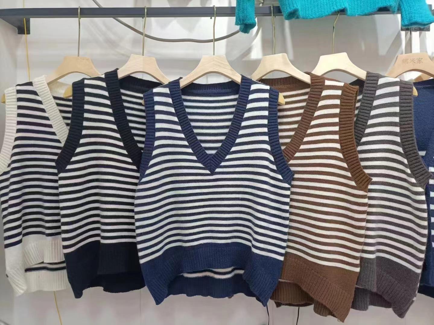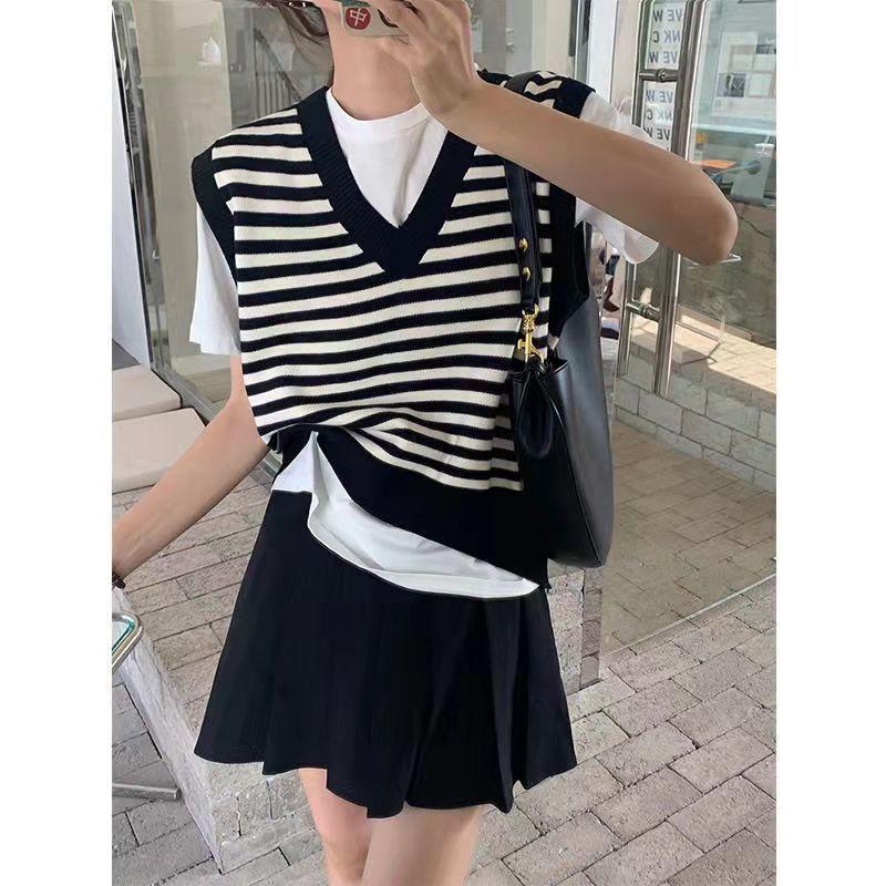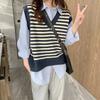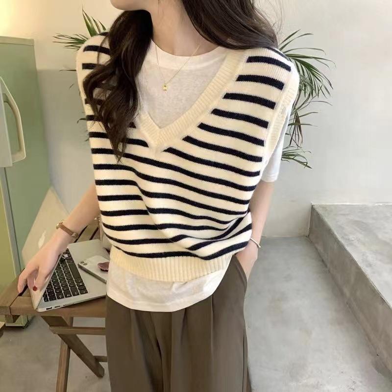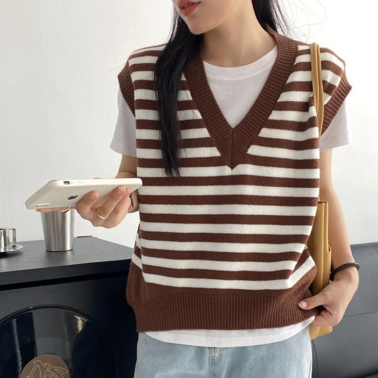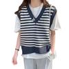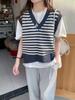 Chaleco de Punto Rayado para Mujer 2025 Nuevo Abrigo Chaleco sin Mangas en Capas Suelto Coreano Versátil Suéter Moderno