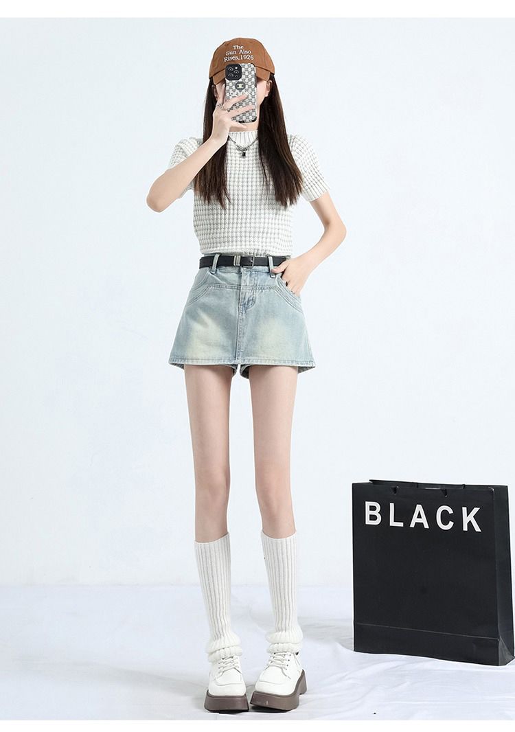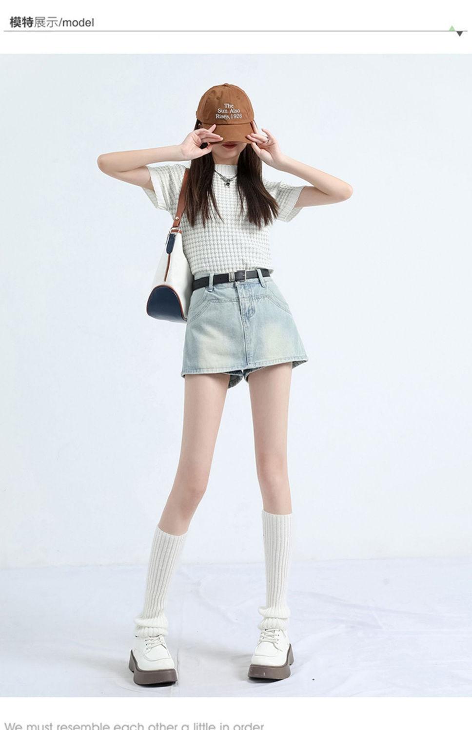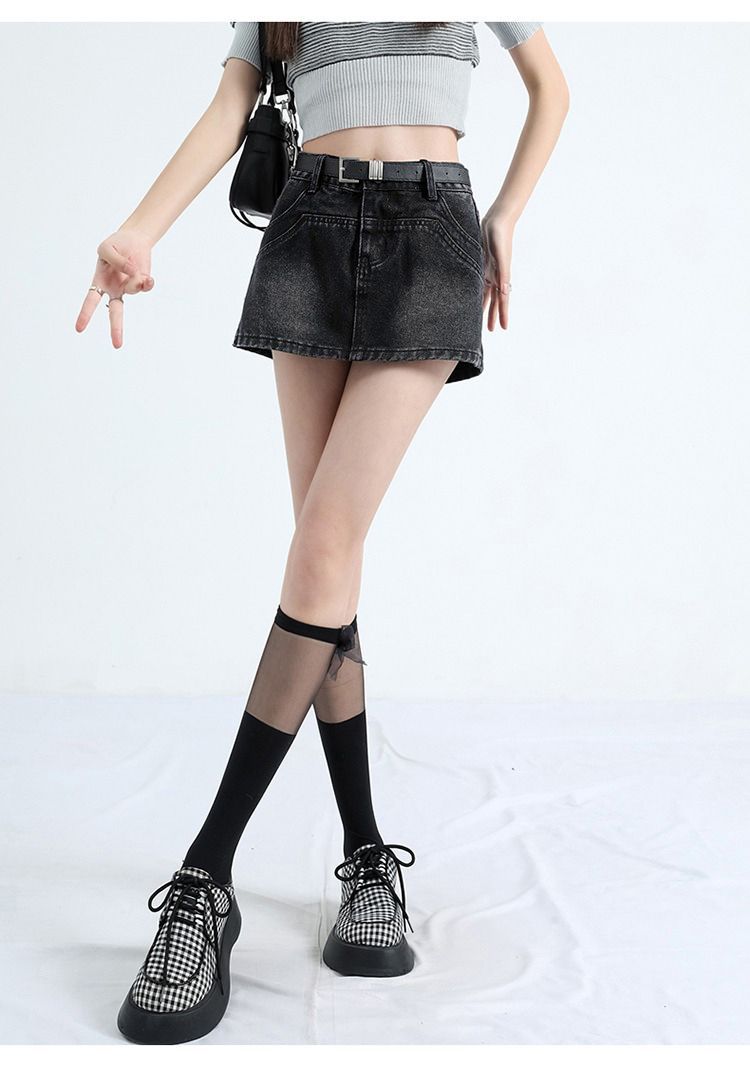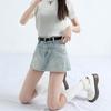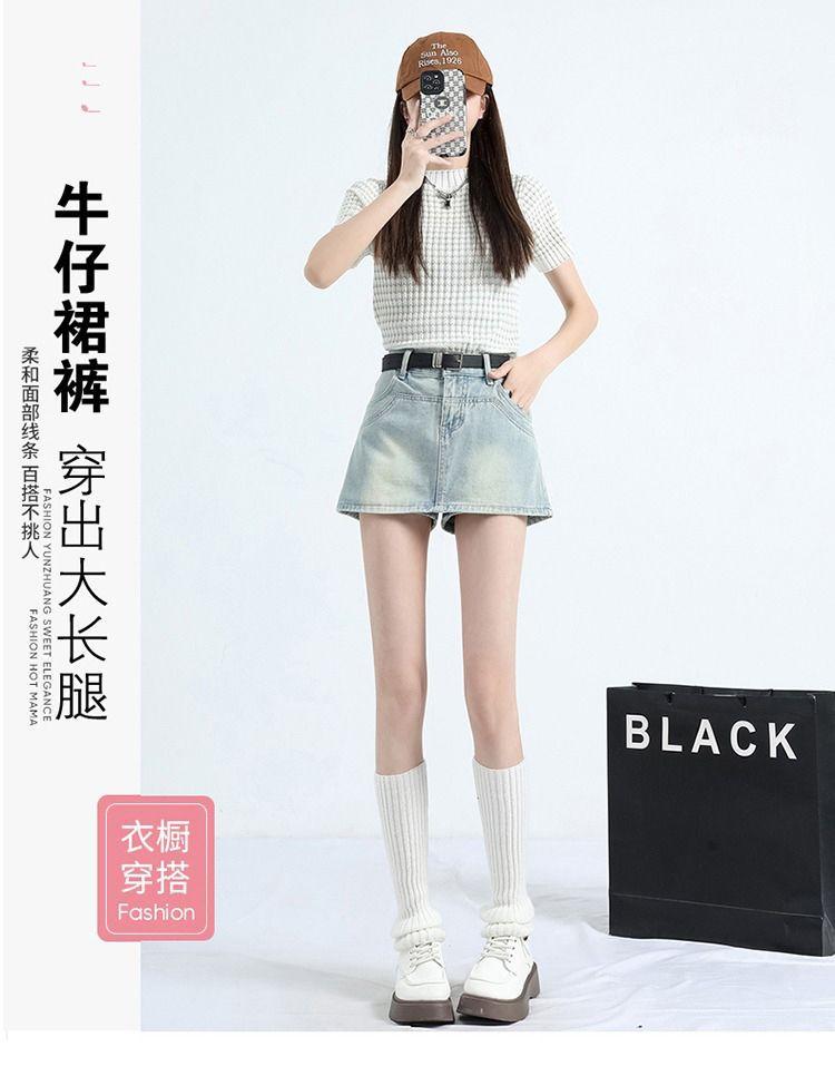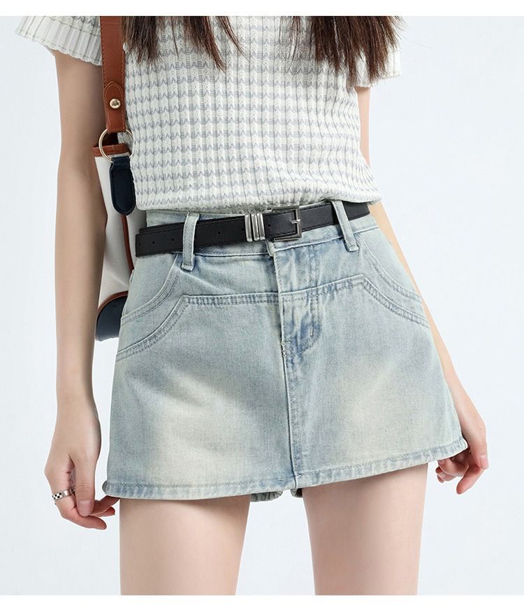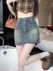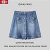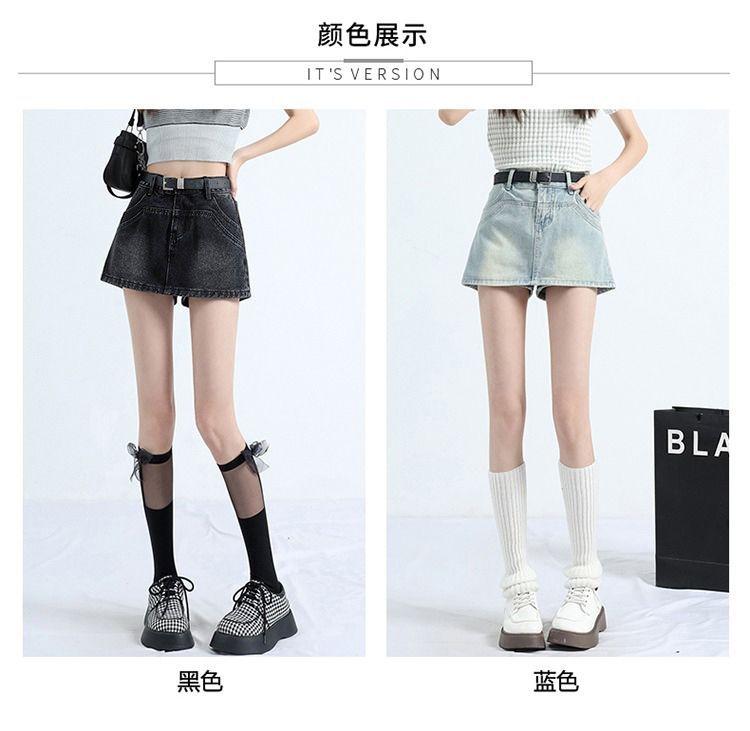 Falda de Mezclilla Adelgazante de Cintura Alta Color Claro para Mujer Primavera y Verano Falda de Cadera Pequeña Hot Girl Falda Línea A Pantalones Antideslumbrantes