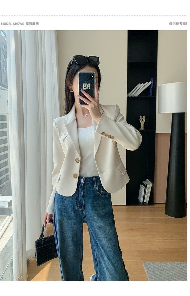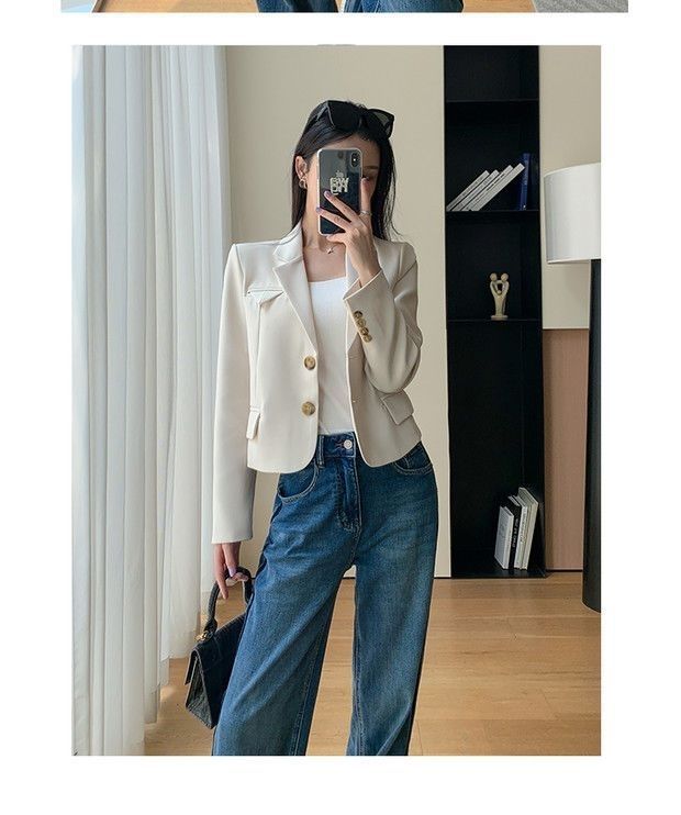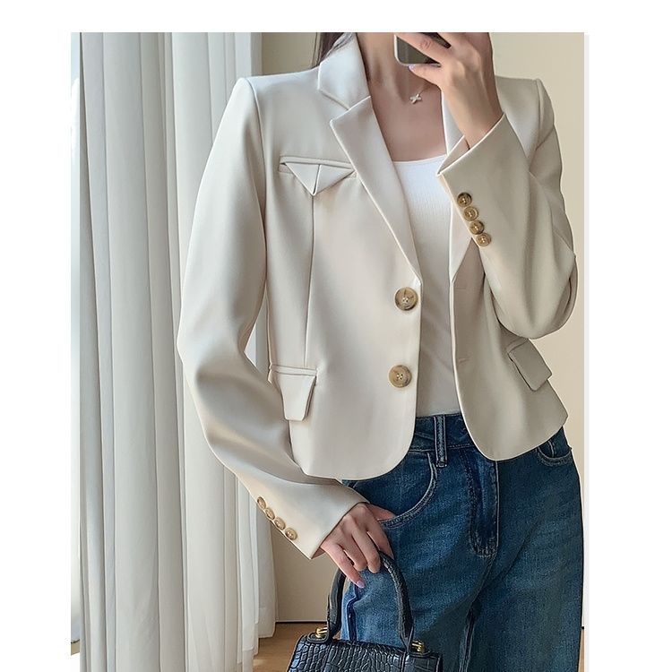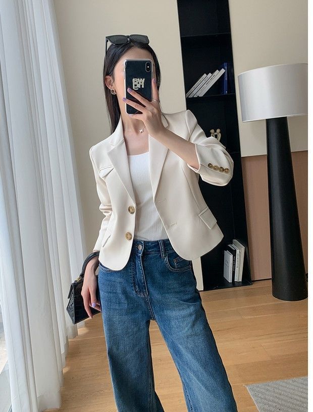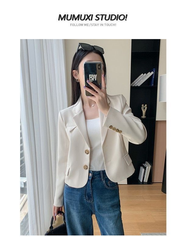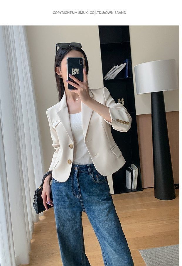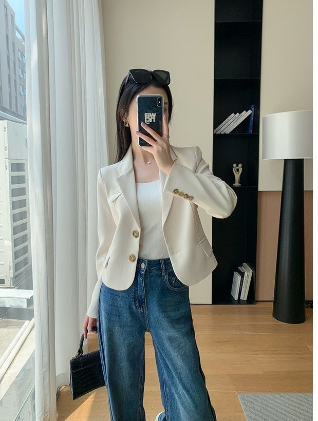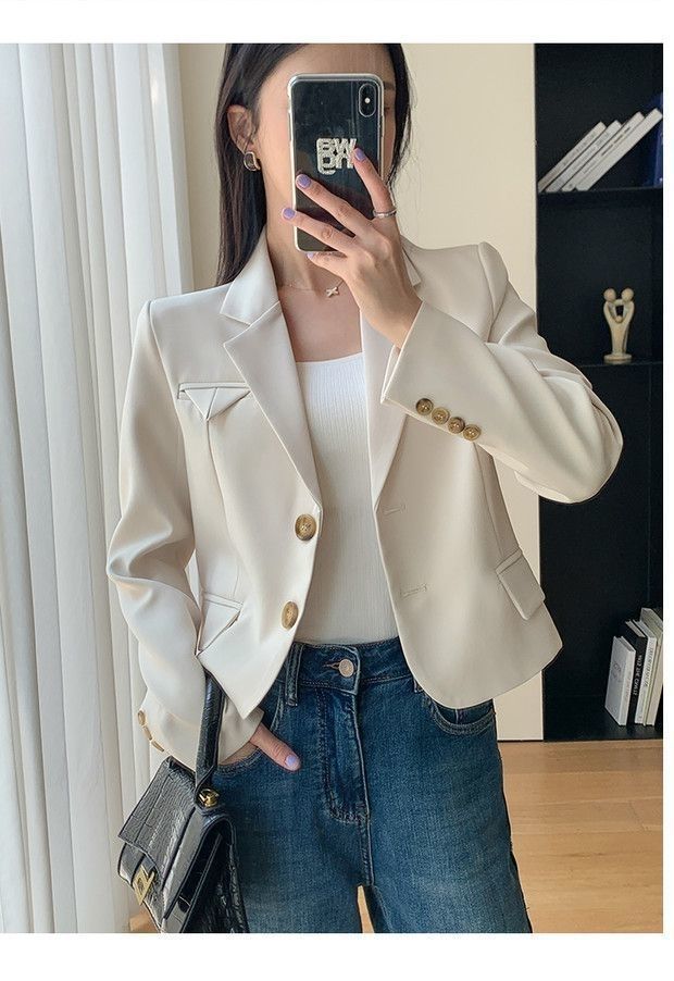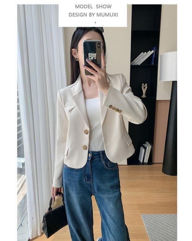 Chaqueta de traje corta pequeña para mujer, primavera y otoño 2024, nueva, color blanco crema, informal, de alta gama, ajustada.