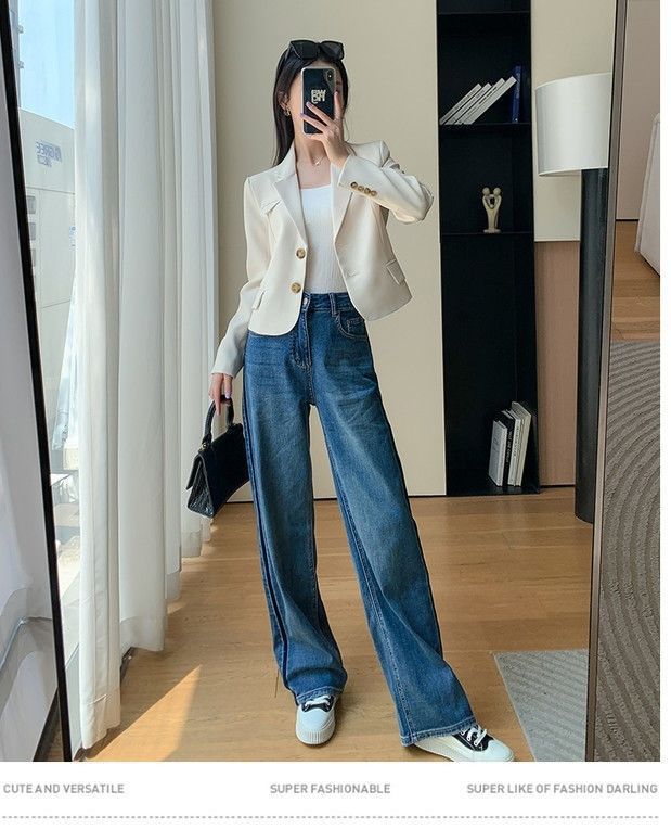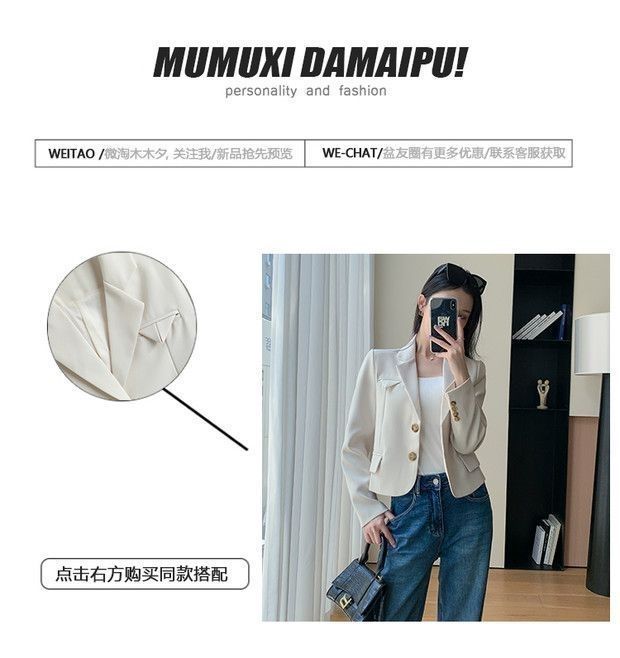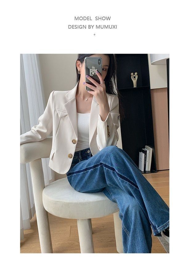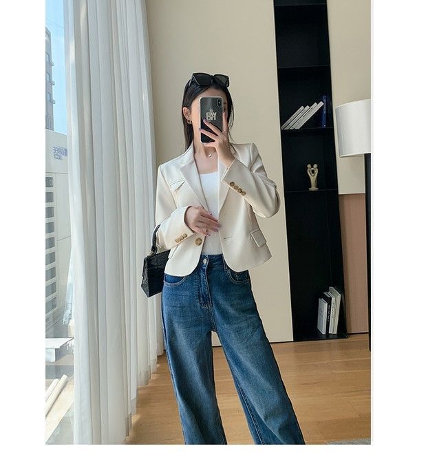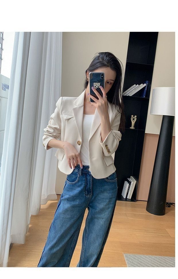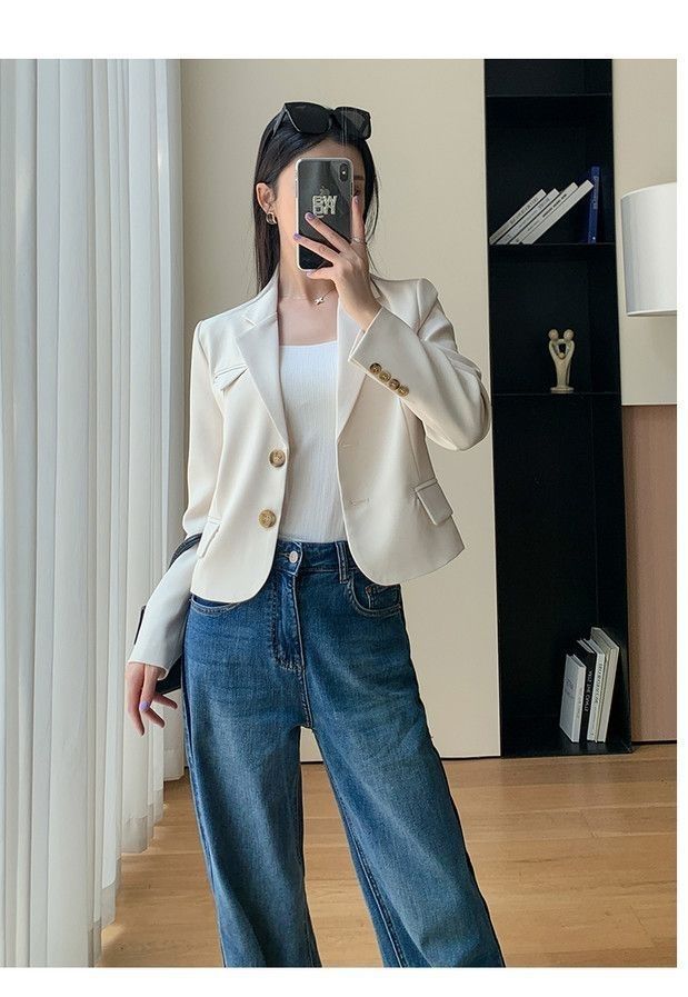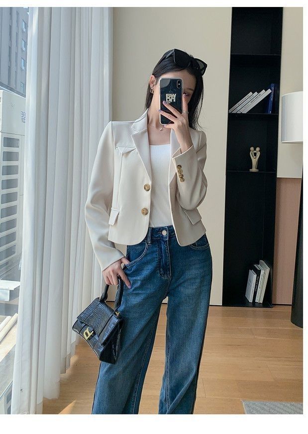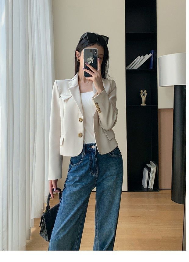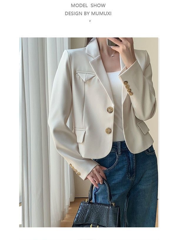 Chaqueta de traje corta pequeña para mujer, primavera y otoño 2024, nueva, color blanco crema, informal, de alta gama, ajustada.