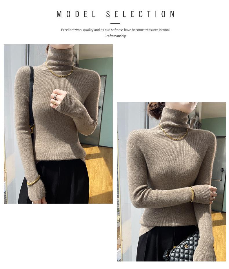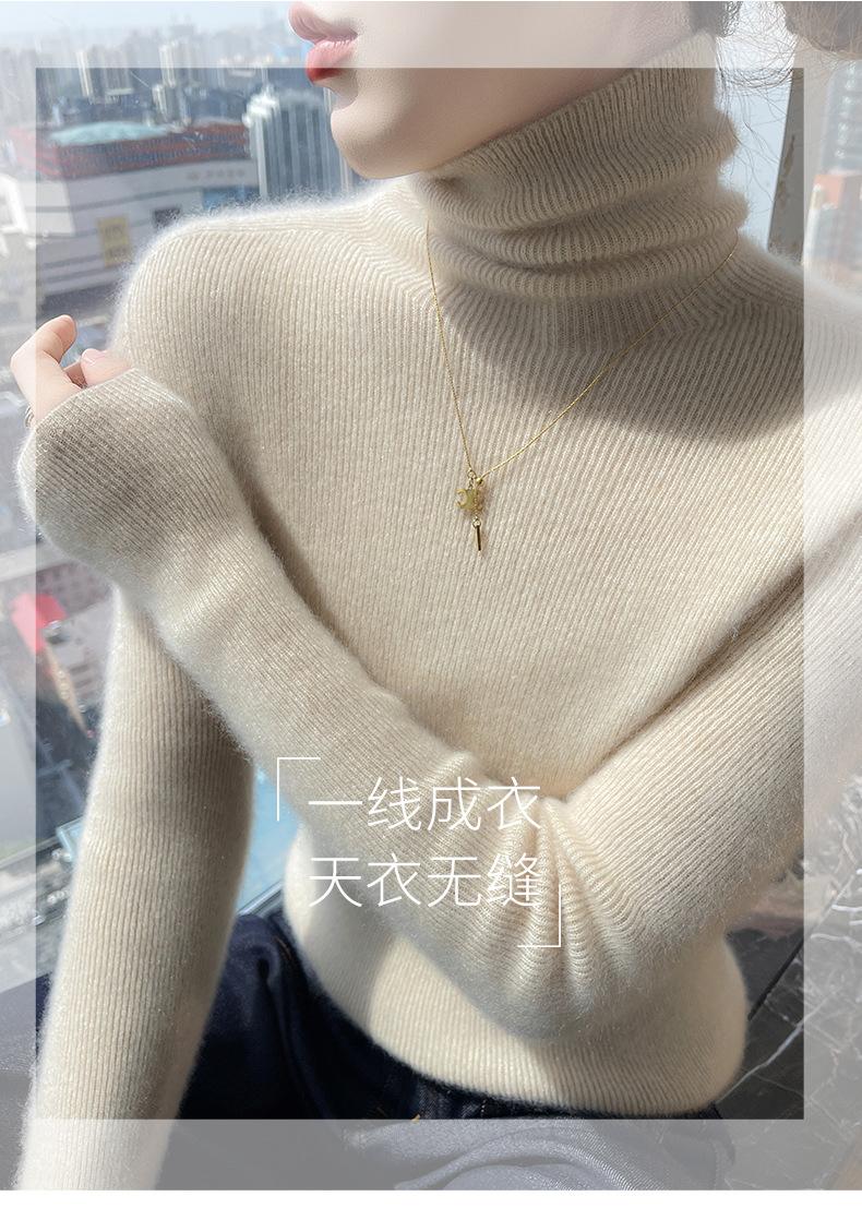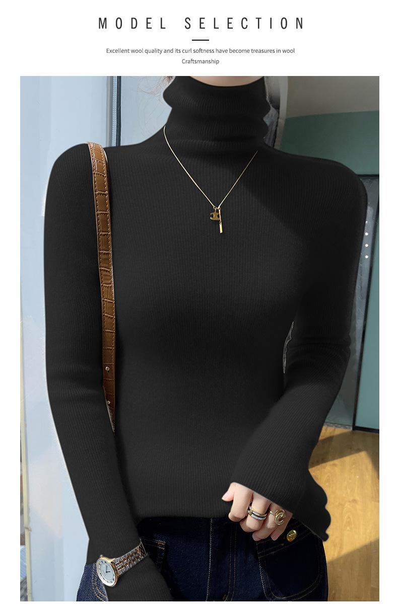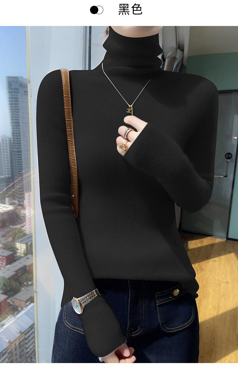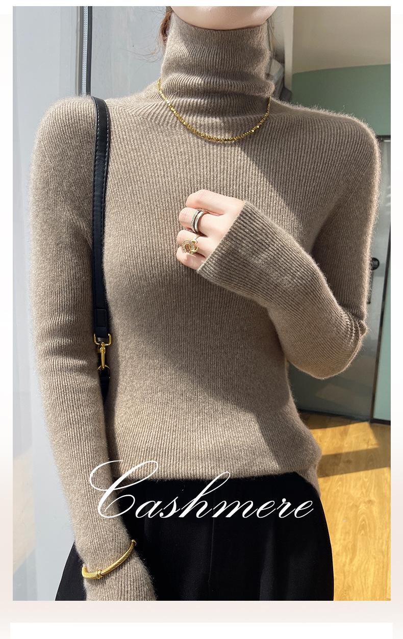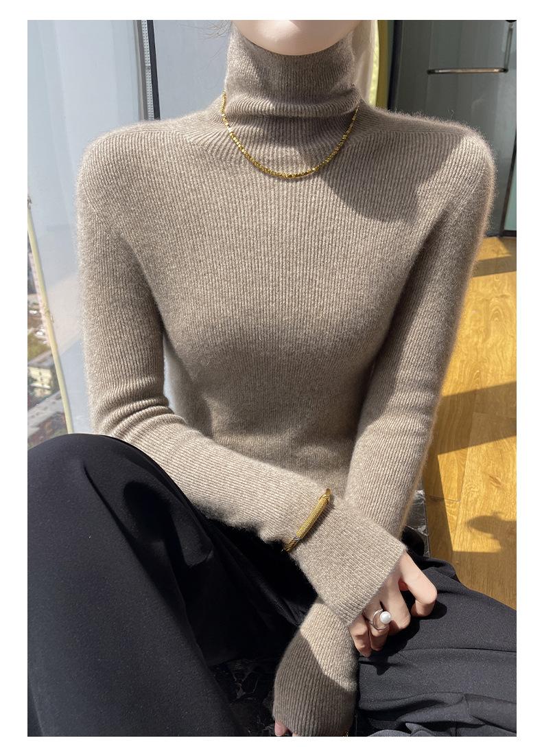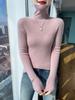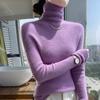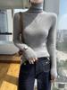 Nuevo Otoño e Invierno Sin Costuras de Una Línea Tejido Cuello Alto Camiseta Básica Cachemira para Mujer Manga Larga Silueta Adelgazante Suéter Suave y Ceroso para Mujer