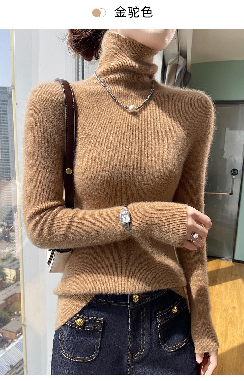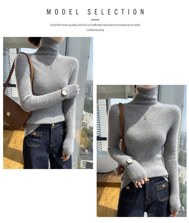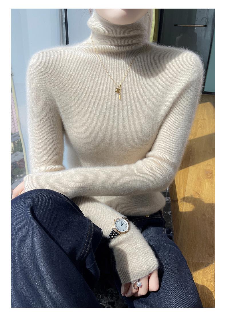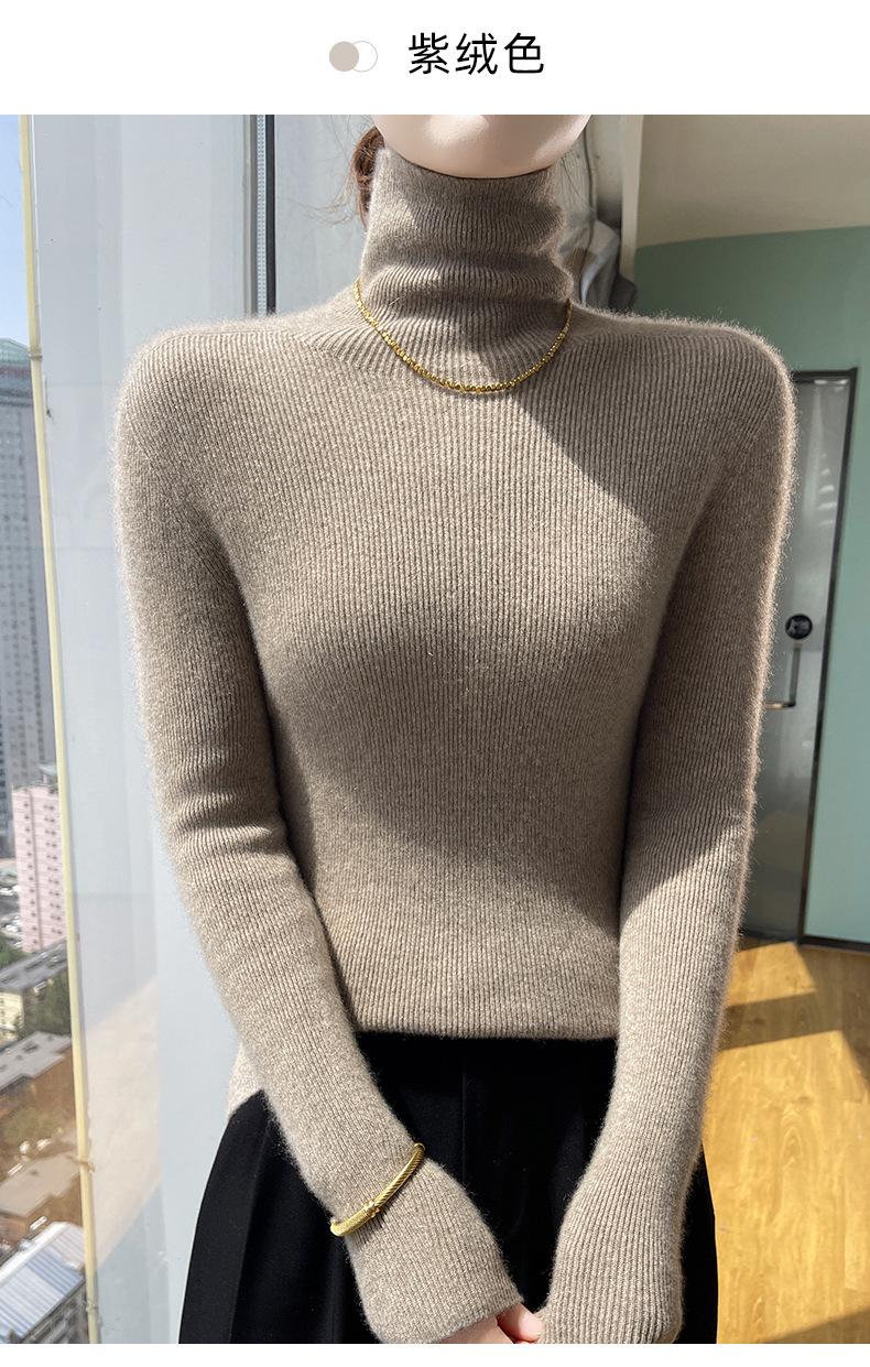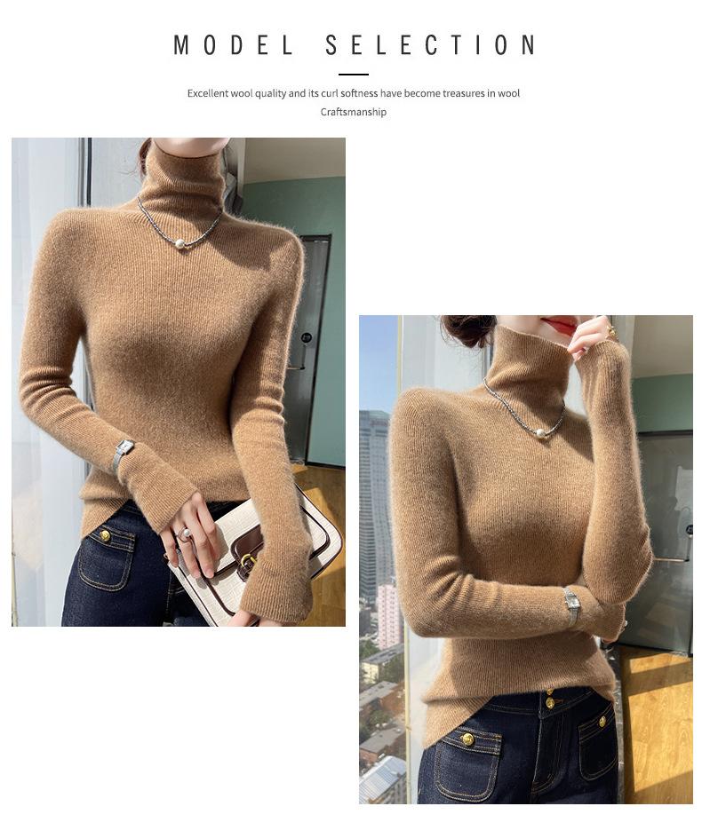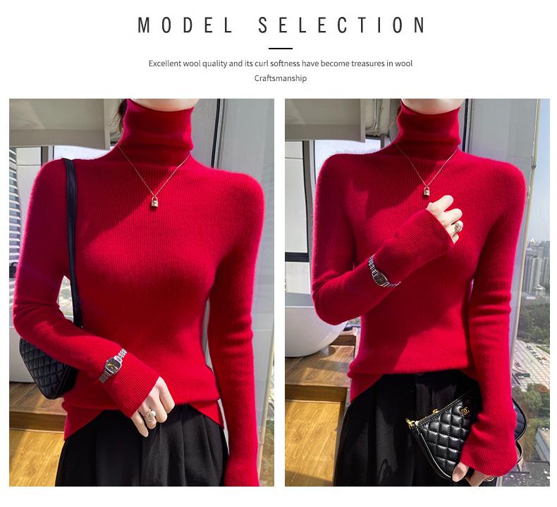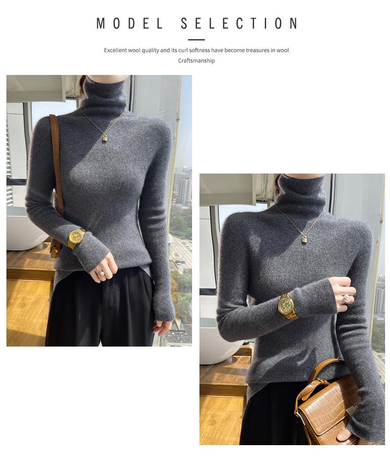 Nuevo Otoño e Invierno Sin Costuras de Una Línea Tejido Cuello Alto Camiseta Básica Cachemira para Mujer Manga Larga Silueta Adelgazante Suéter Suave y Ceroso para Mujer