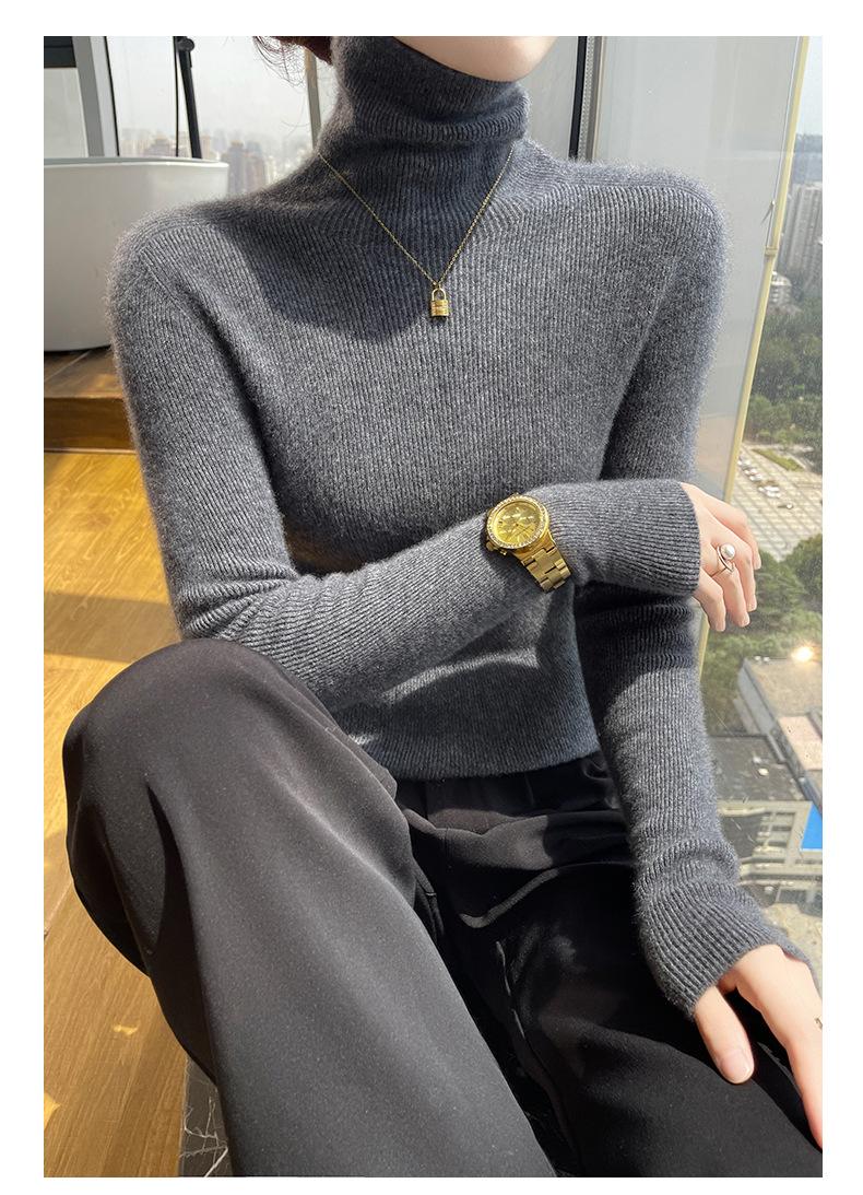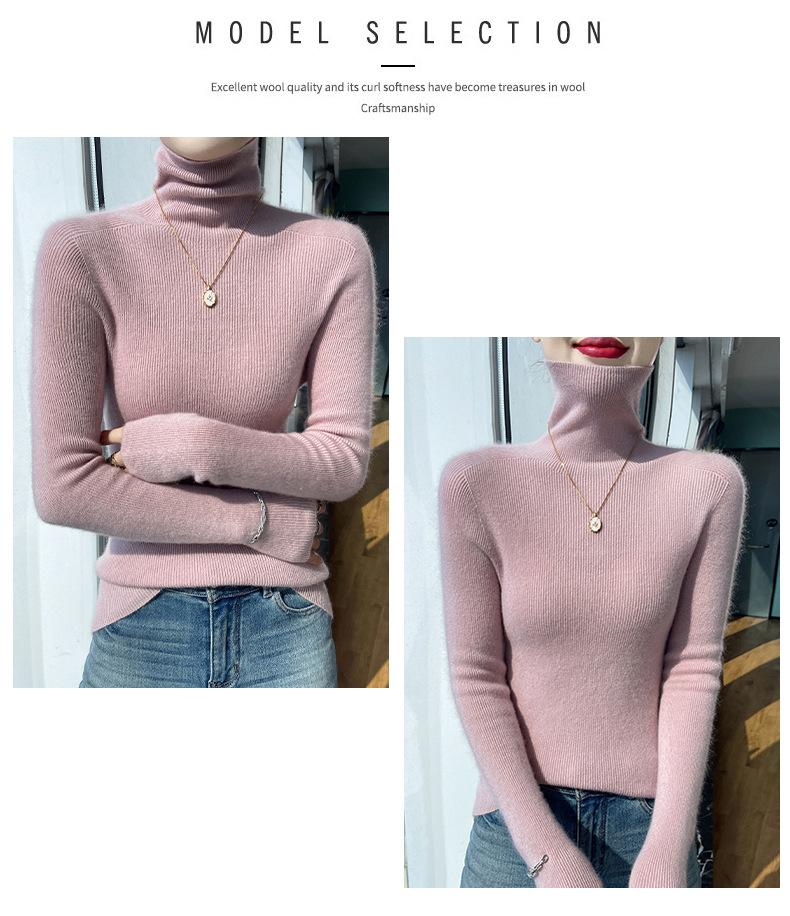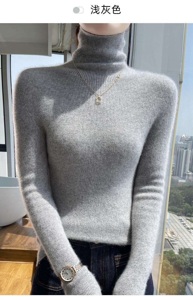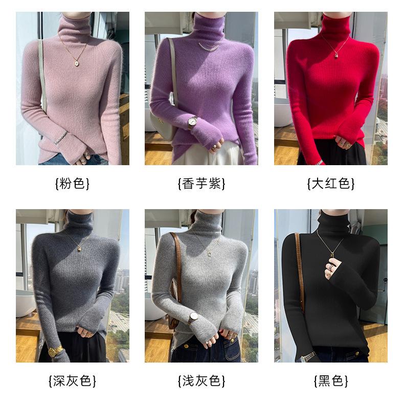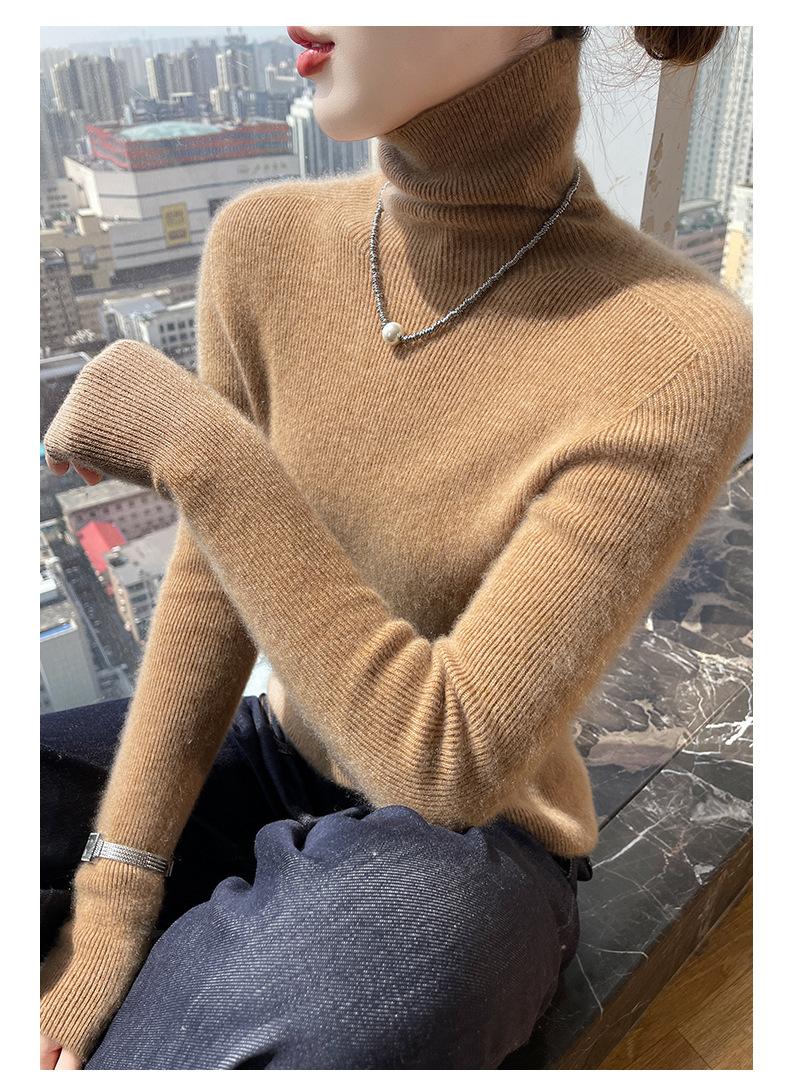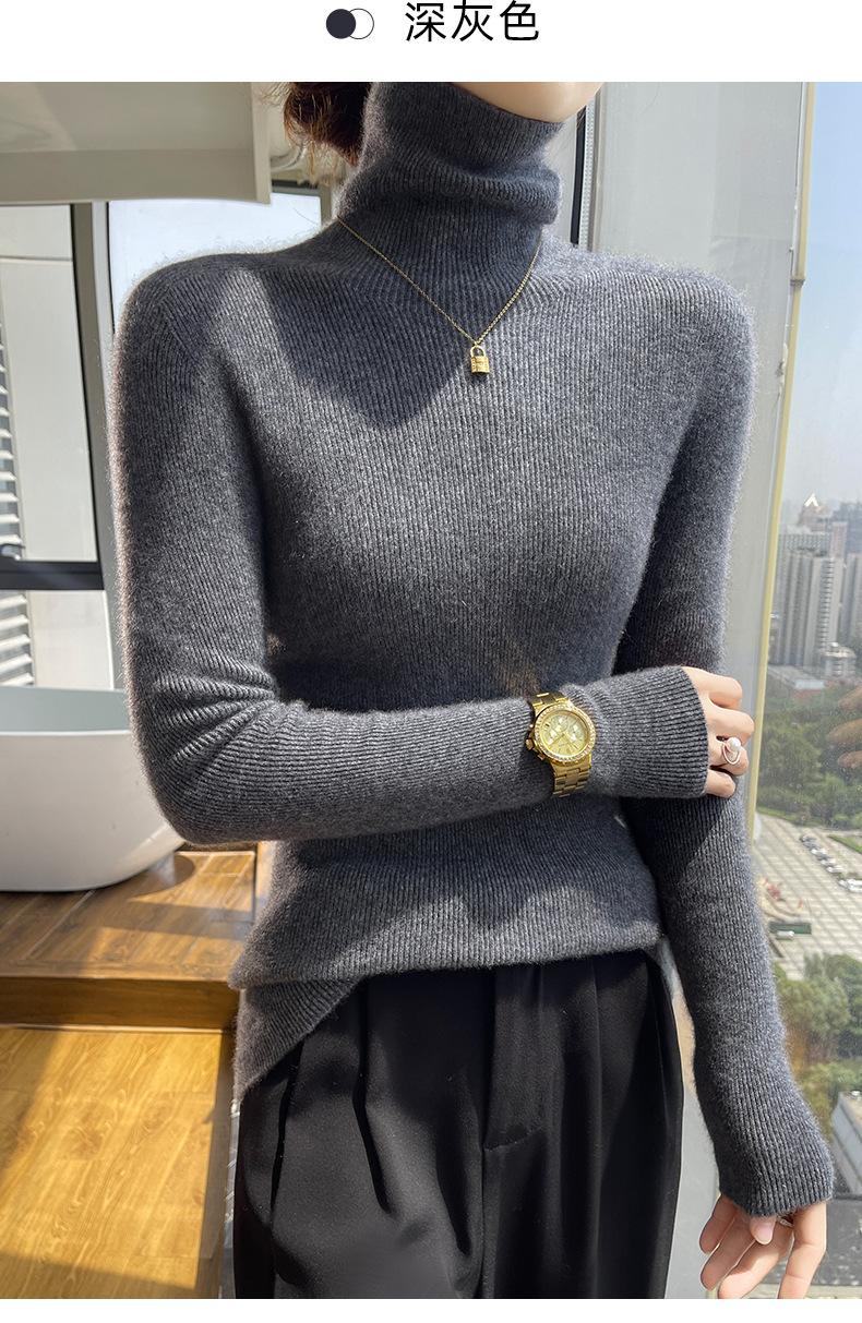 Nuevo Otoño e Invierno Sin Costuras de Una Línea Tejido Cuello Alto Camiseta Básica Cachemira para Mujer Manga Larga Silueta Adelgazante Suéter Suave y Ceroso para Mujer