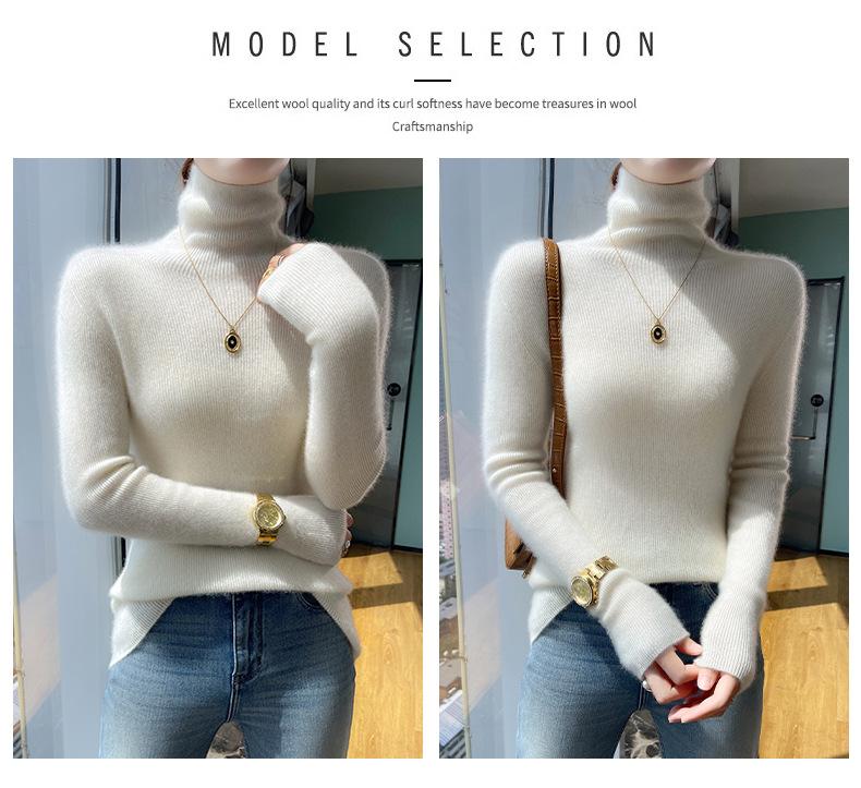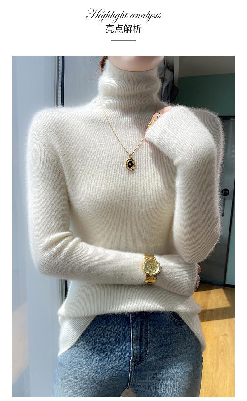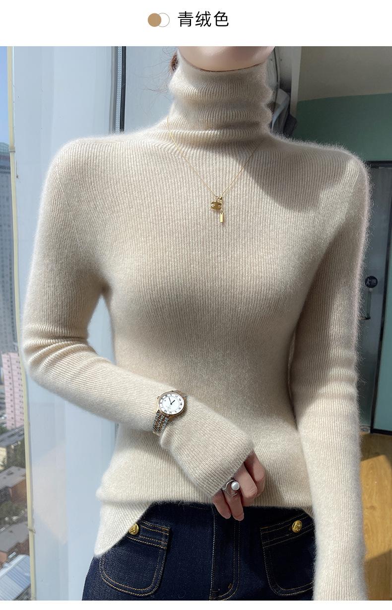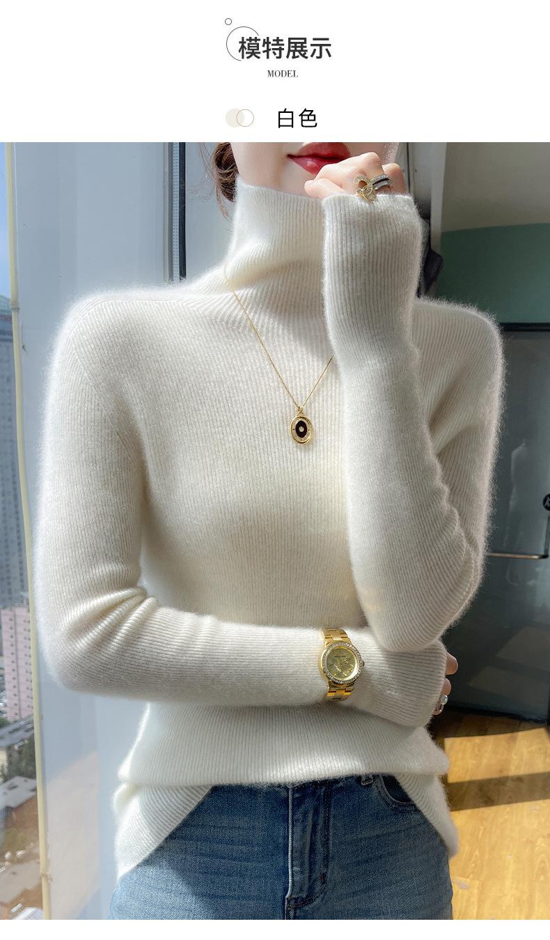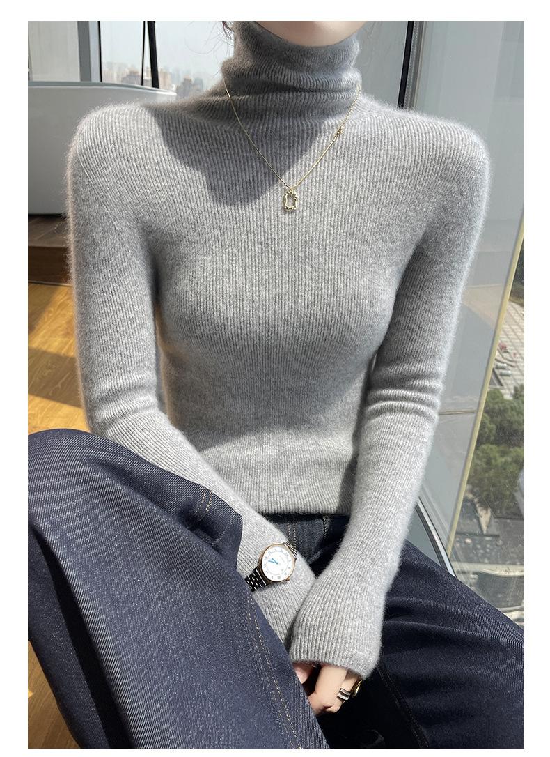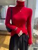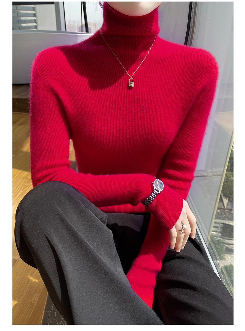 Nuevo Otoño e Invierno Sin Costuras de Una Línea Tejido Cuello Alto Camiseta Básica Cachemira para Mujer Manga Larga Silueta Adelgazante Suéter Suave y Ceroso para Mujer