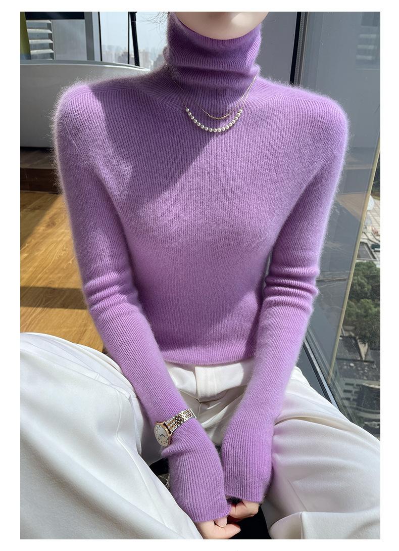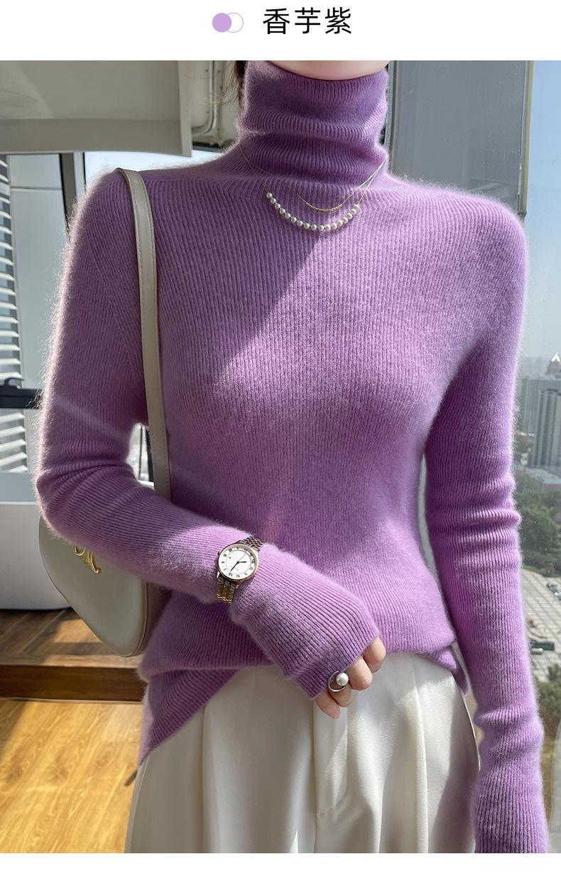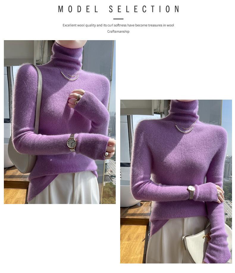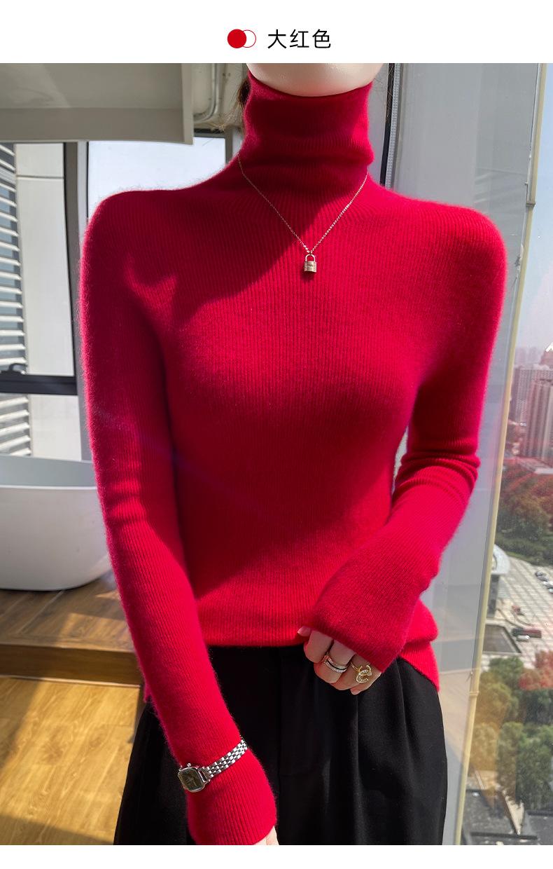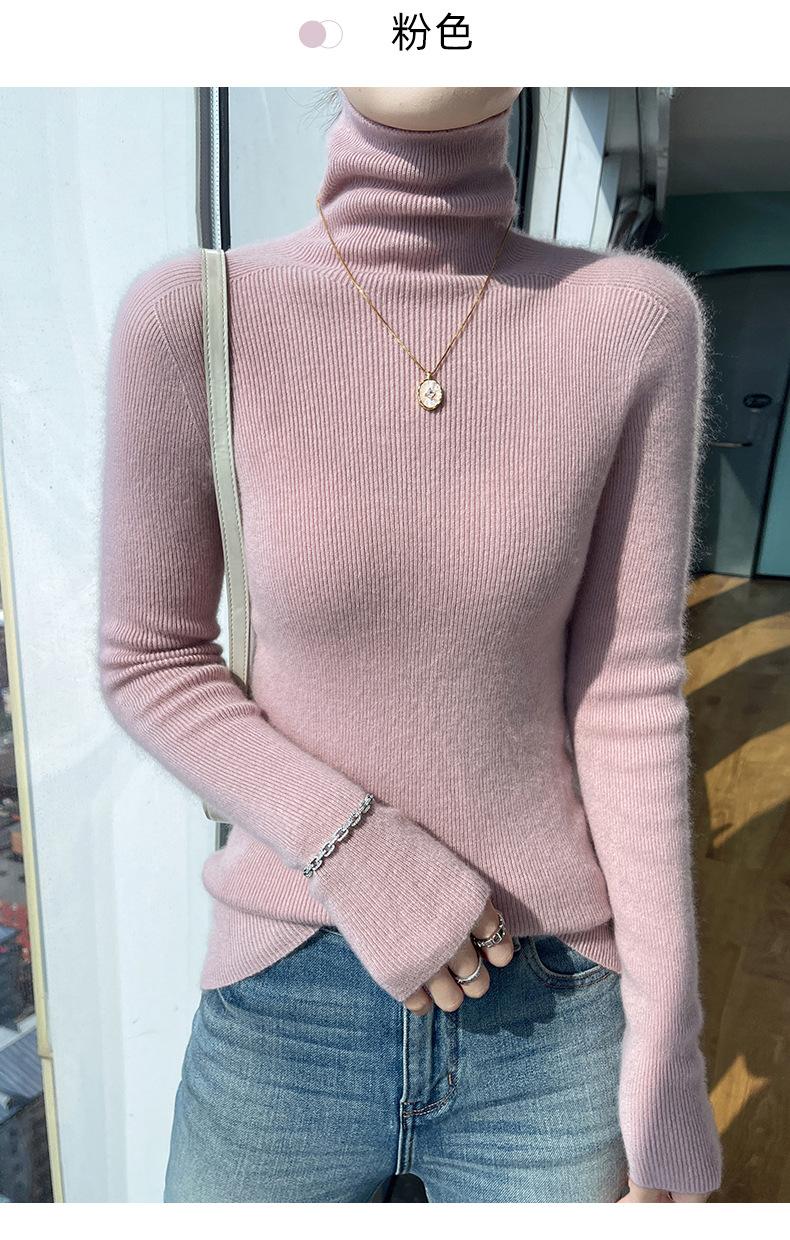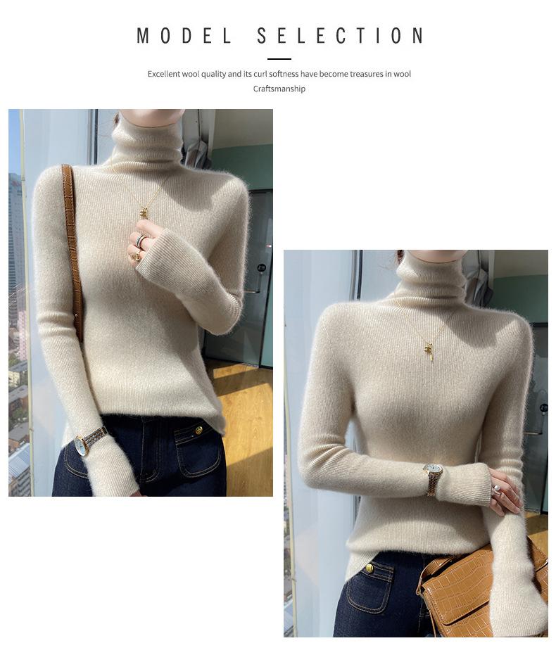 Nuevo Otoño e Invierno Sin Costuras de Una Línea Tejido Cuello Alto Camiseta Básica Cachemira para Mujer Manga Larga Silueta Adelgazante Suéter Suave y Ceroso para Mujer