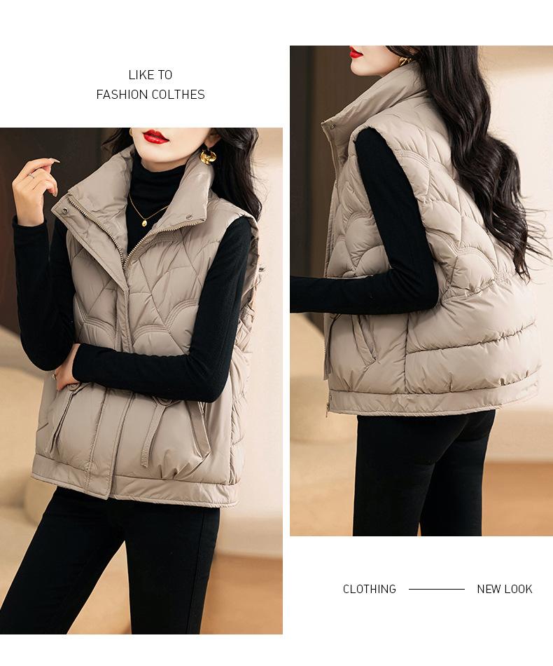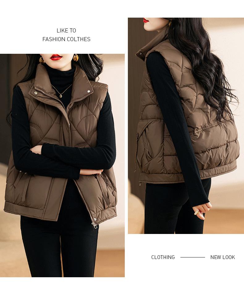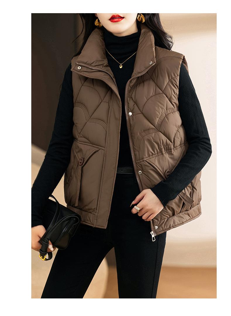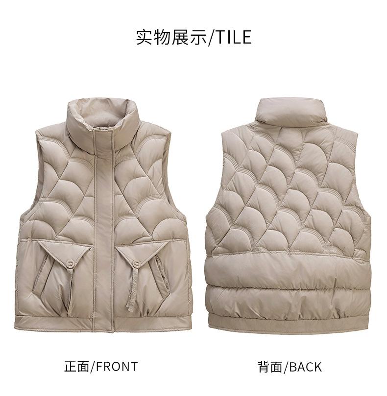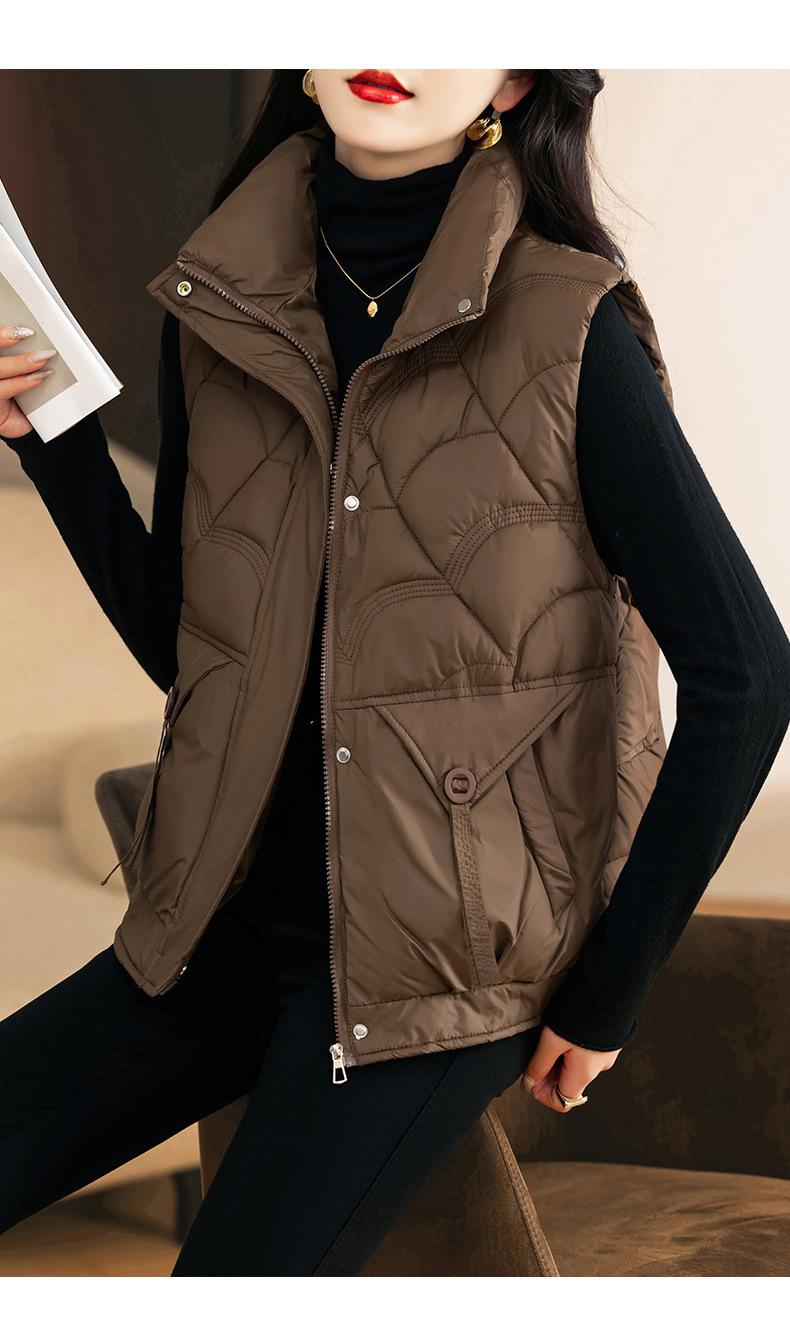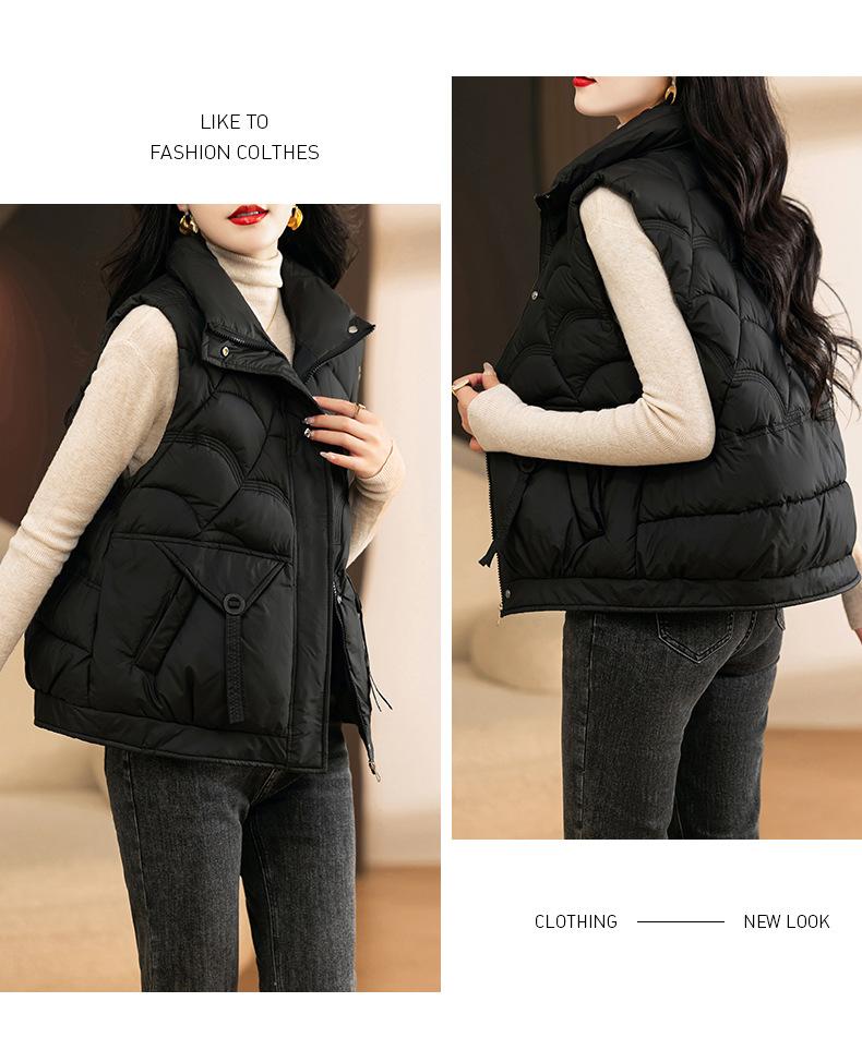Chaleco de algodón de plumón para mujer, otoño e invierno 2024, nuevo abrigo corto de moda, chaleco sin mangas con cuello grueso.