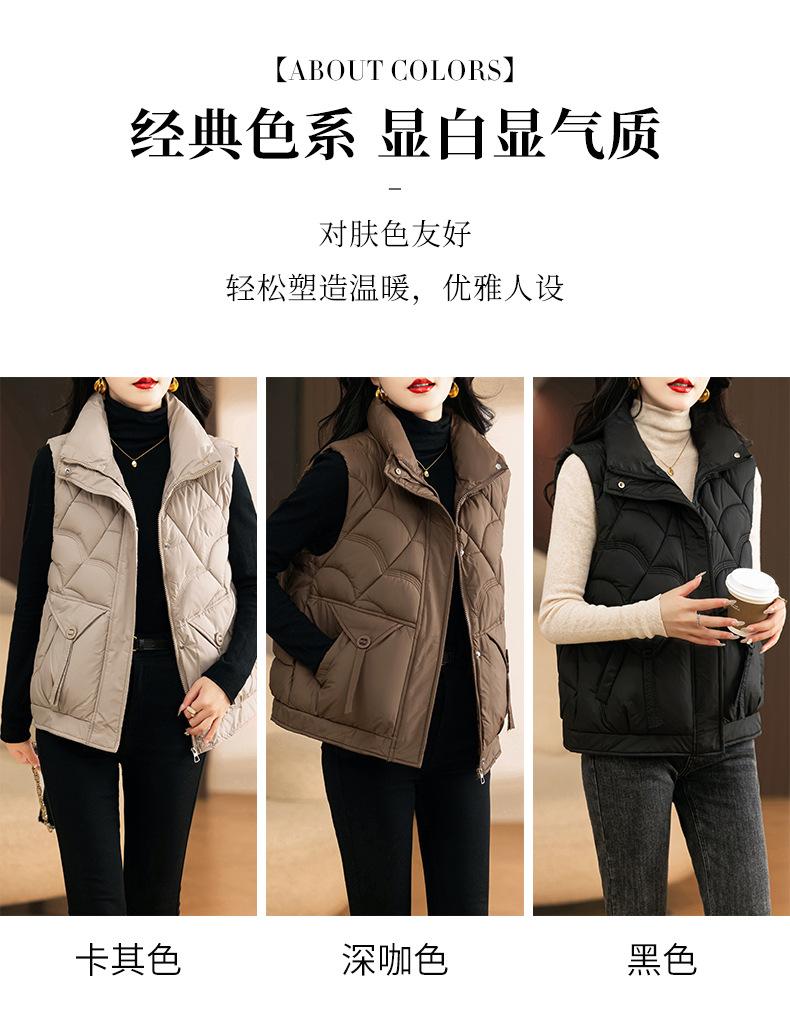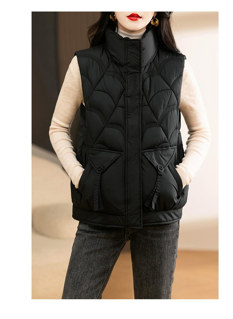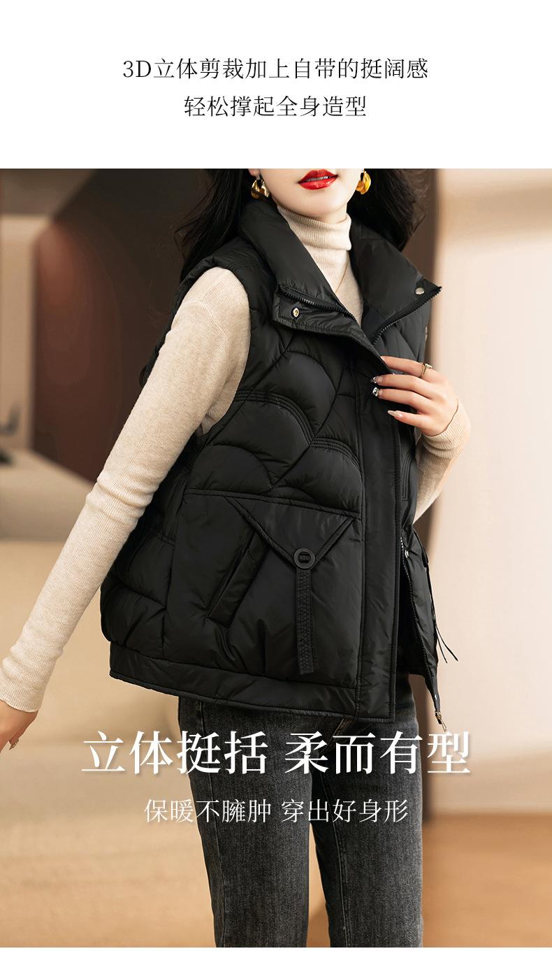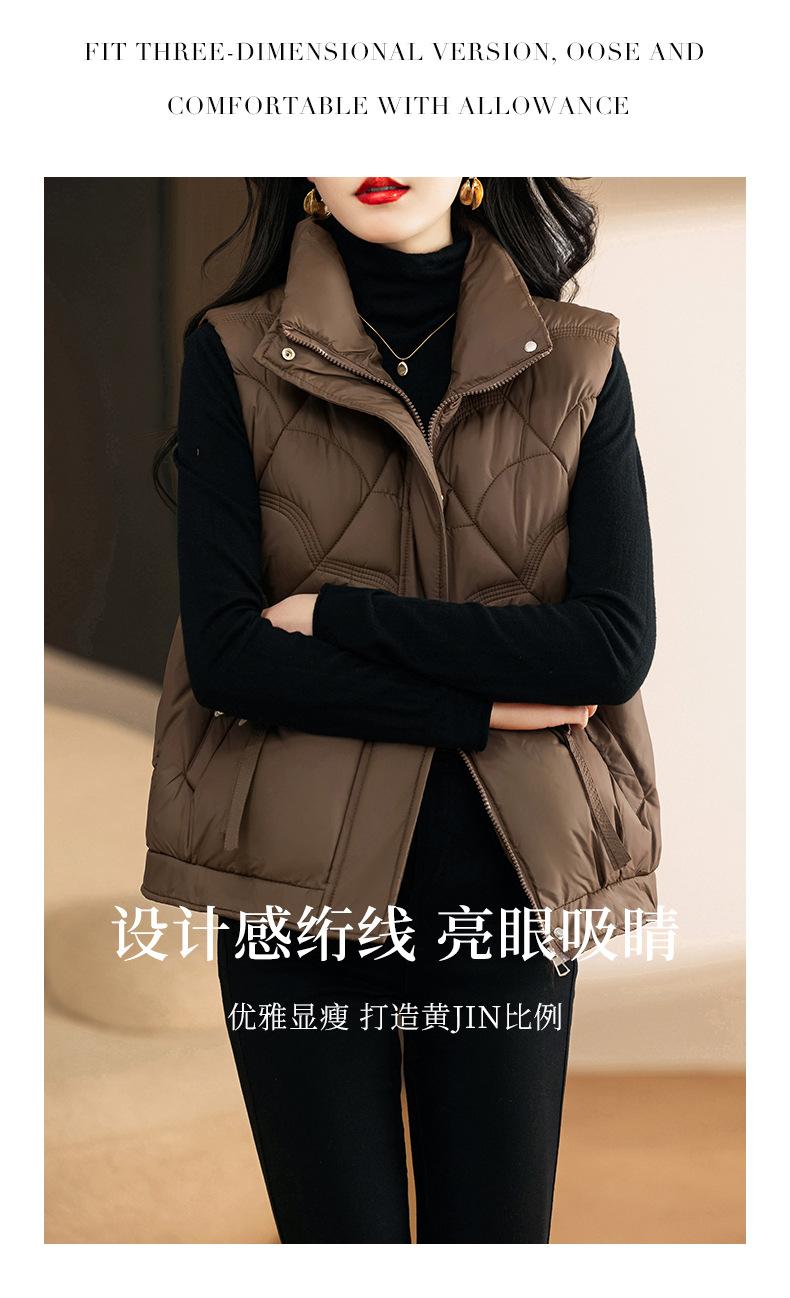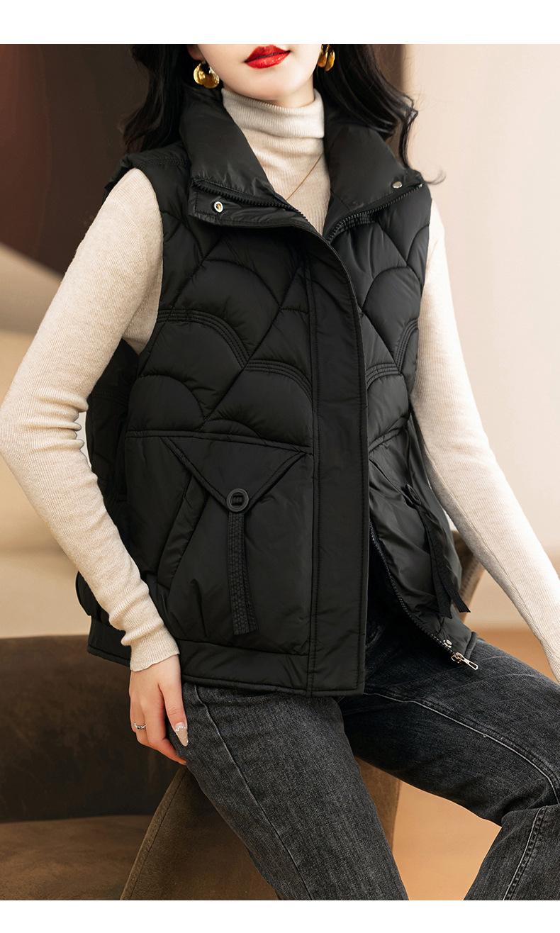 Chaleco de algodón de plumón para mujer, otoño e invierno 2024, nuevo abrigo corto de moda, chaleco sin mangas con cuello grueso.