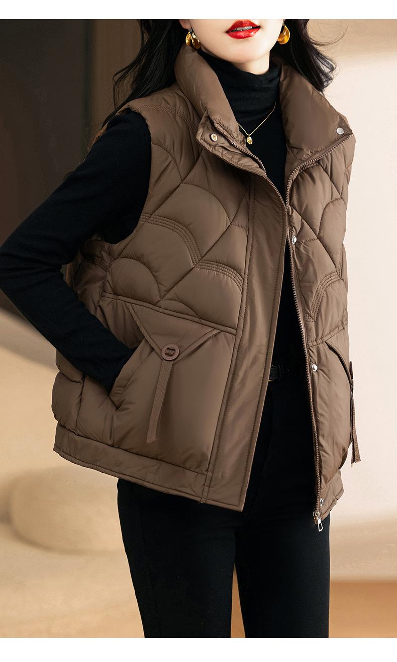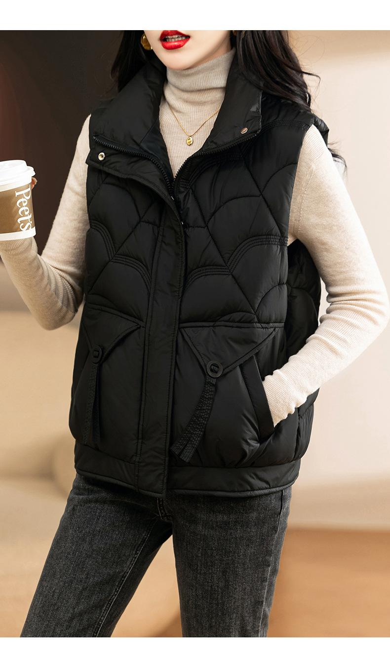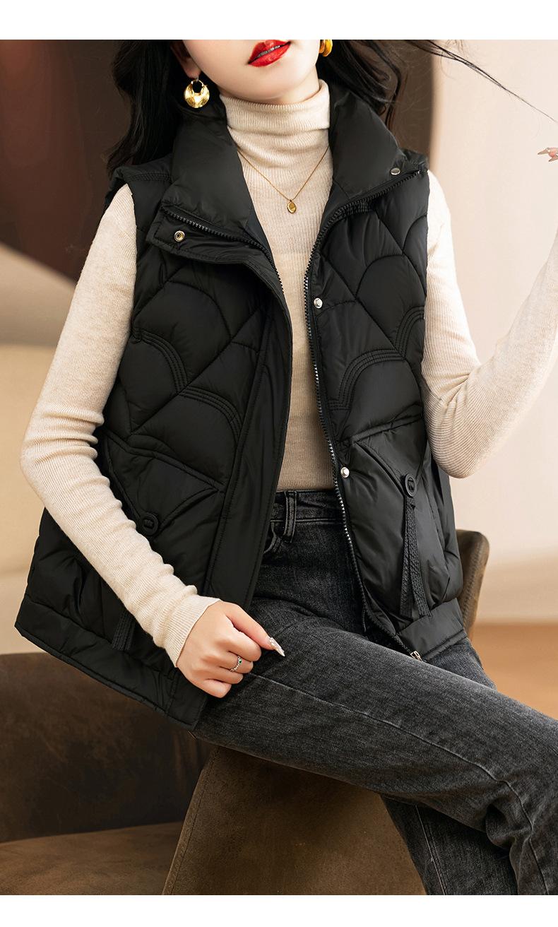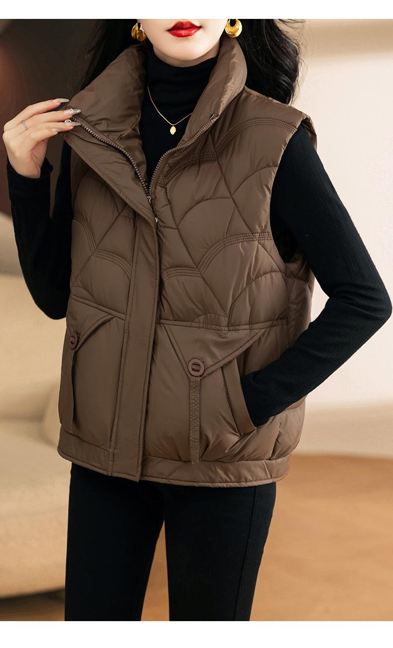 Chaleco de algodón de plumón para mujer, otoño e invierno 2024, nuevo abrigo corto de moda, chaleco sin mangas con cuello grueso.