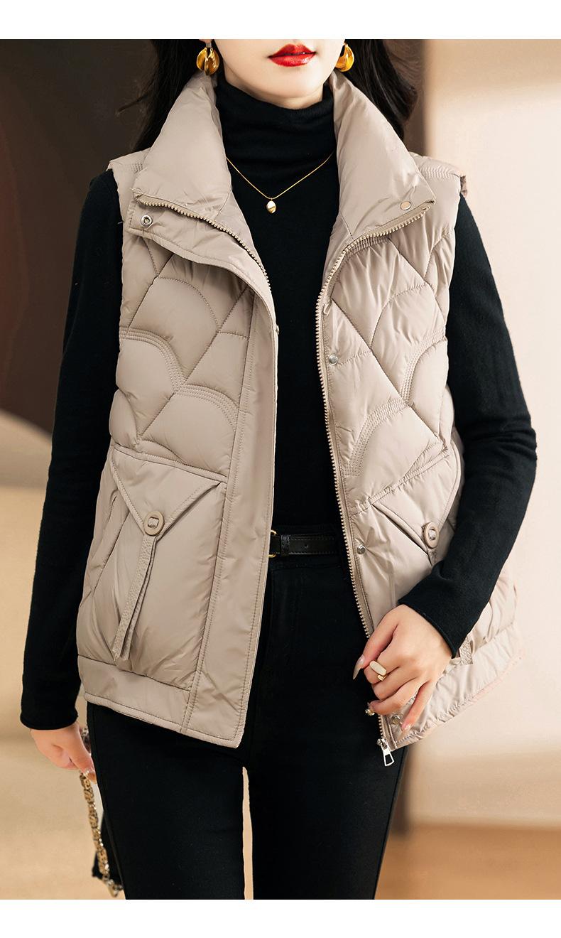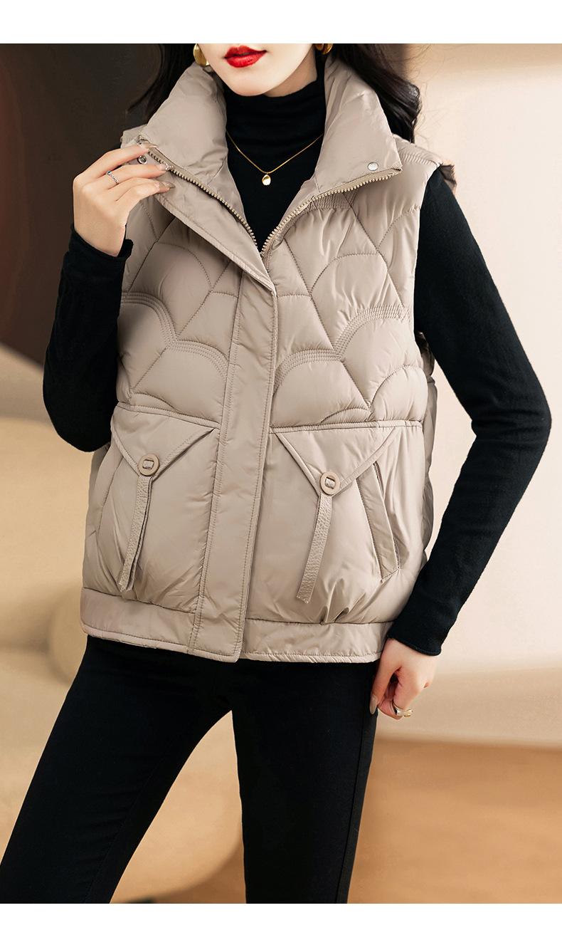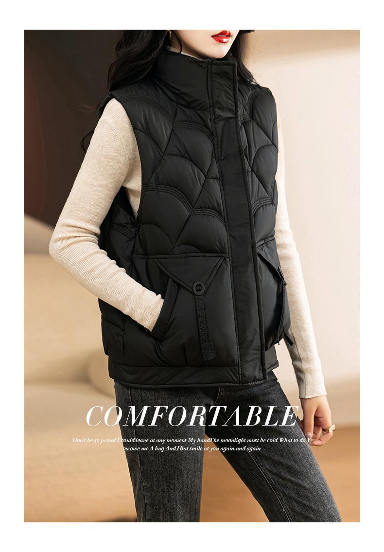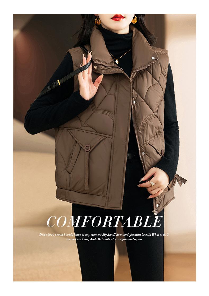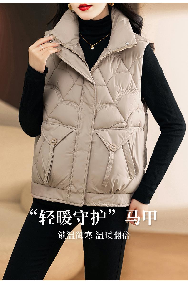 Chaleco de algodón de plumón para mujer, otoño e invierno 2024, nuevo abrigo corto de moda, chaleco sin mangas con cuello grueso.