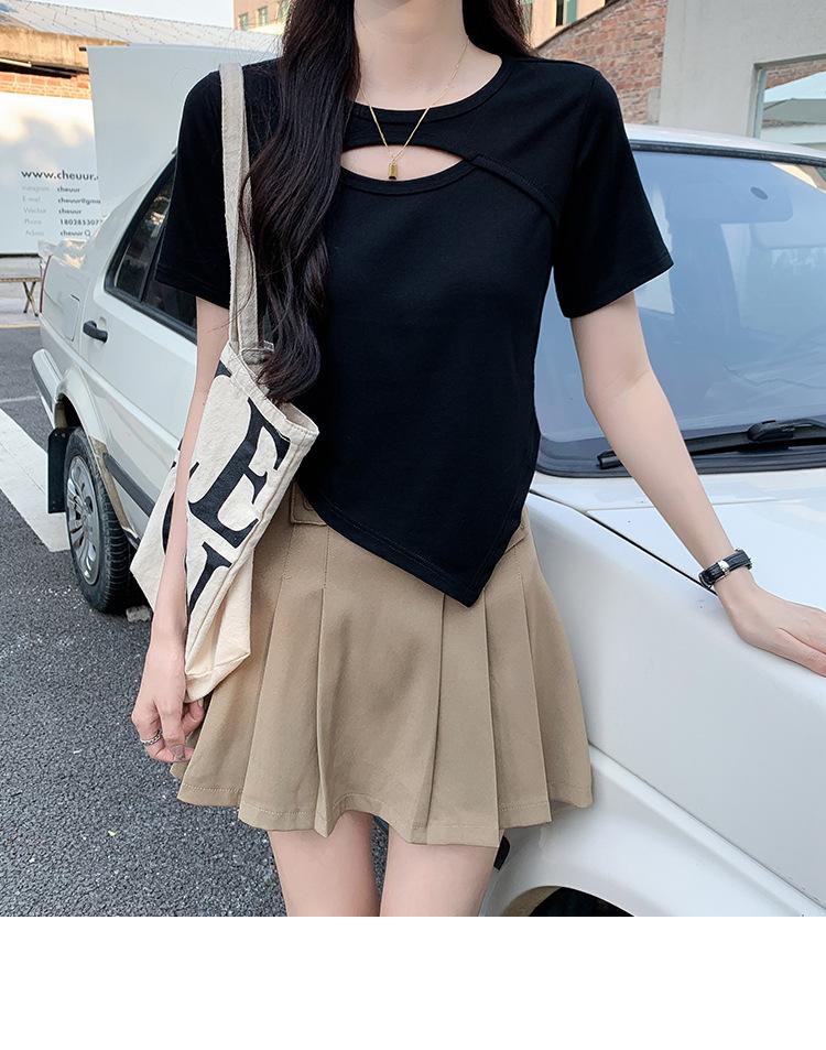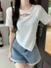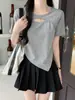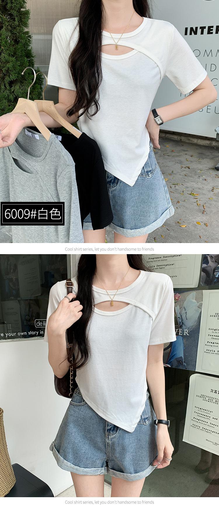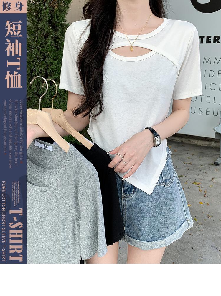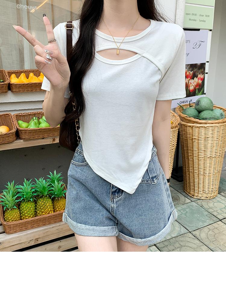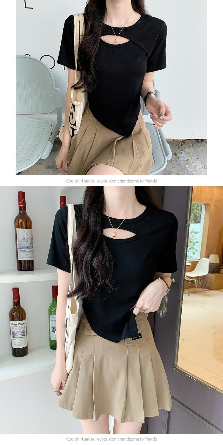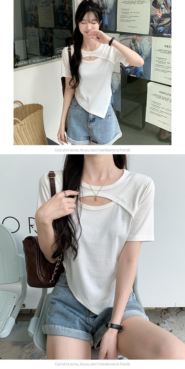 Camiseta de manga corta hueca para mujer, nuevo diseño de verano 2024, camiseta de hombros entallados Sense Niche, top corto estilo occidental