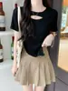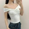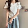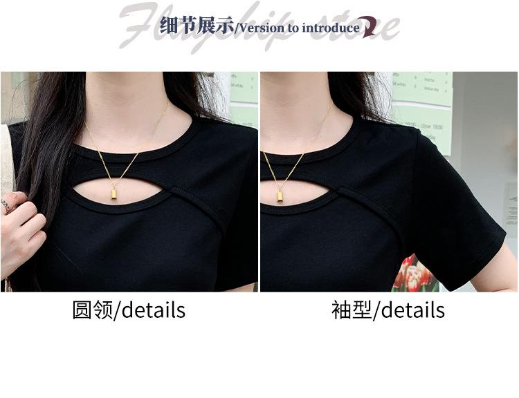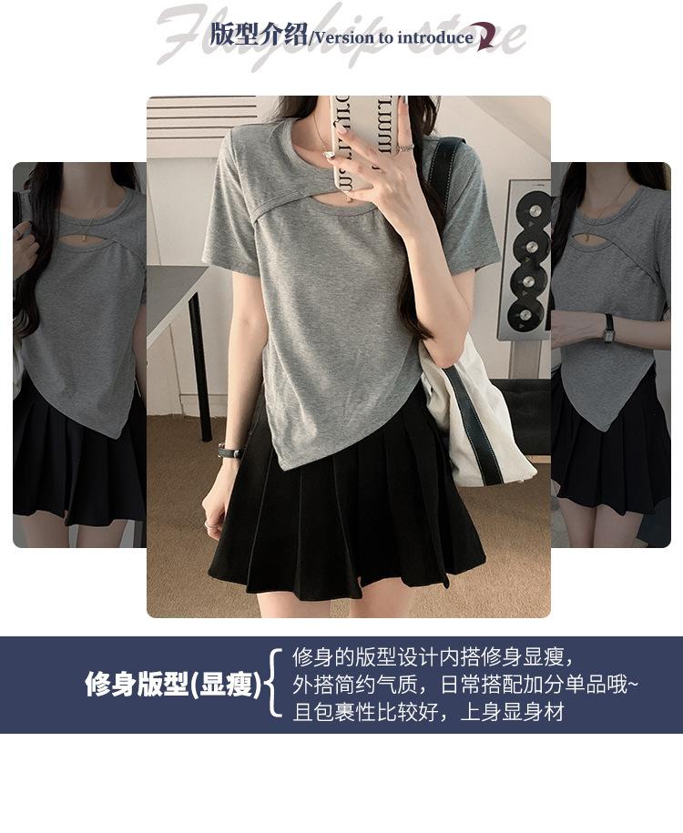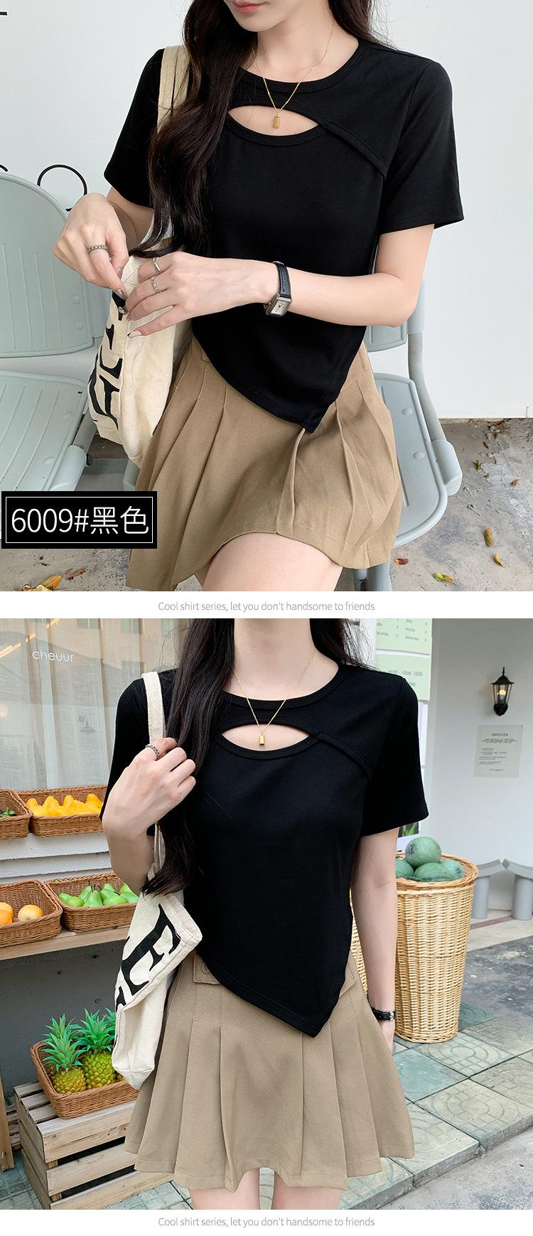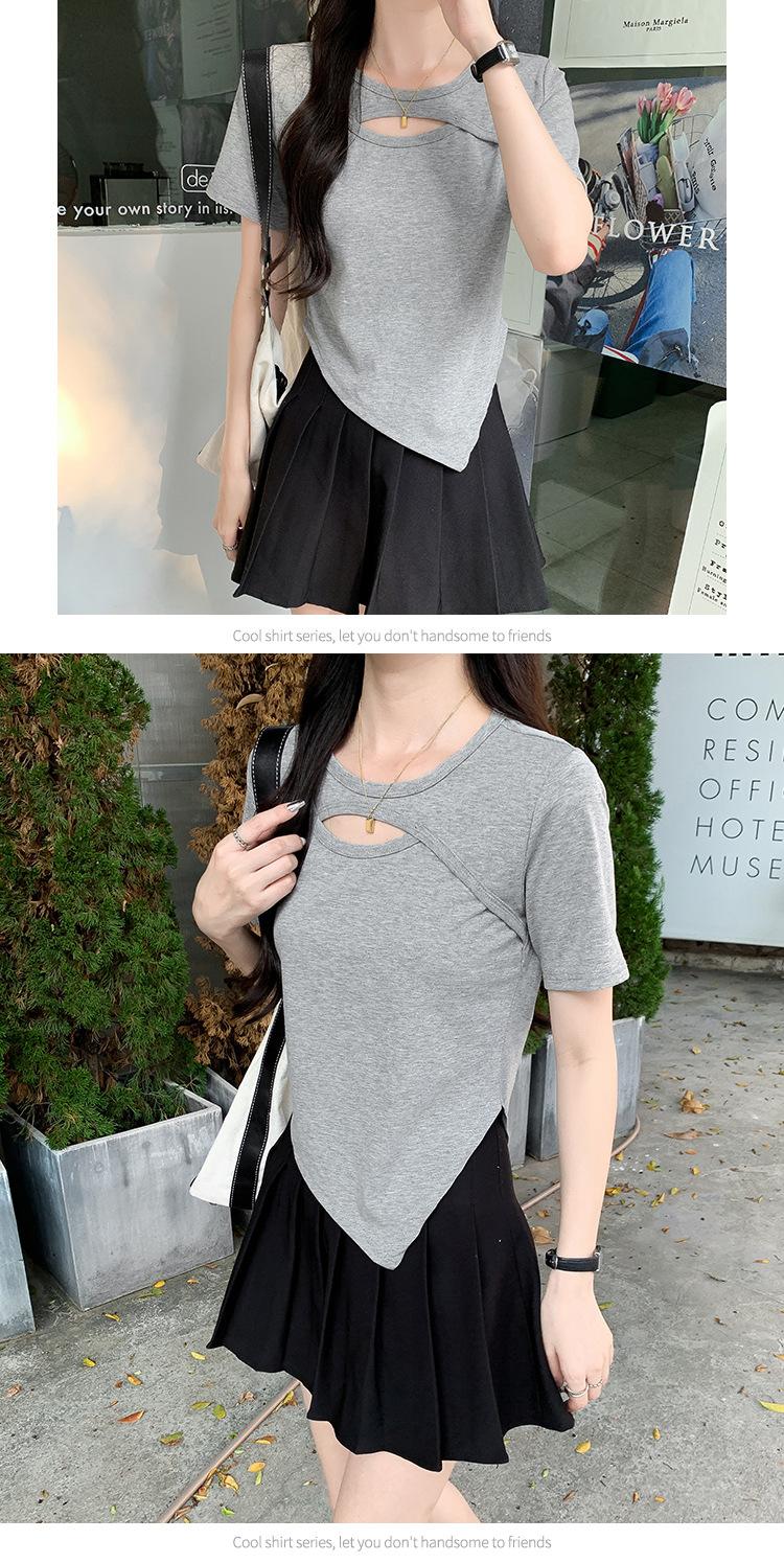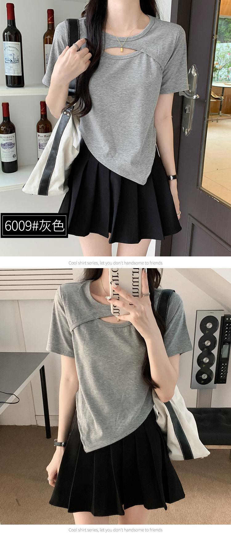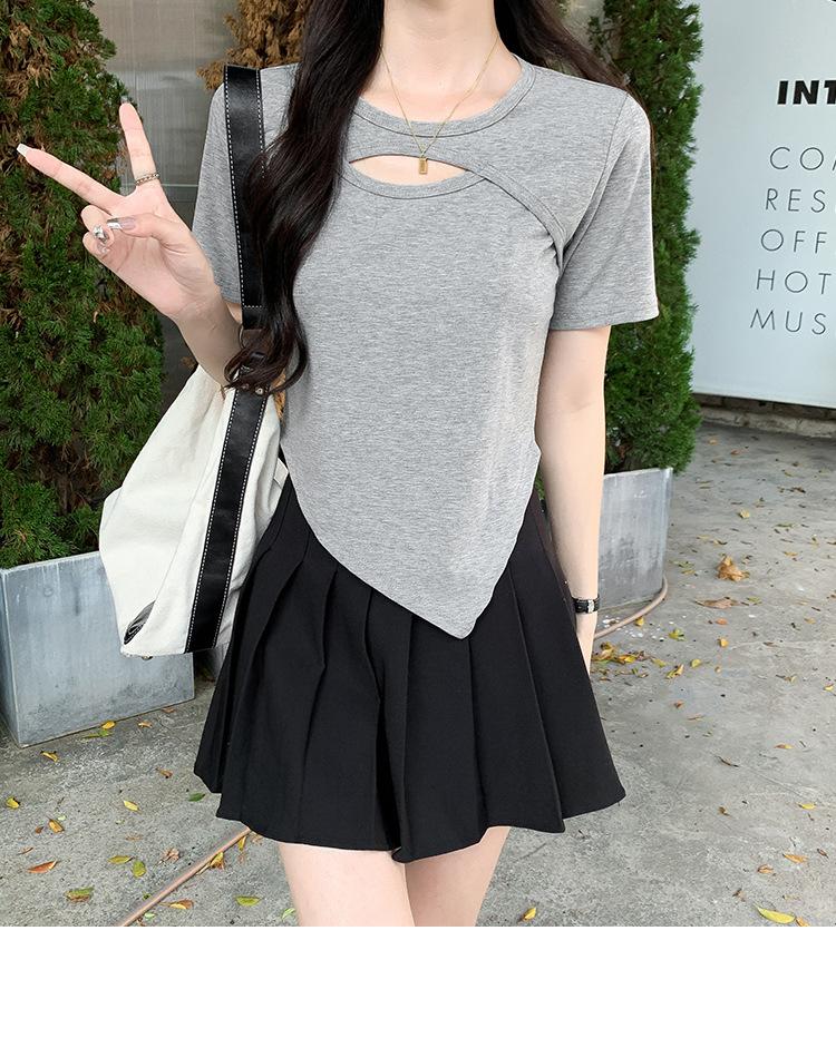 Camiseta de manga corta hueca para mujer, nuevo diseño de verano 2024, camiseta de hombros entallados Sense Niche, top corto estilo occidental
