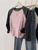 Camiseta irregular de algodón puro de manga raglán y manga larga para mujer, capa interior para primavera y otoño, top corto ajustado que estiliza