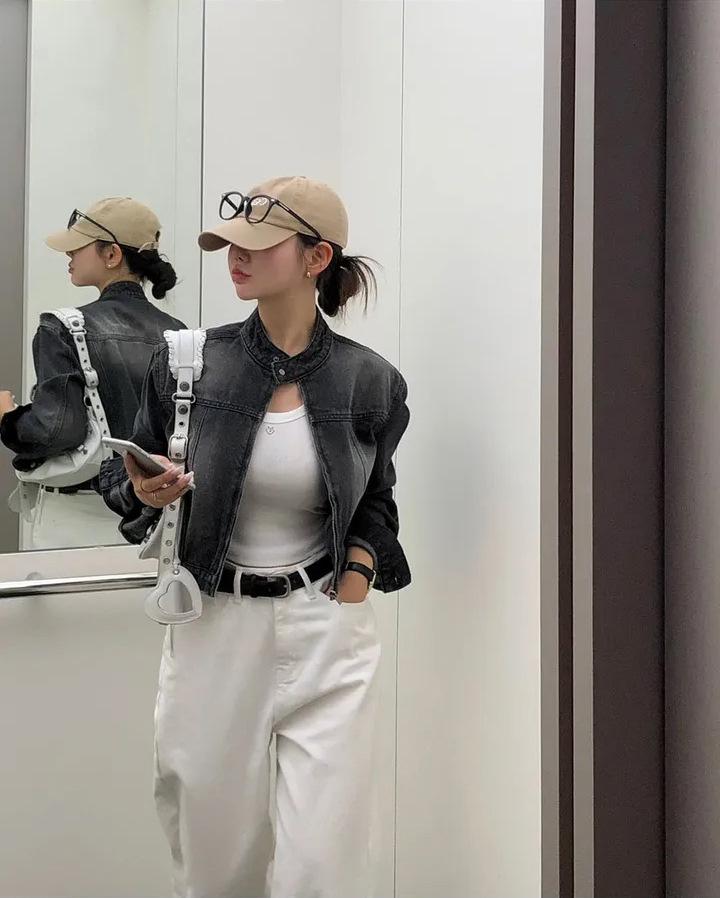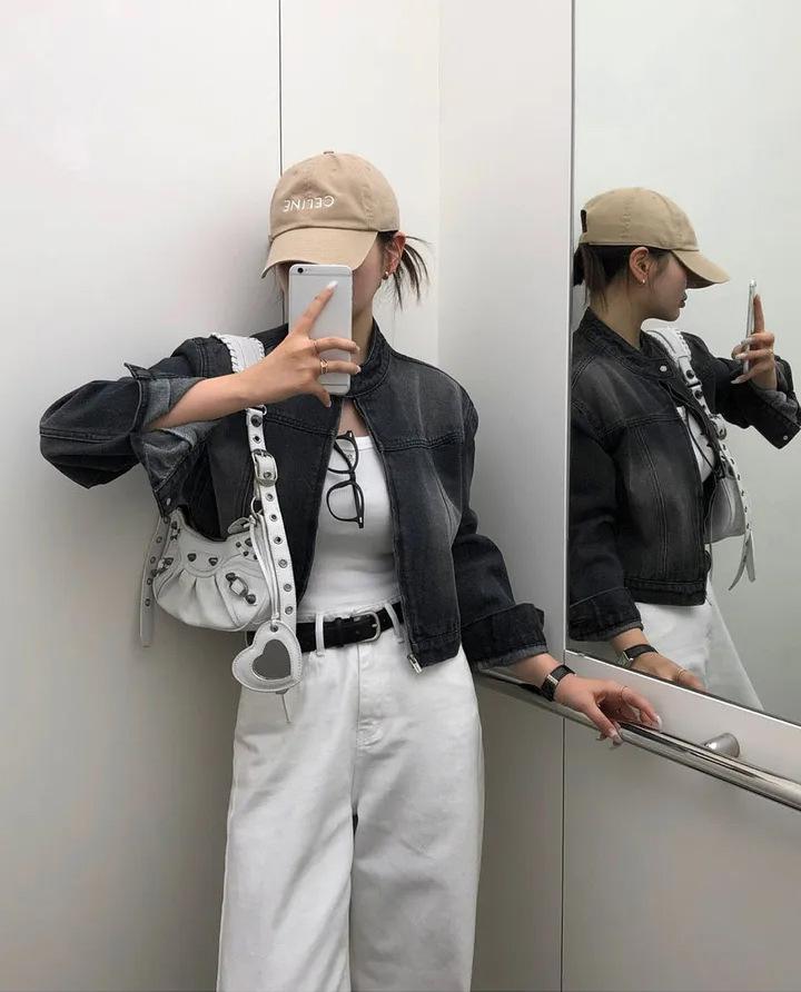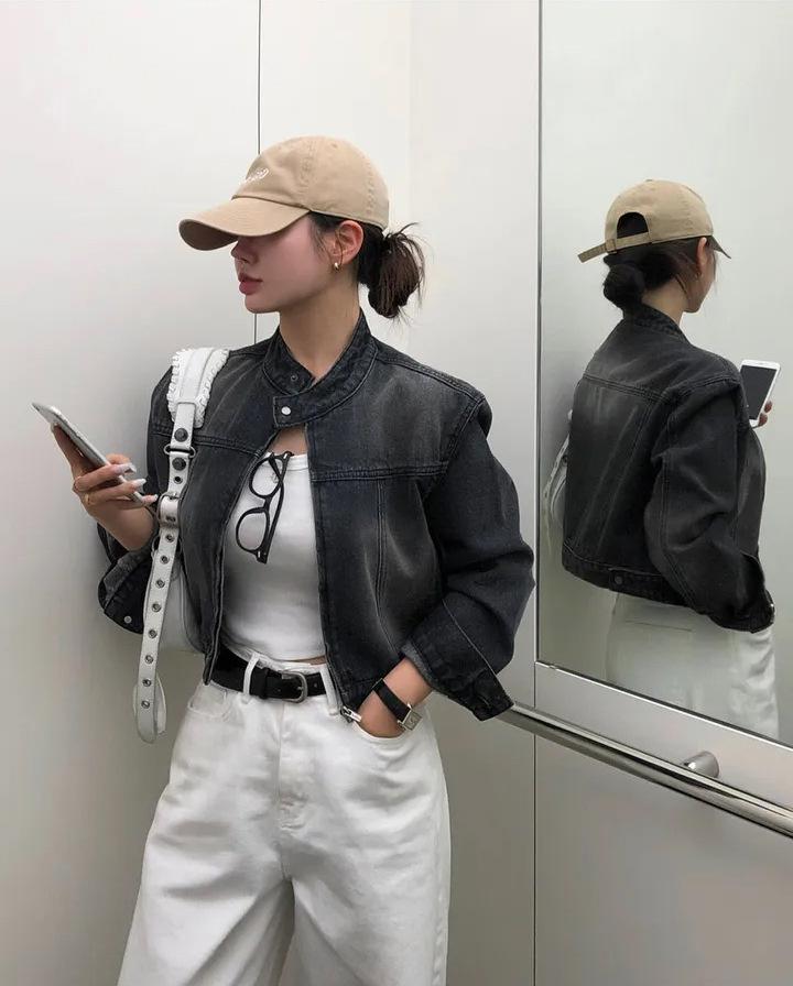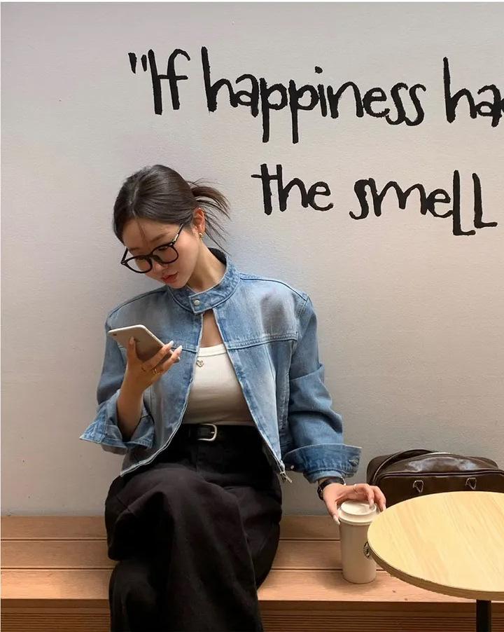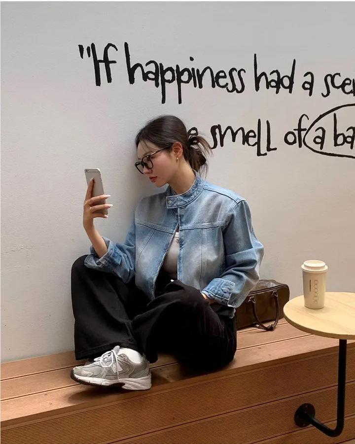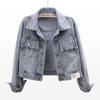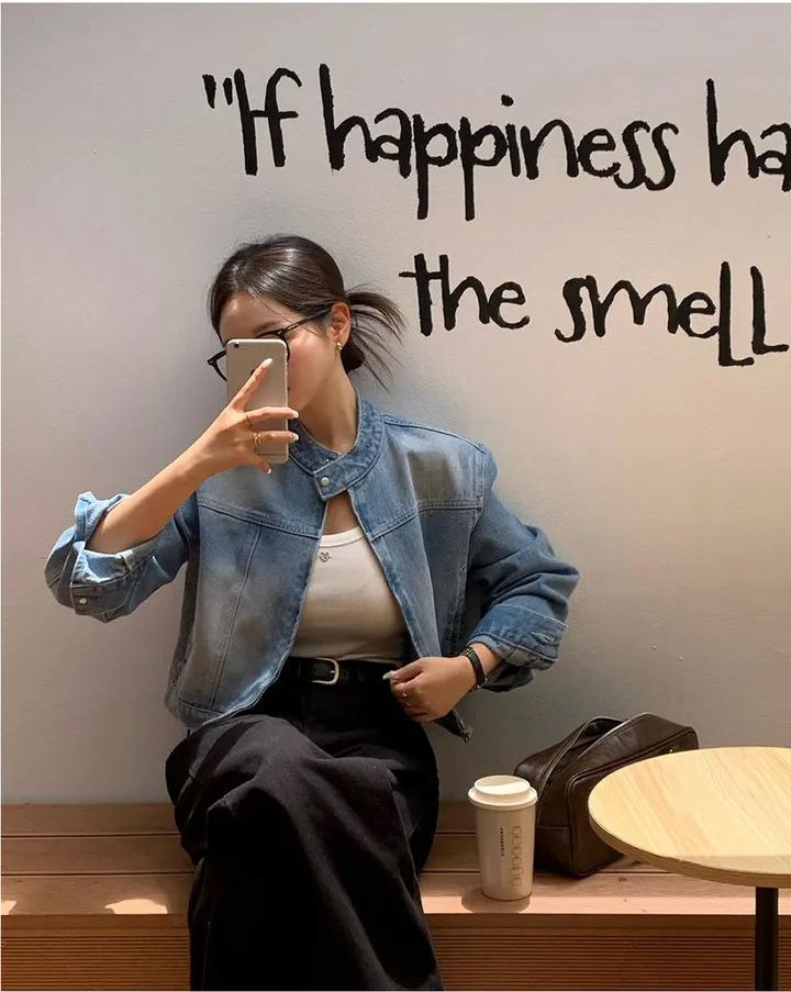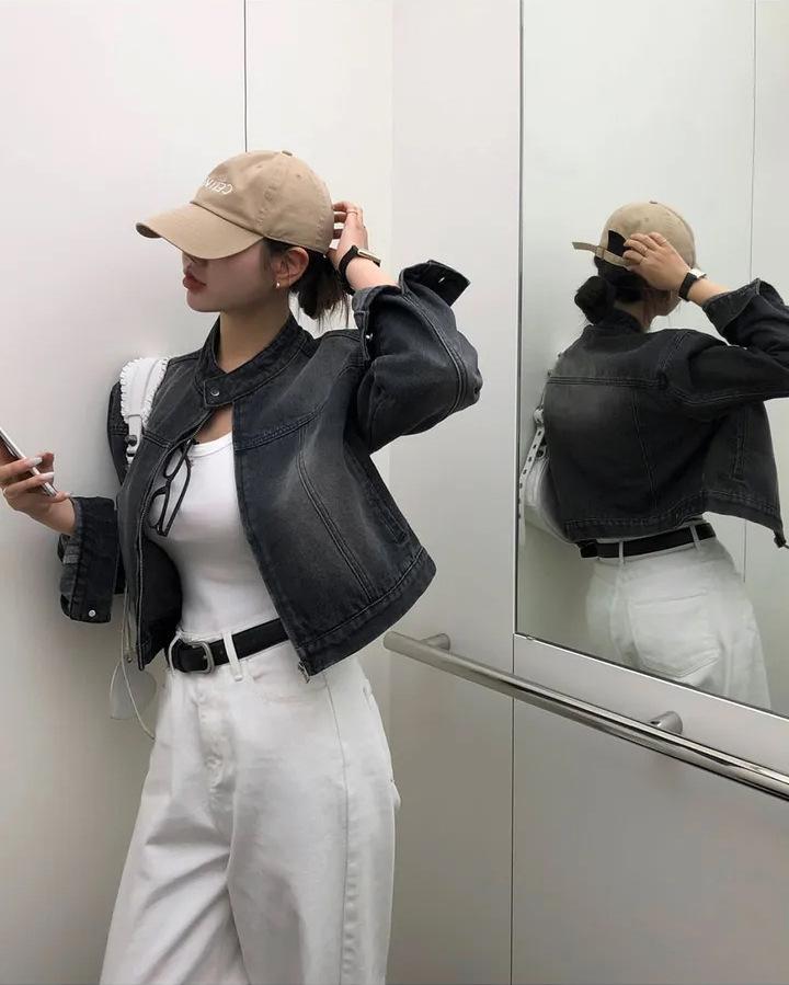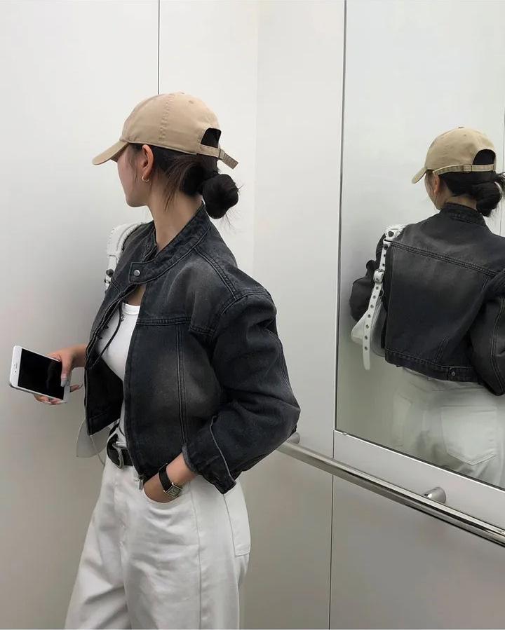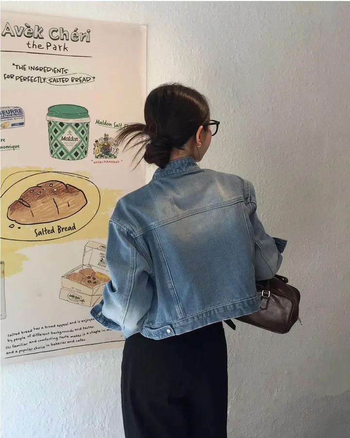 Ins Coreano Otoño Nuevo Estilo Coreano Moda Elegante Cuello Alto Chaqueta Corta de Mezclilla Lavada para Mujer Chaqueta Versátil