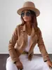 Tendencia de Moda Otoño 2024 Chaqueta Corta Joker de Cuero Gamuza Transfronteriza Ropa de Mujer Amazon A35525