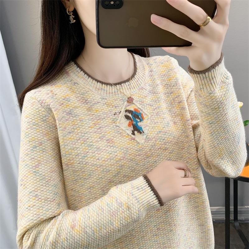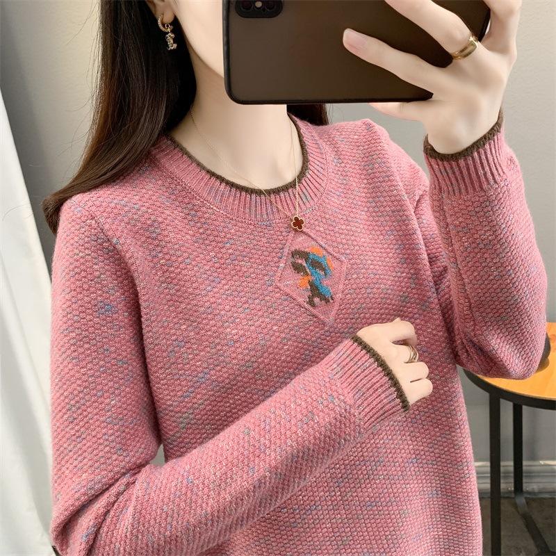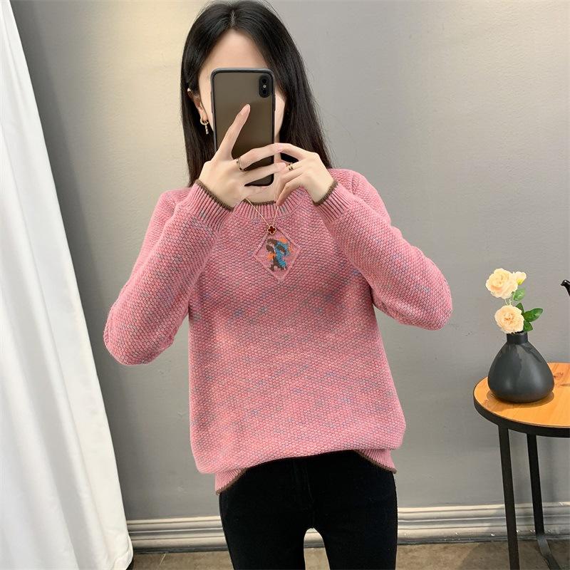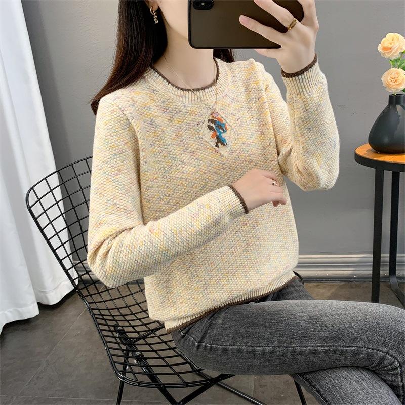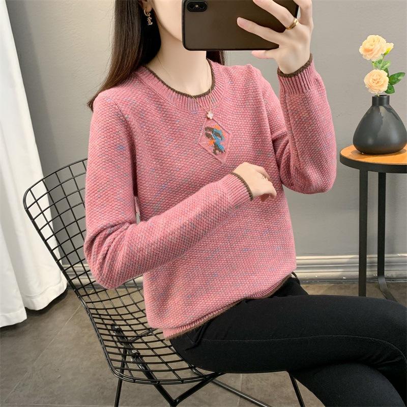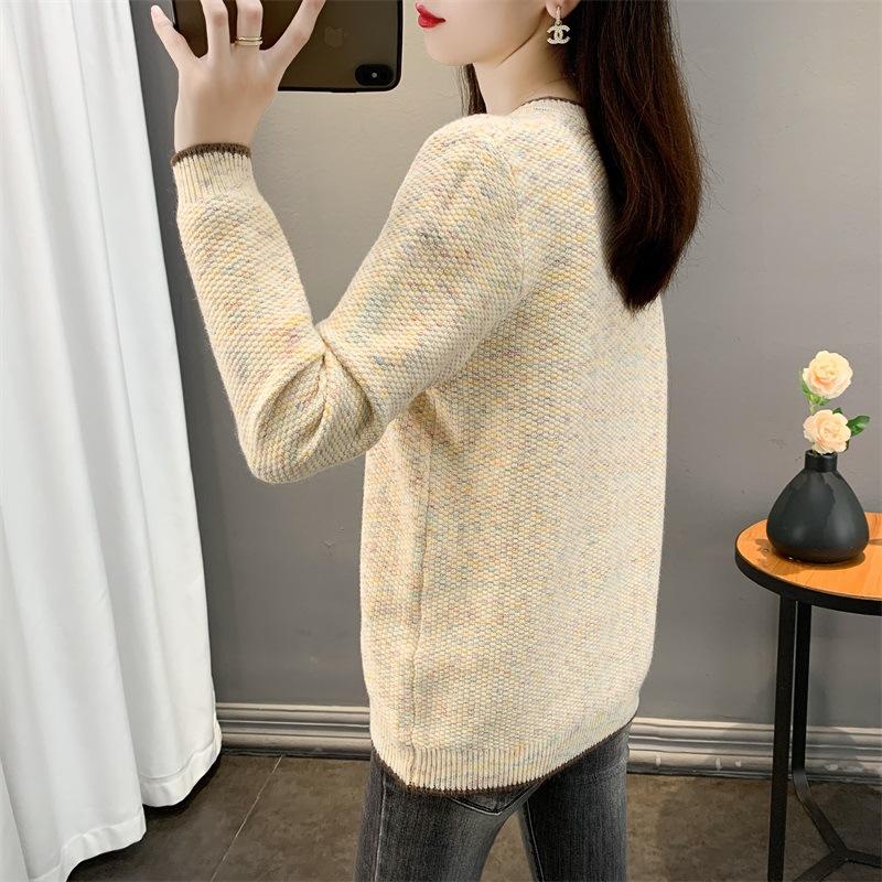 Suéter de punto retro holgazán de manga larga para mujer, otoño e invierno, nuevo jersey, suéter interior, camisa base, top holgado de cuello redondo