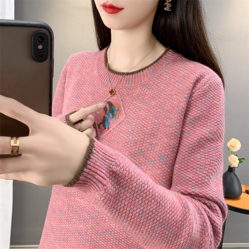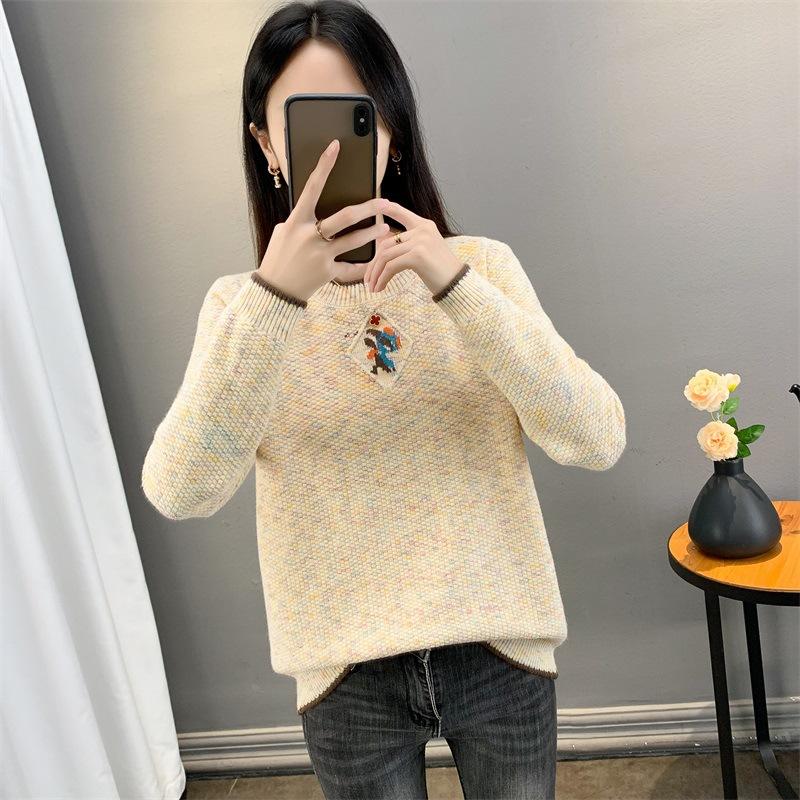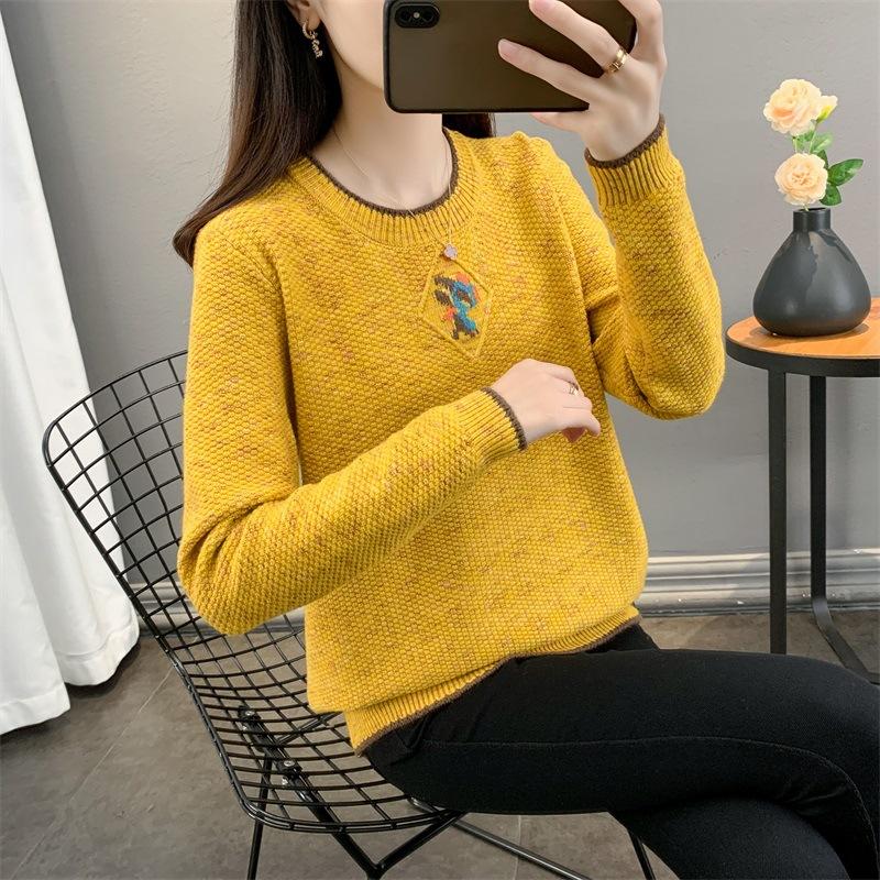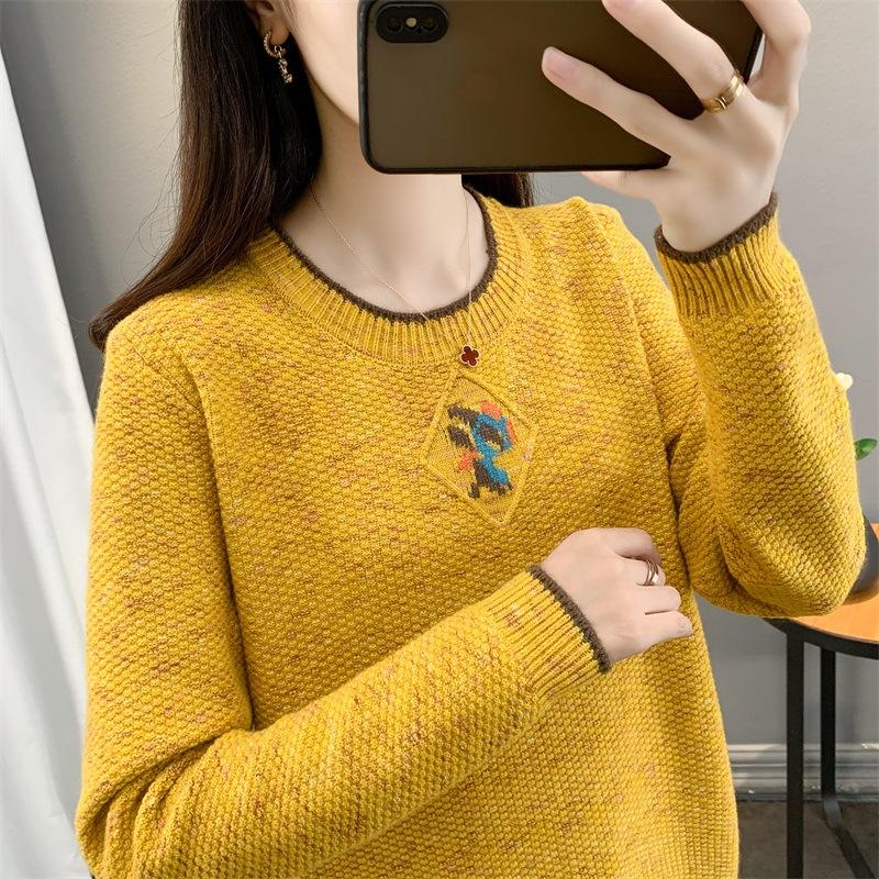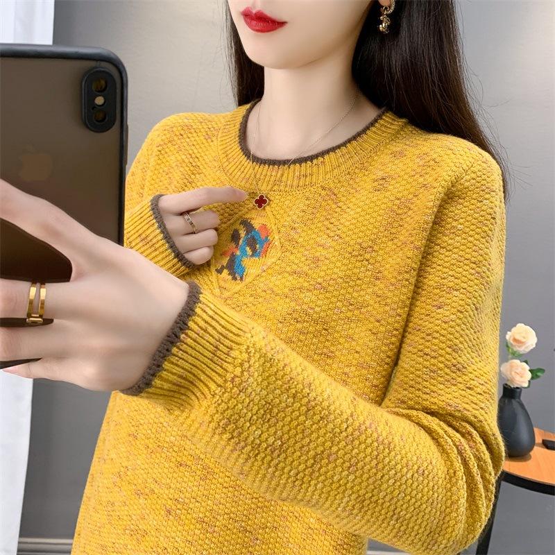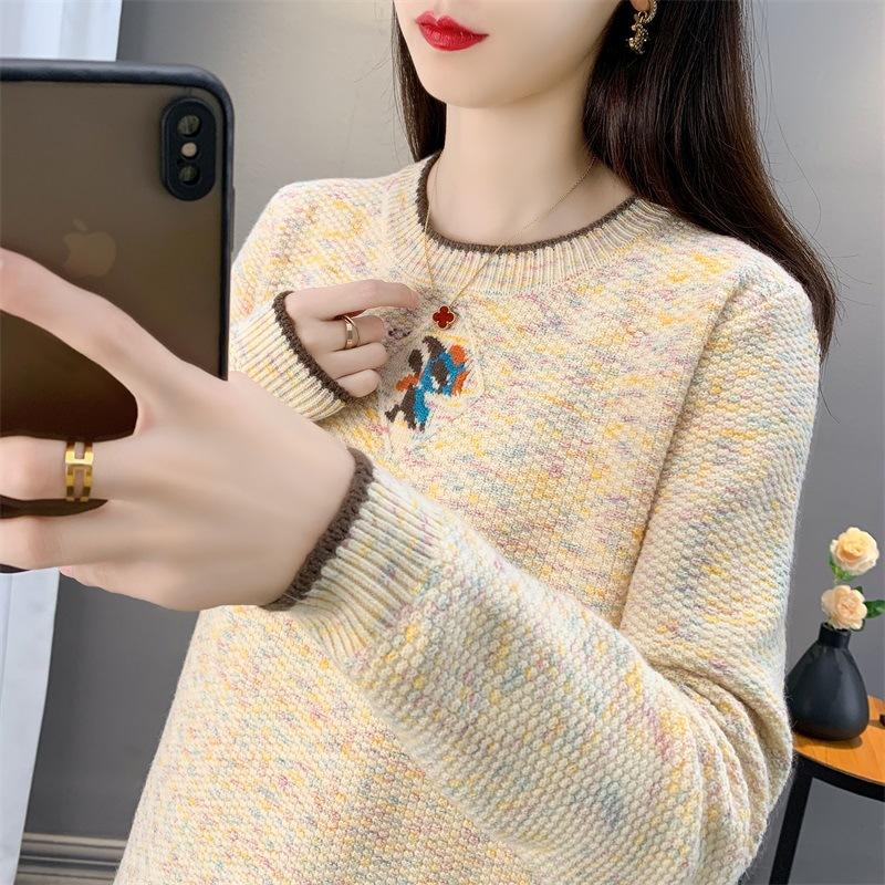 Suéter de punto retro holgazán de manga larga para mujer, otoño e invierno, nuevo jersey, suéter interior, camisa base, top holgado de cuello redondo