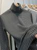Camiseta de Manga Larga Cálida de Otoño e Invierno con Cuello Apilado Estiloso y Único de Terciopelo Alemán a Rayas de Doble Cara, Top Moderno y Versátil