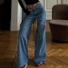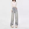 Pantalones vaqueros retro americanos azul claro para mujer primavera y verano 2024 nuevos pantalones de cintura alta adelgazantes de pierna recta y pierna ancha Ins