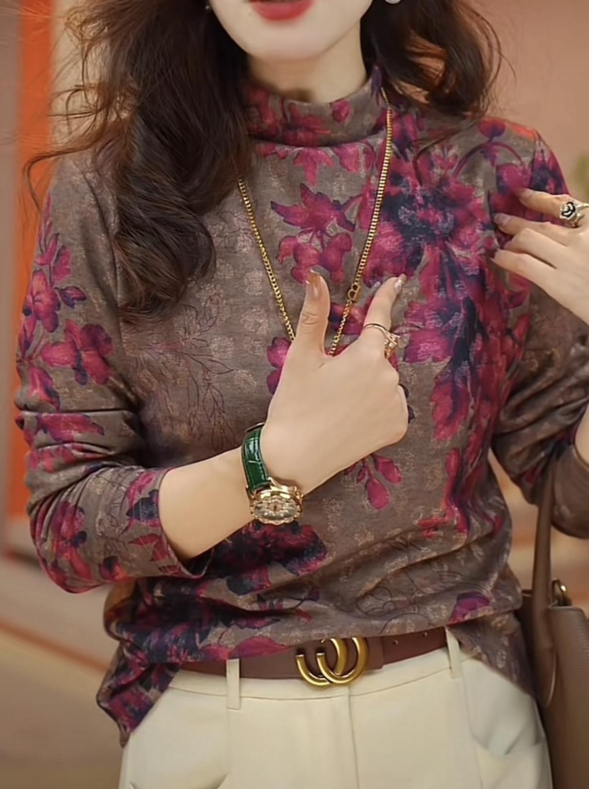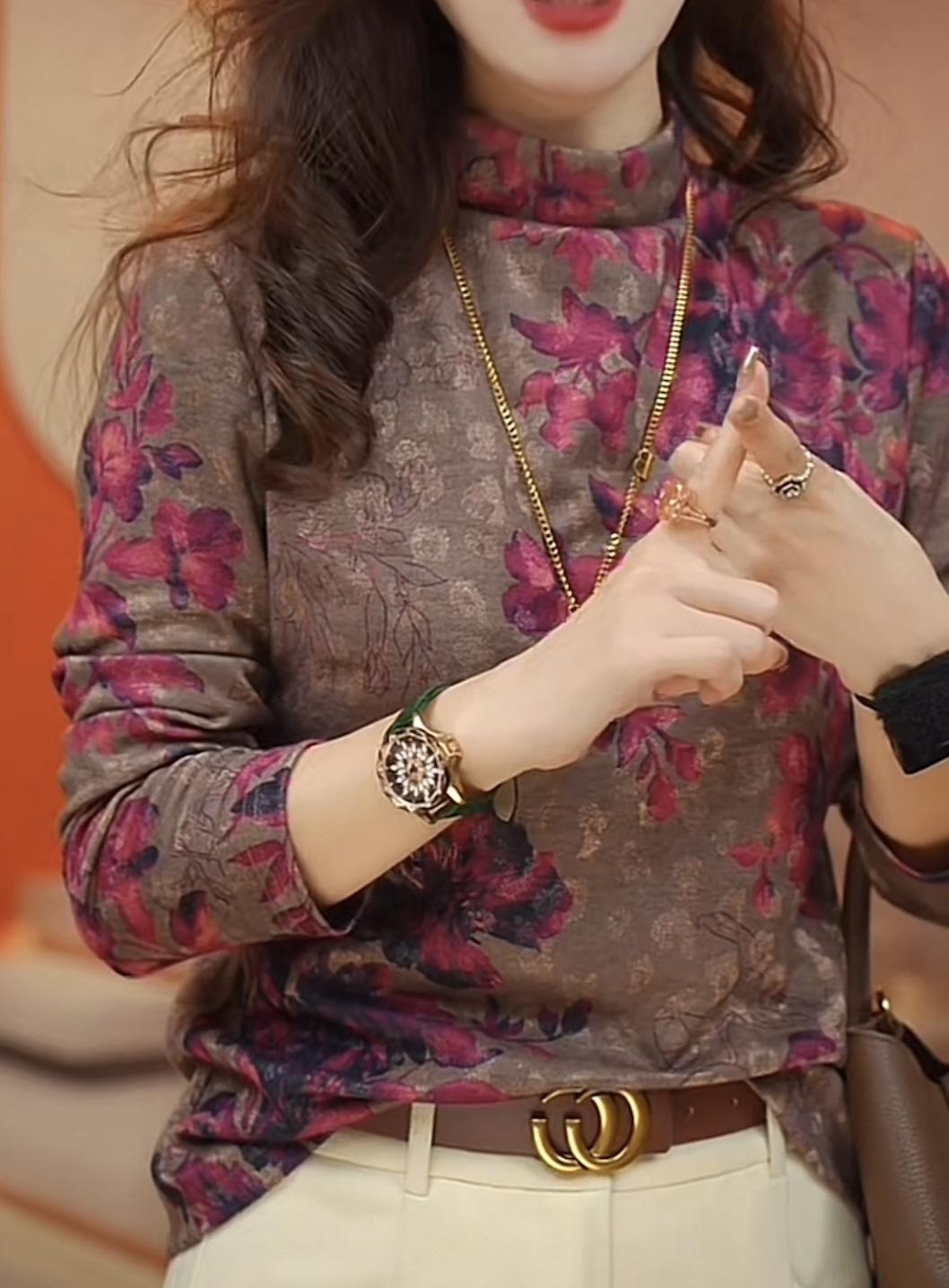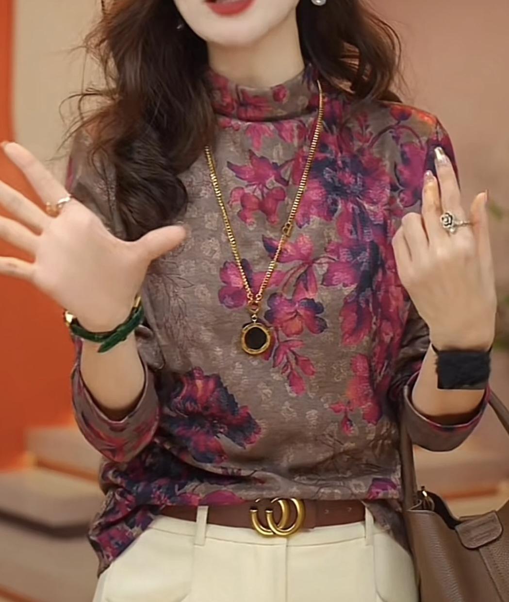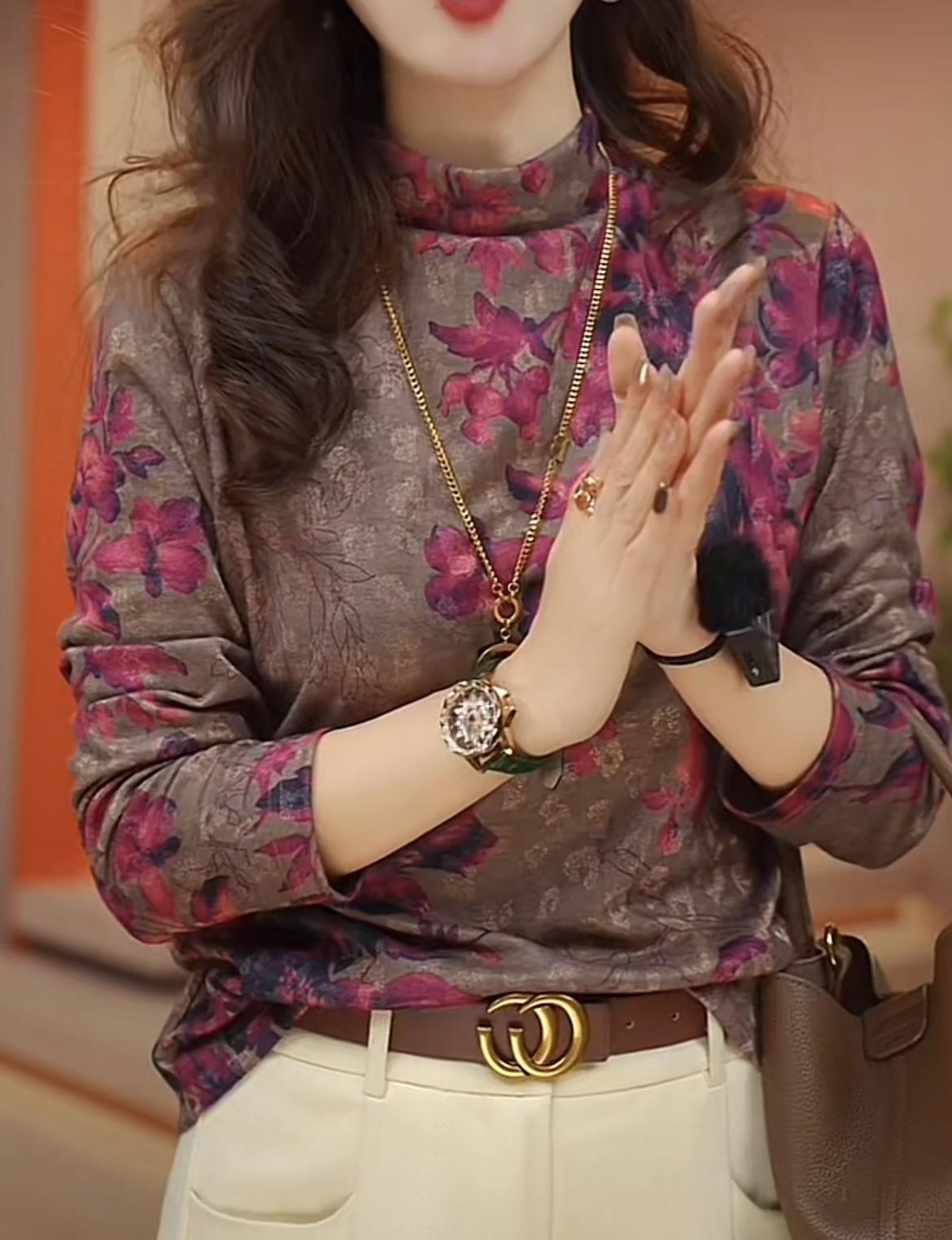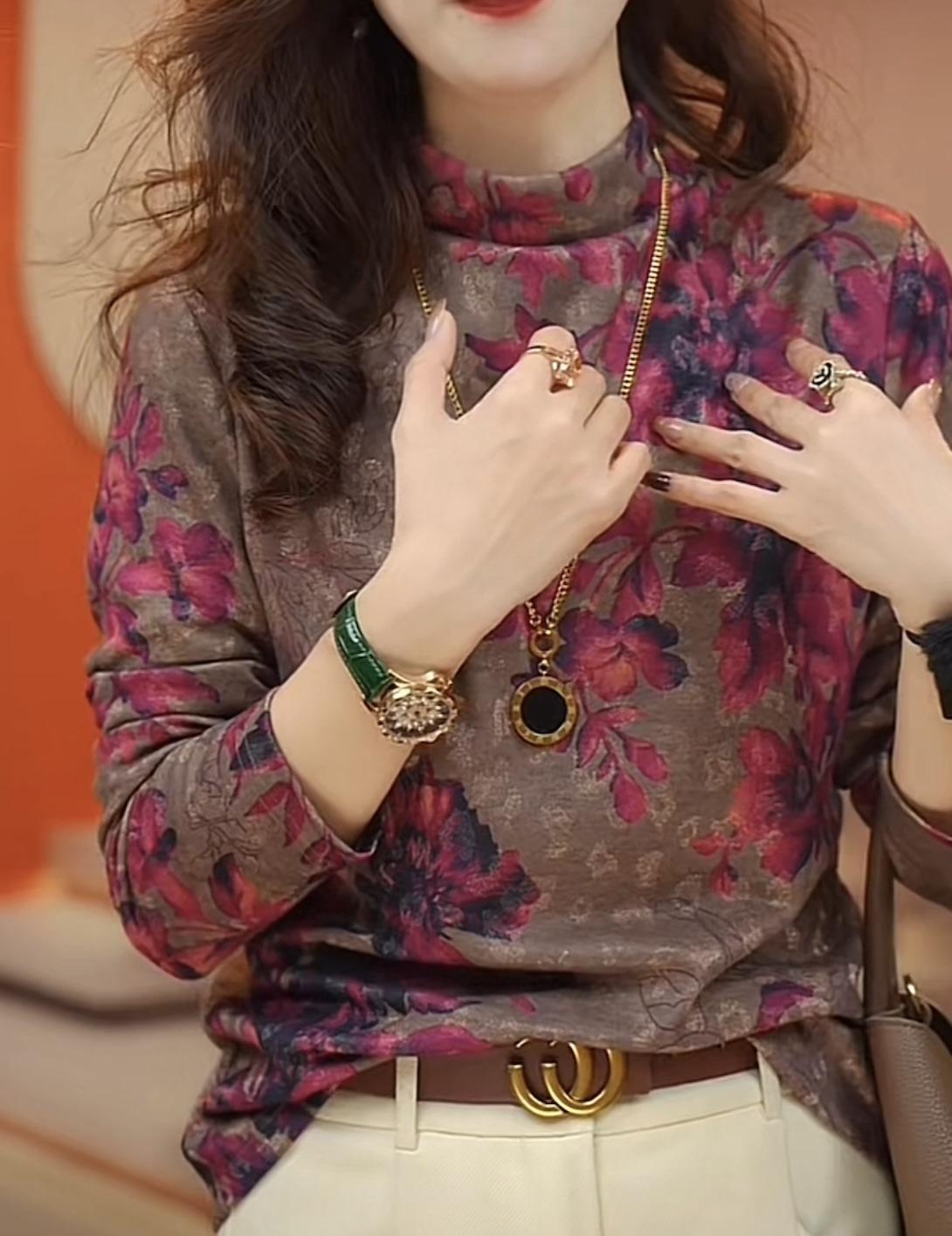 Camiseta de manga larga holgada informal de otoño 2024 con forro polar y base gruesa que adelgaza la carne y combina con todo.