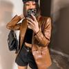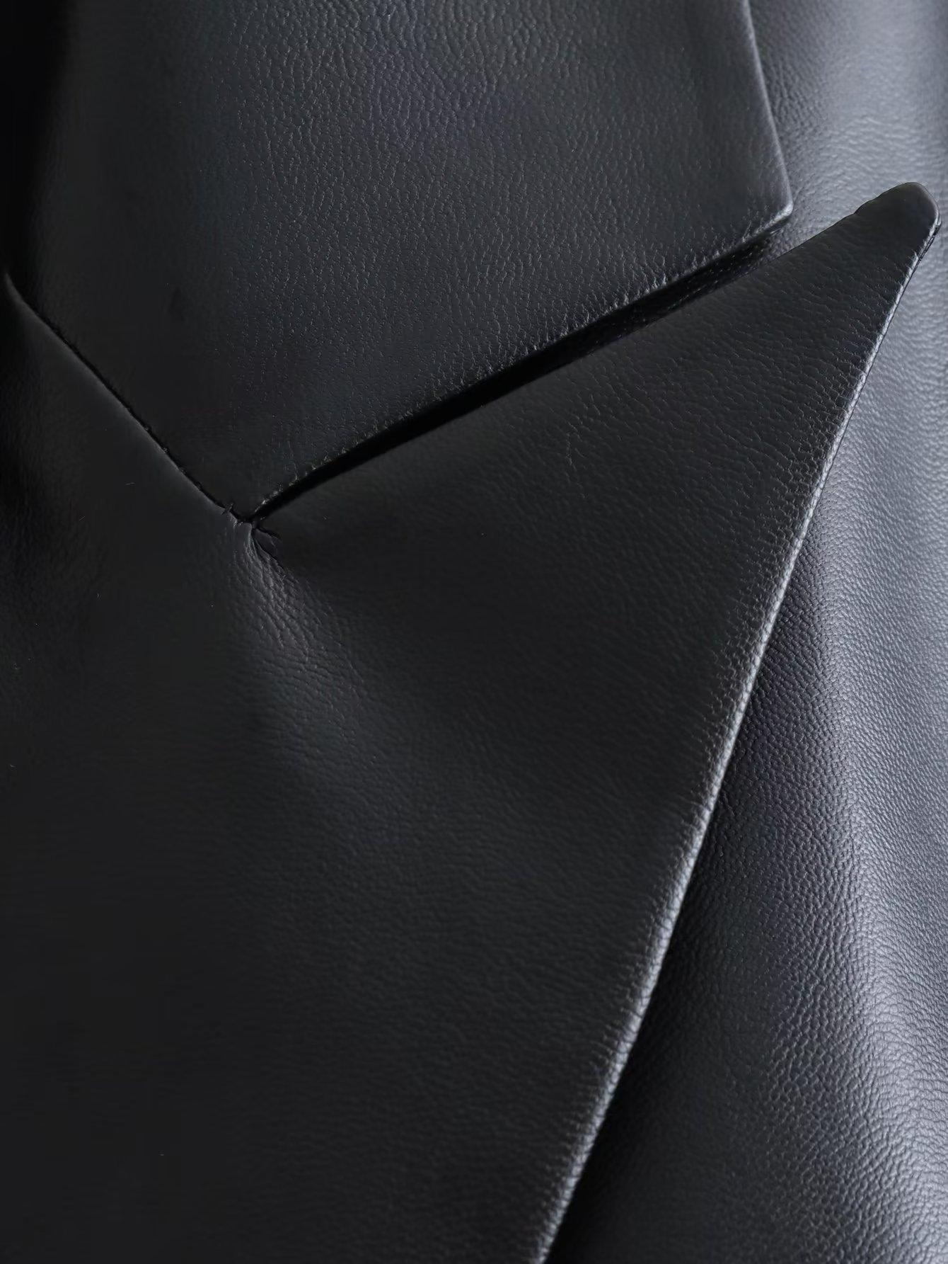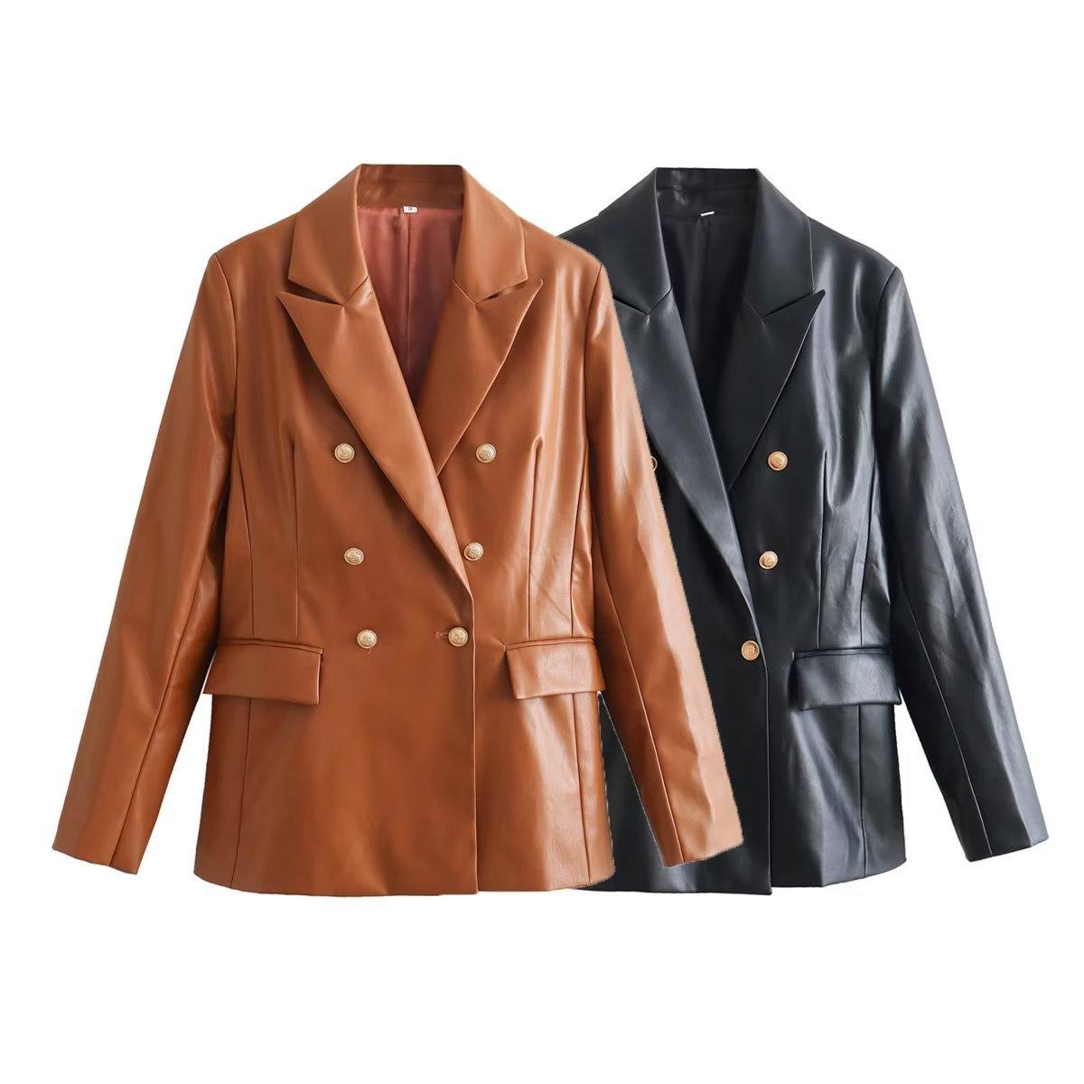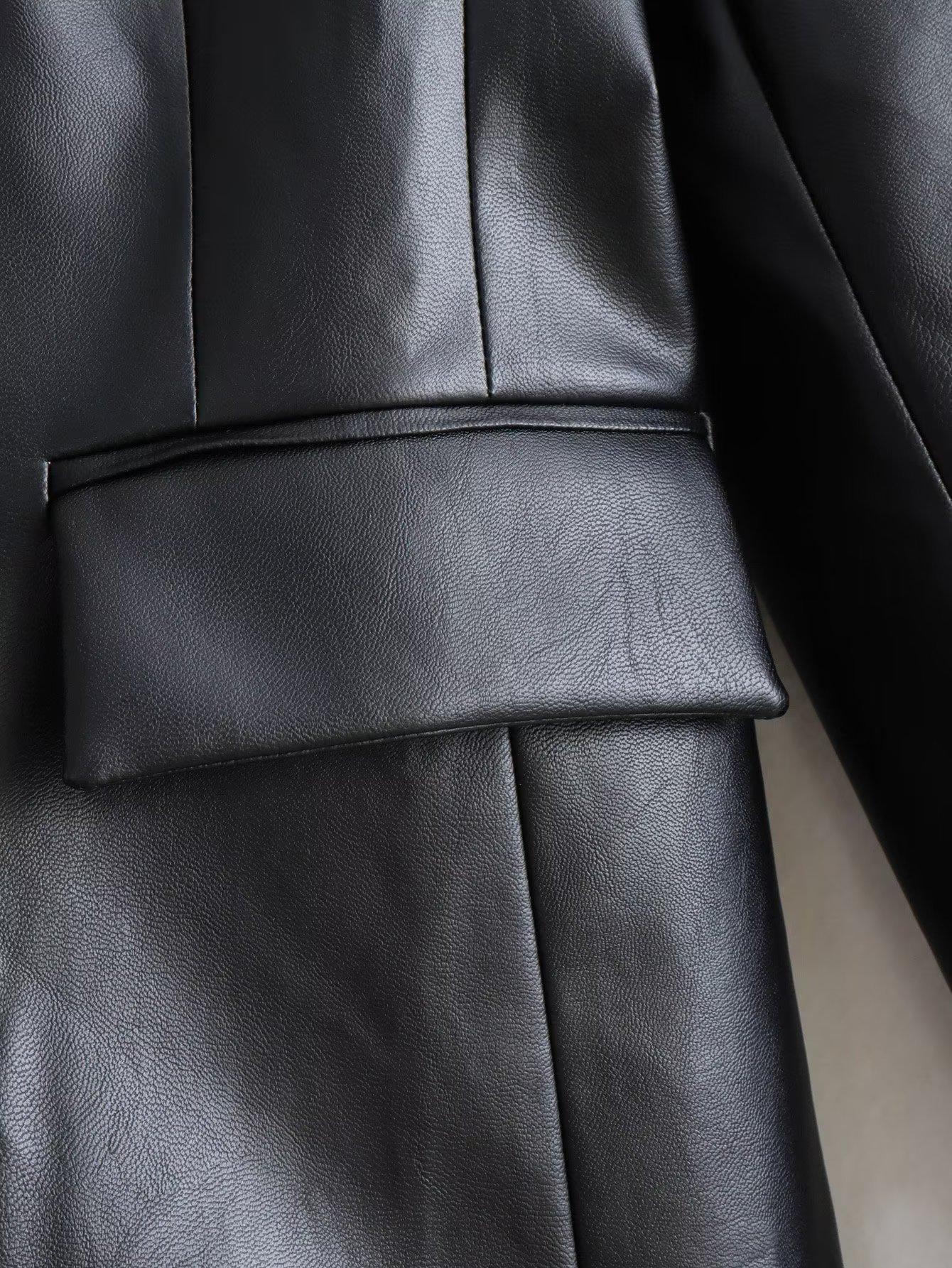 Exportación Transfronteriza Ropa de Mujer al por Mayor 2023 Otoño Nuevo 2 Colores Color Puro Chaqueta Traje de Cuero PU Elegante Casual Versátil