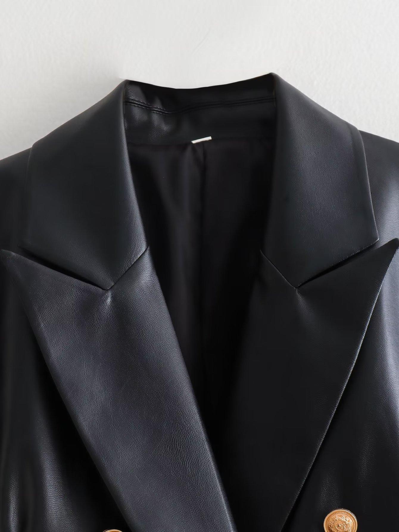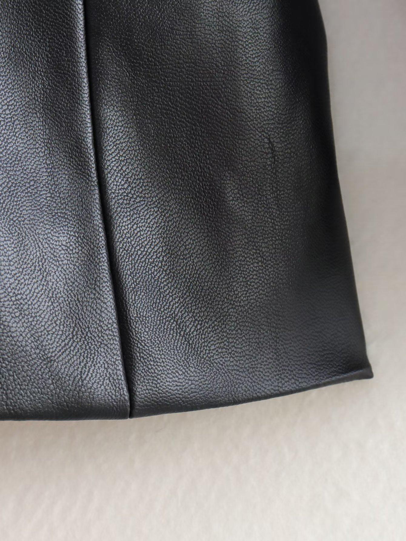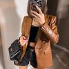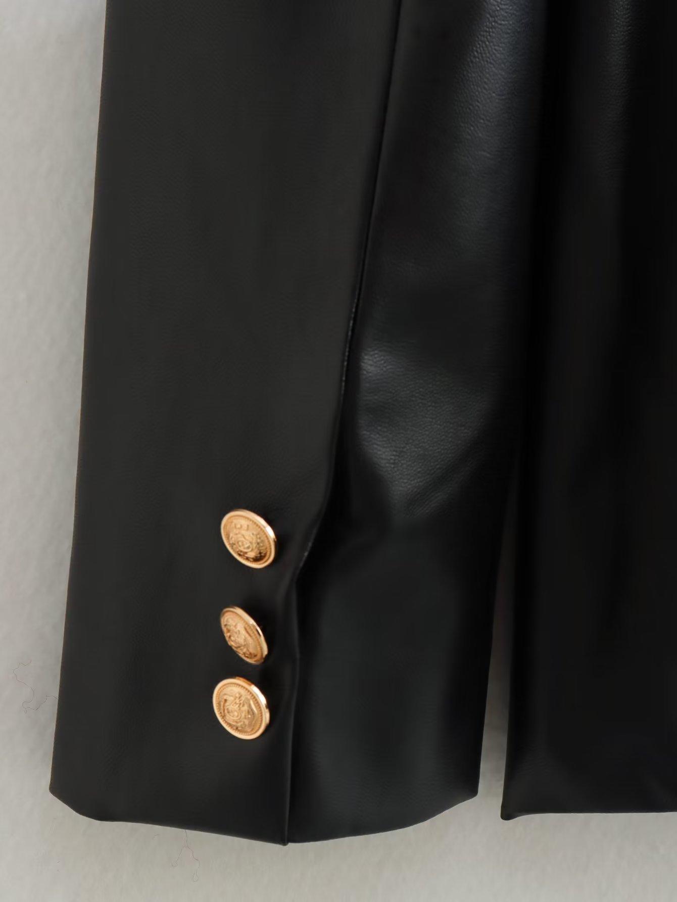 Exportación Transfronteriza Ropa de Mujer al por Mayor 2023 Otoño Nuevo 2 Colores Color Puro Chaqueta Traje de Cuero PU Elegante Casual Versátil
