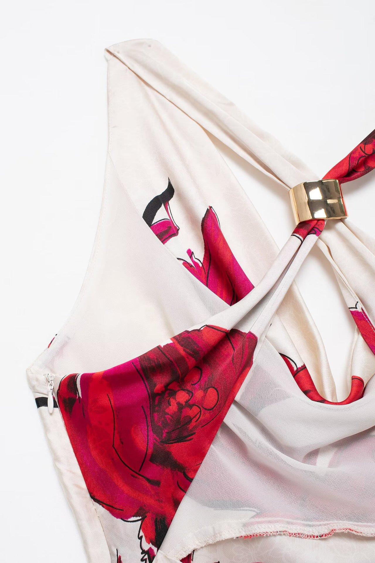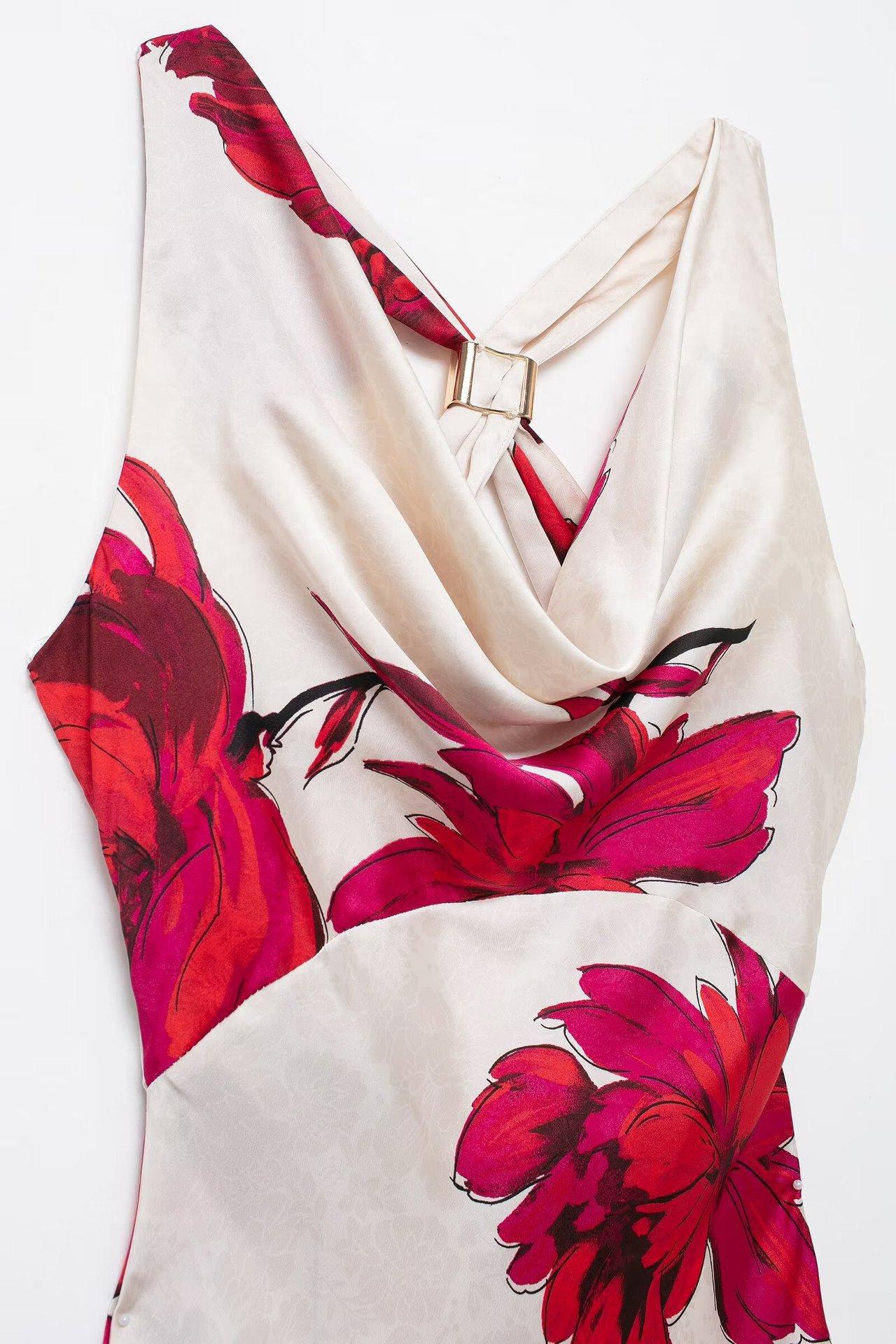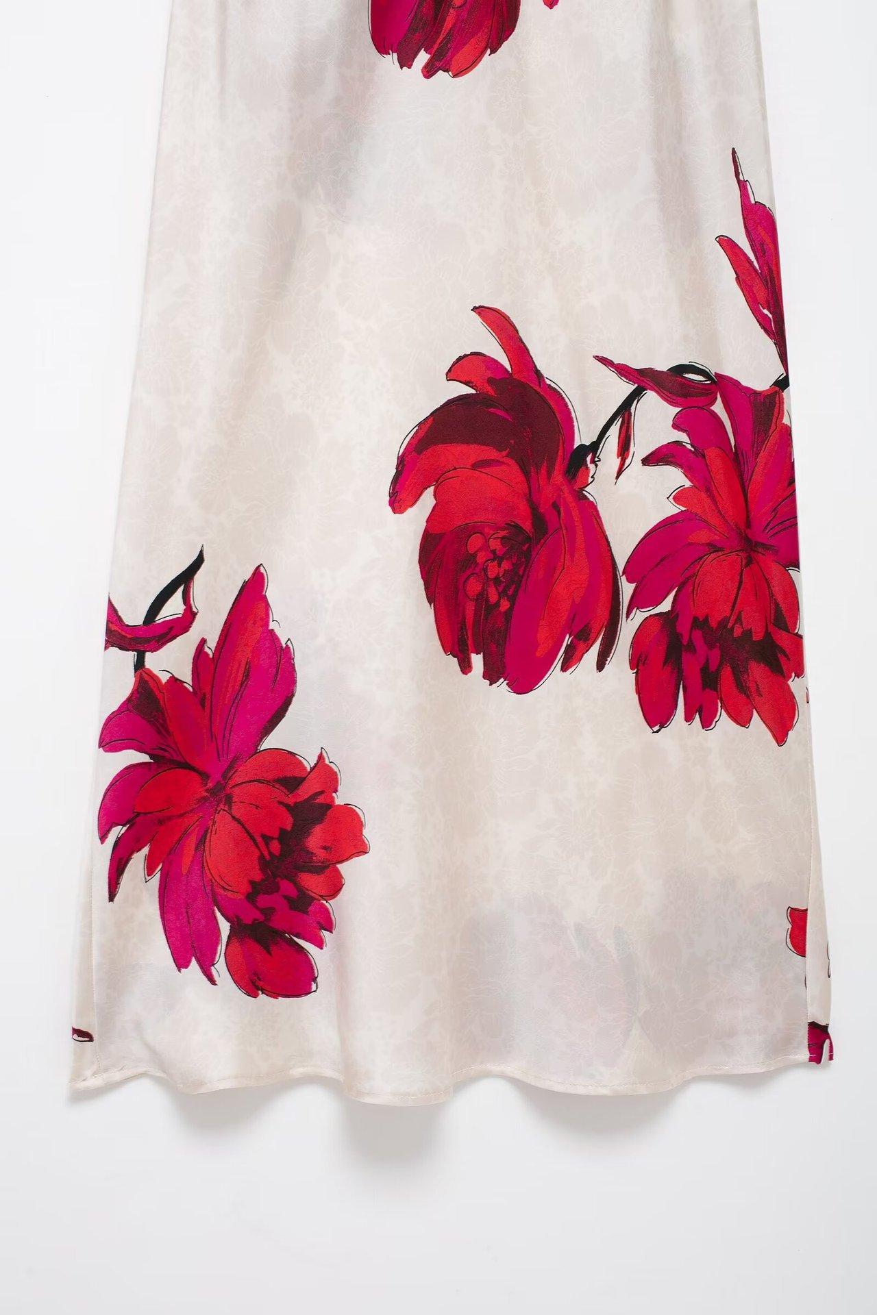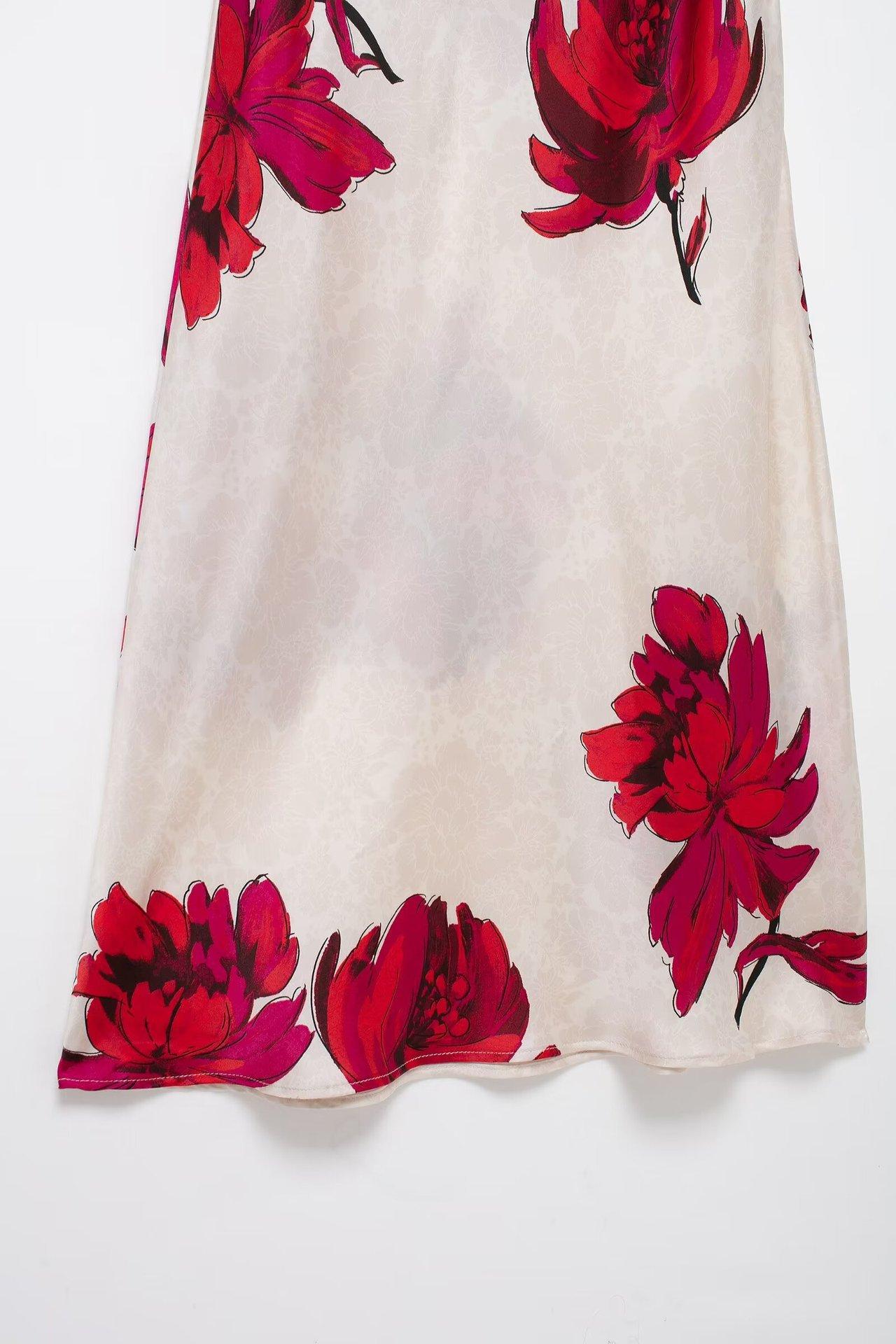 Vestido midi de satén de seda con estampado floral, ropa de mujer europea y americana de comercio exterior transfronterizo de Amazon, verano 2024