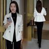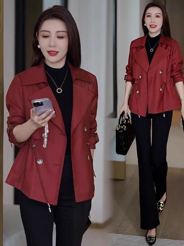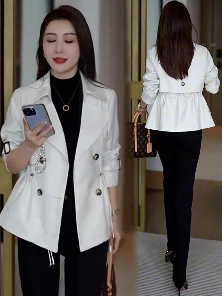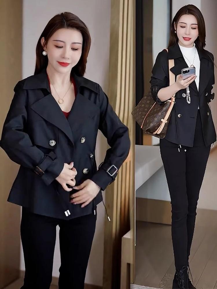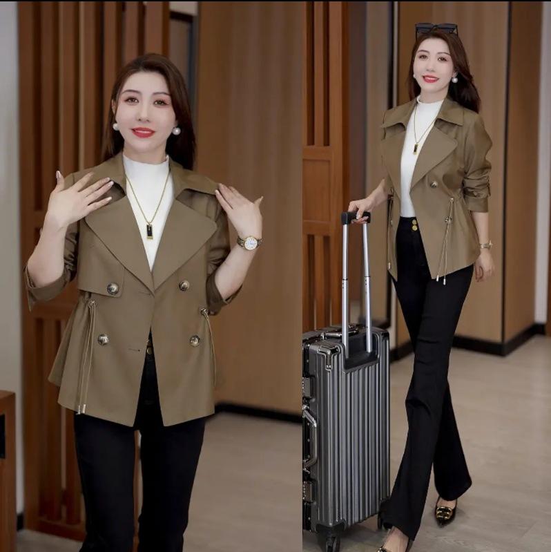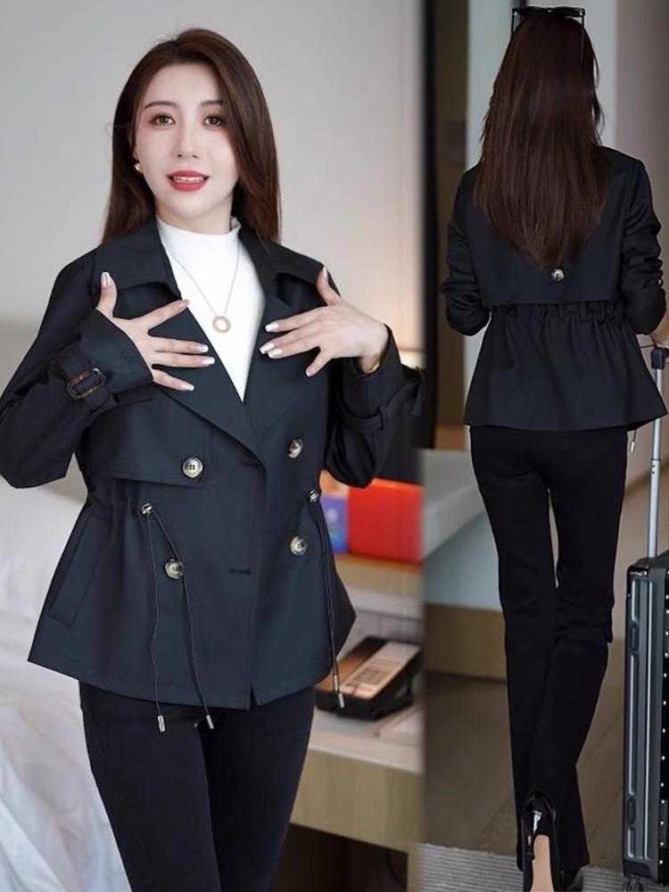 Abrigo corto para mujer, otoño 2024, nuevo, estilo occidental, cintura ajustada, cruzado, pequeño, combinable, informal, chaqueta superior de moda