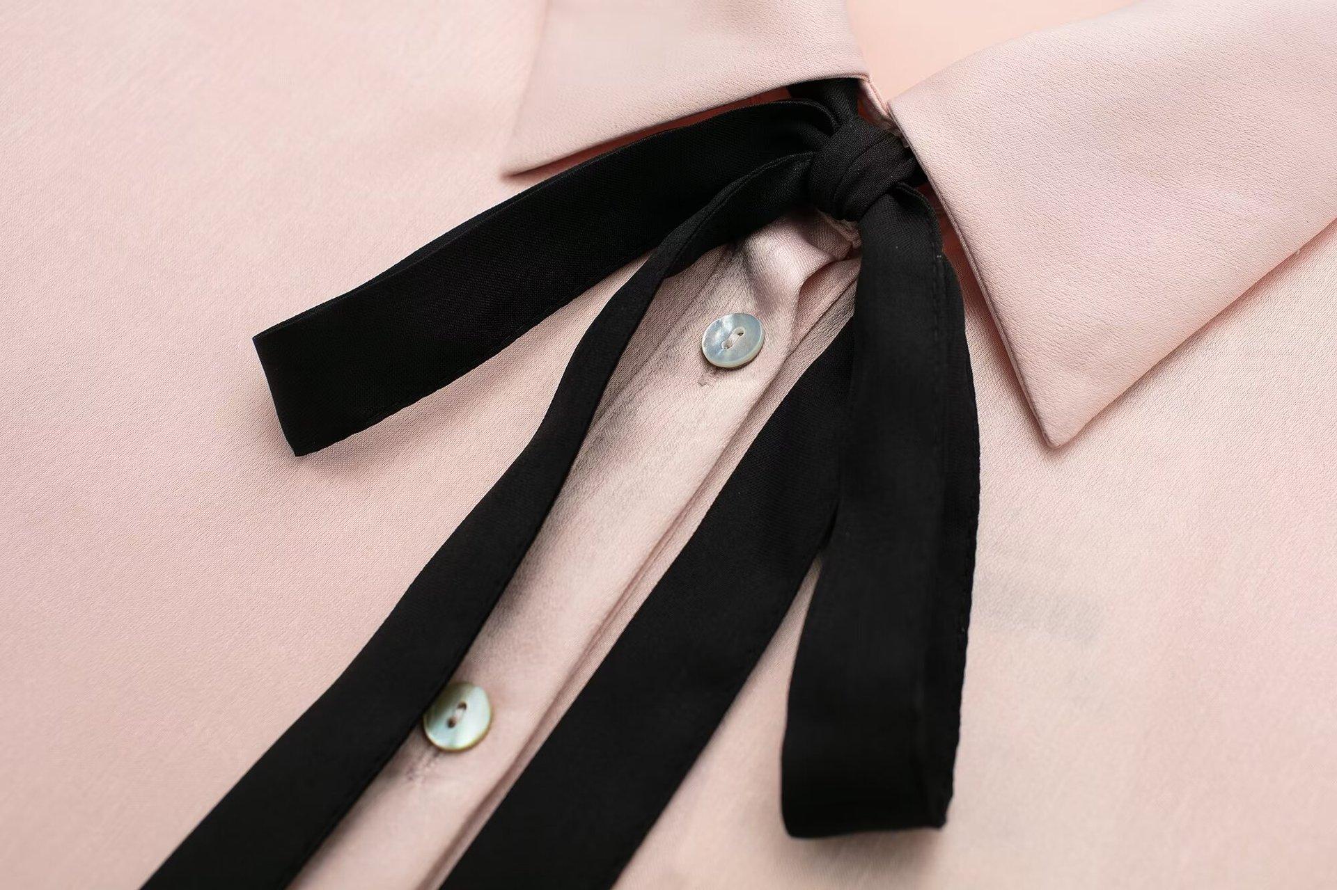 Zr Comercio Exterior Transfronterizo Ropa de Mujer al Mayoreo Estilo Europeo y Americano Ropa de Mujer 2024 Nueva Camisa con Textura de Satén de Seda Decorada con Lazo