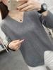 Suéter elegante de punto con cuello en V suelto para mujer, otoño e invierno, nuevo suéter de punto irregular, top de punto de manga larga que combina con todo