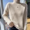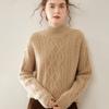 Otoño e Invierno Nuevo Cachemira Grueso Cuello Medio Alto Trenzado Hombro Top Suelto Adelgazante Trenzado Base Suéter de Punto