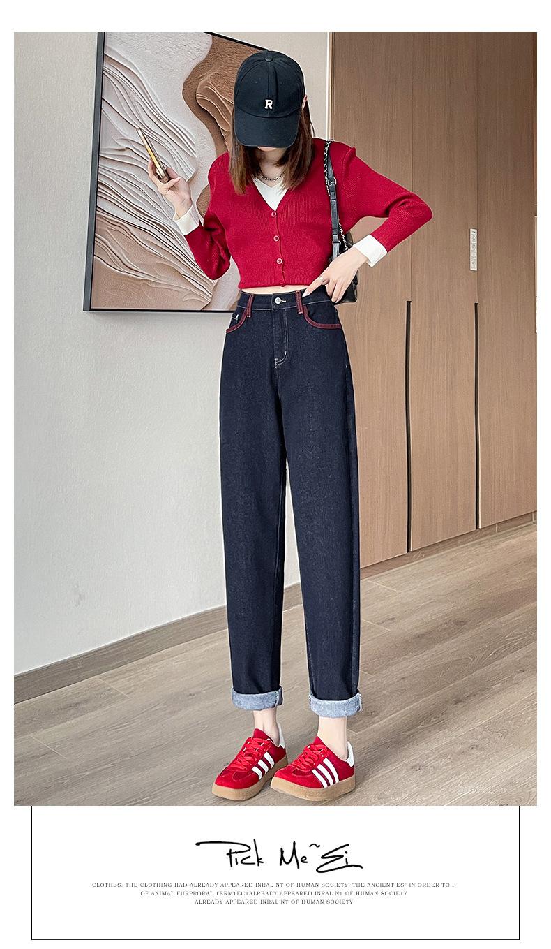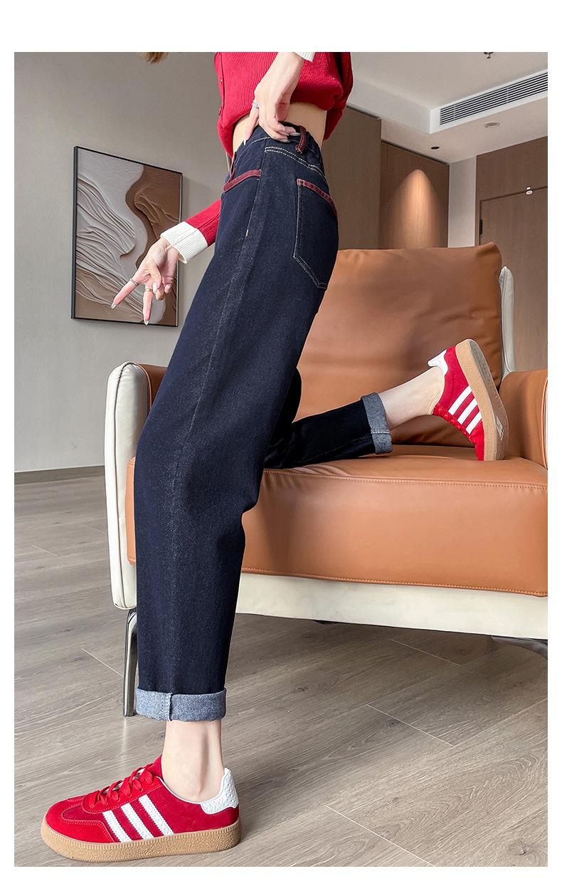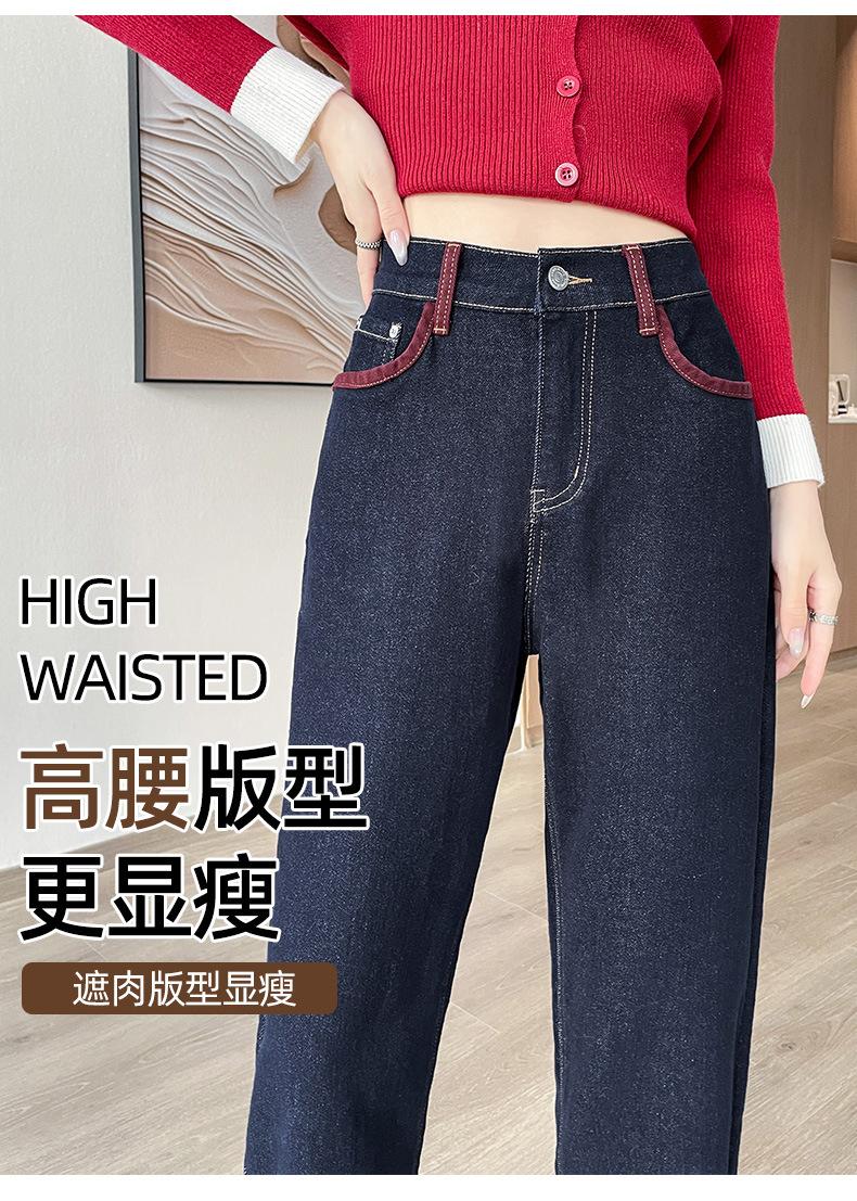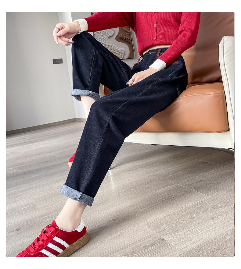 Pantalones rectos de mujer pantalones mezclilla 2024 otoño e invierno nuevos cintura alta slim casual cónicos jeans de papá A1932