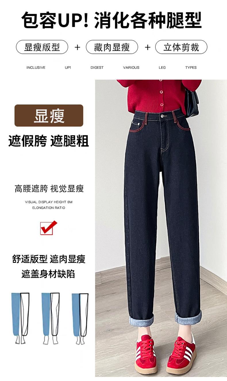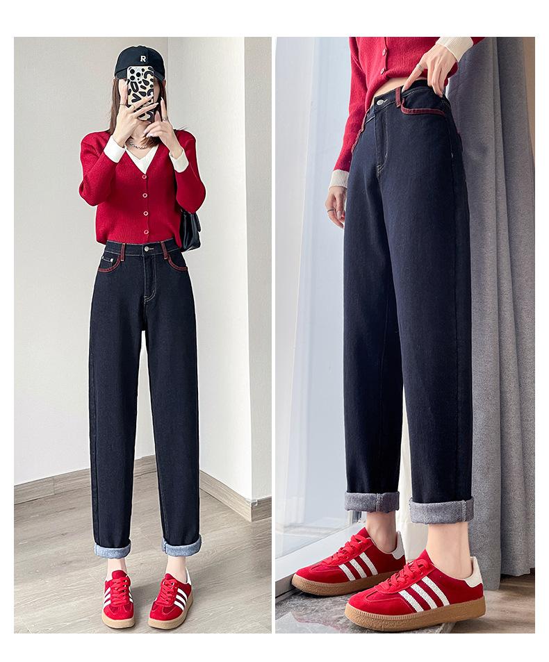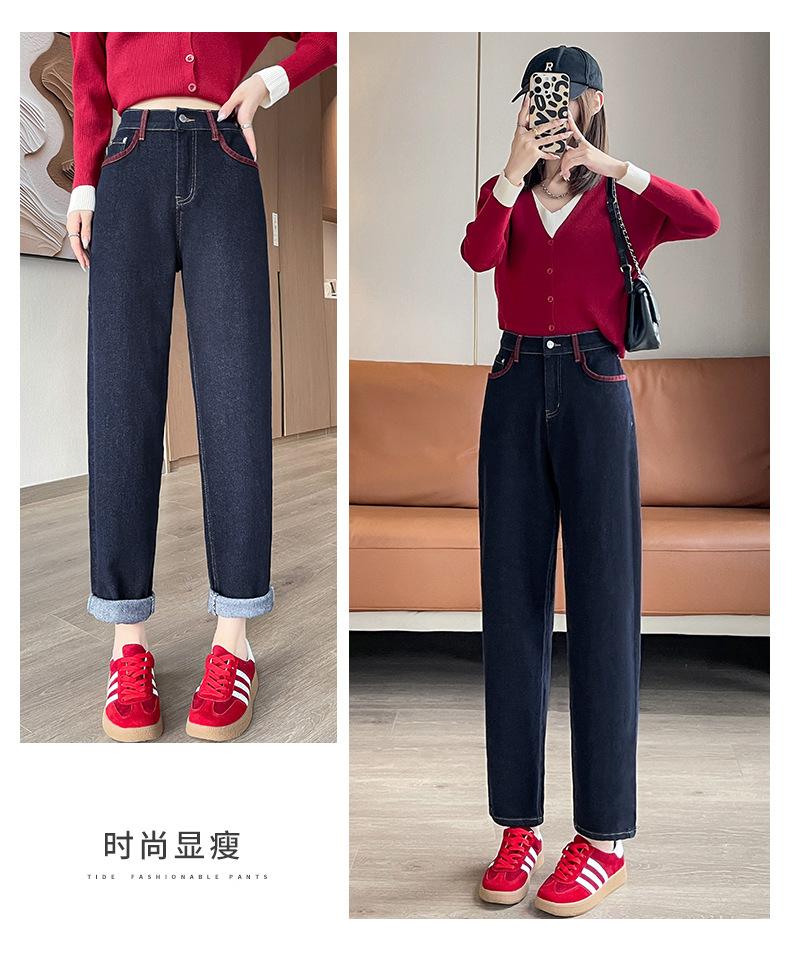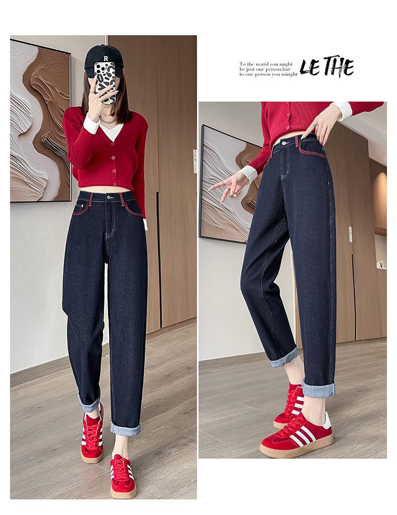 Pantalones rectos de mujer pantalones mezclilla 2024 otoño e invierno nuevos cintura alta slim casual cónicos jeans de papá A1932