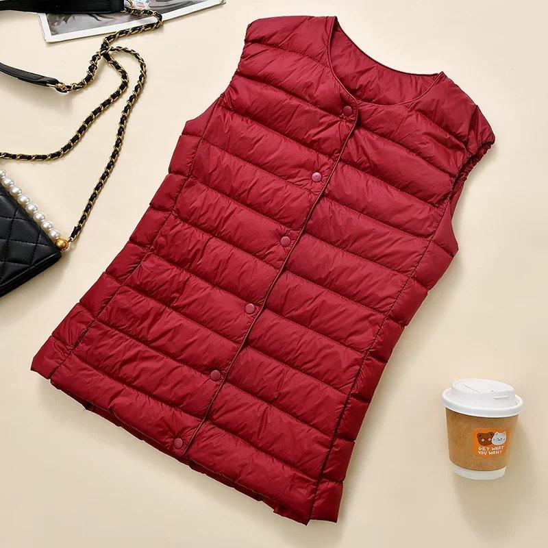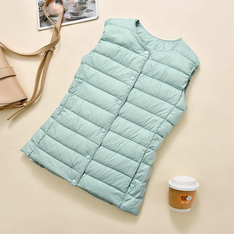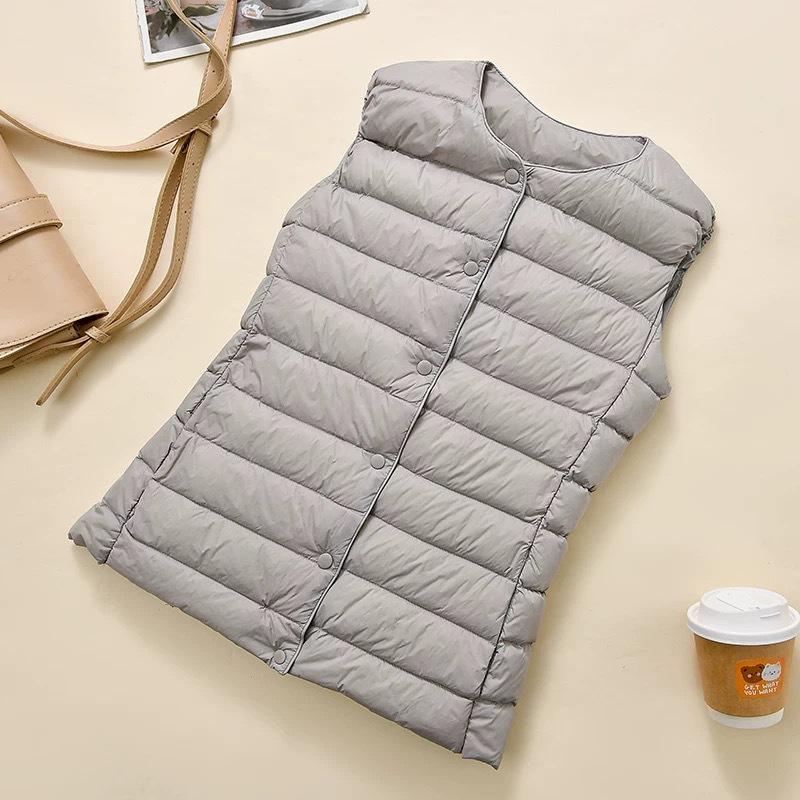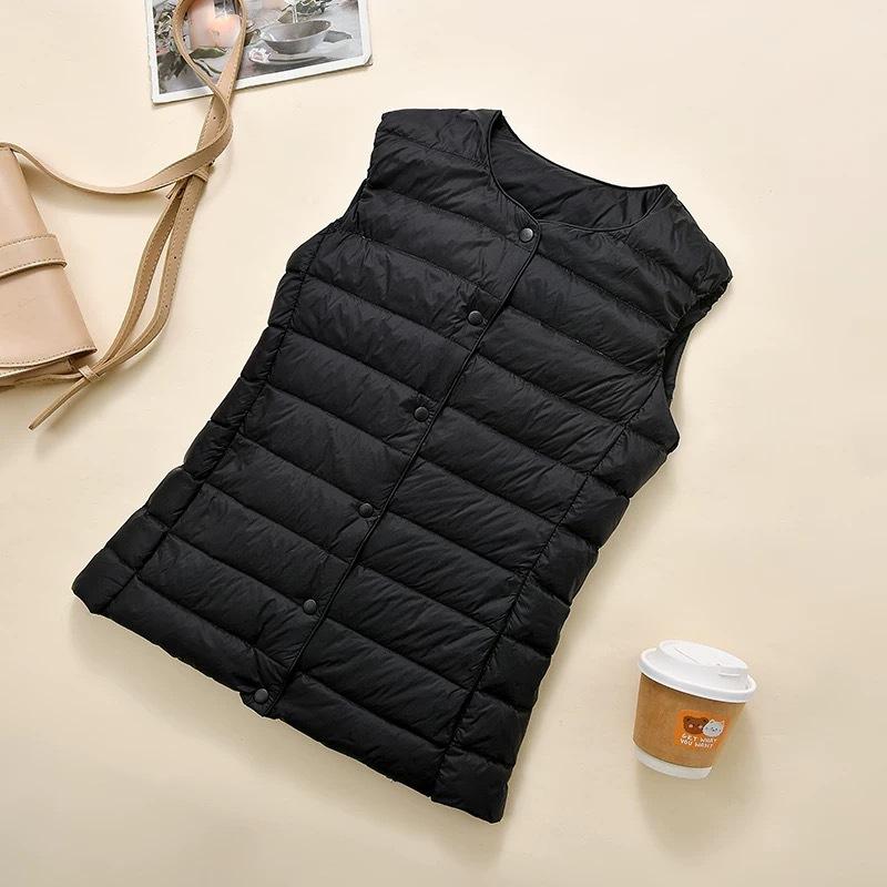 Chaleco de plumón para mujer 2025 Otoño/Invierno Nuevo Cuello redondo Versátil Monoprenda Ligero Moderno Cálido Capa interior Estilo europeo y americano
