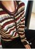 Cárdigan de punto de lana a rayas en contraste para mujer, estación europea, otoño 2024, nueva camisa de base fina para mujer europea de moda