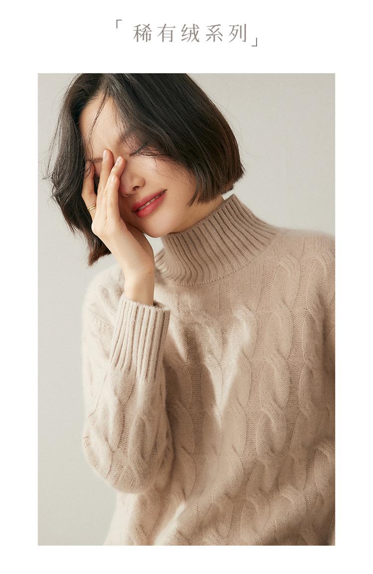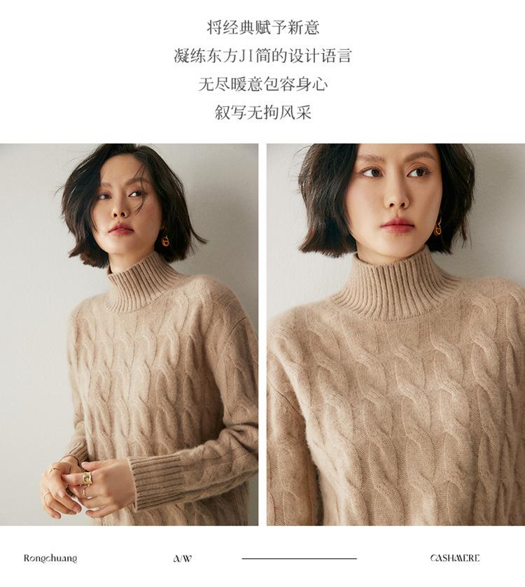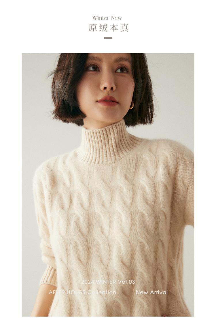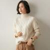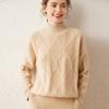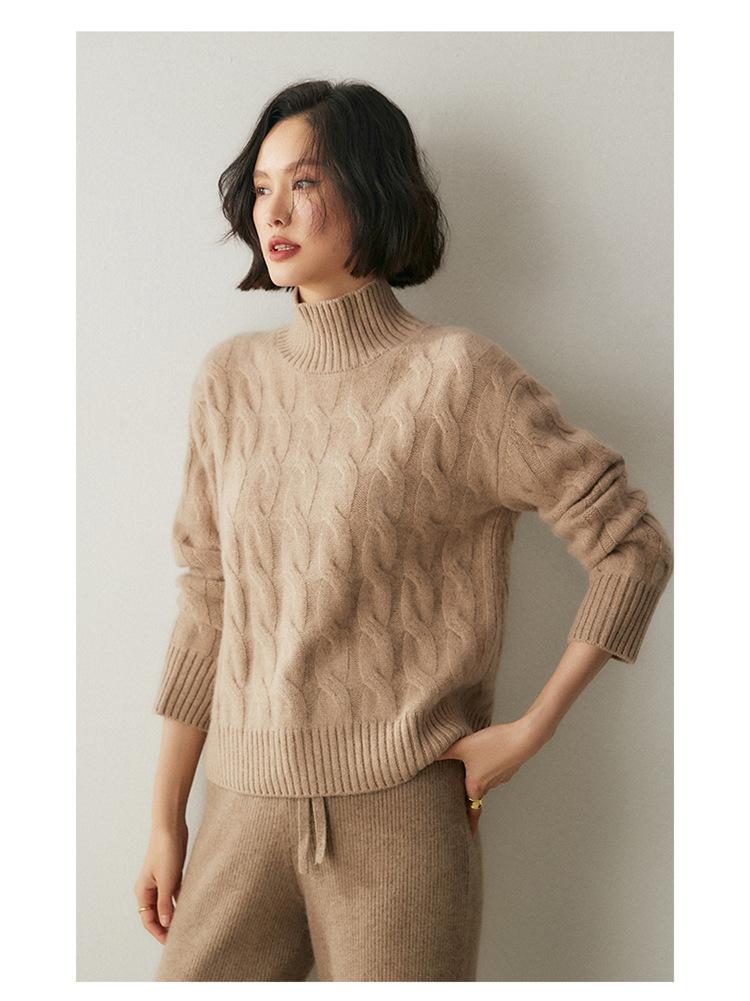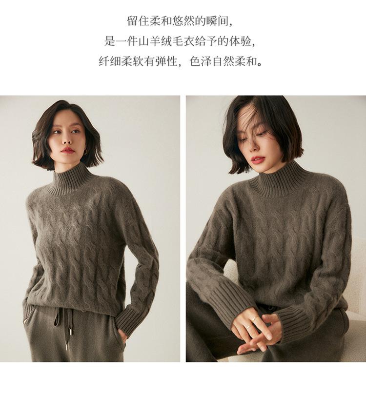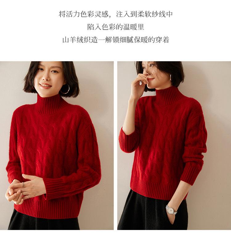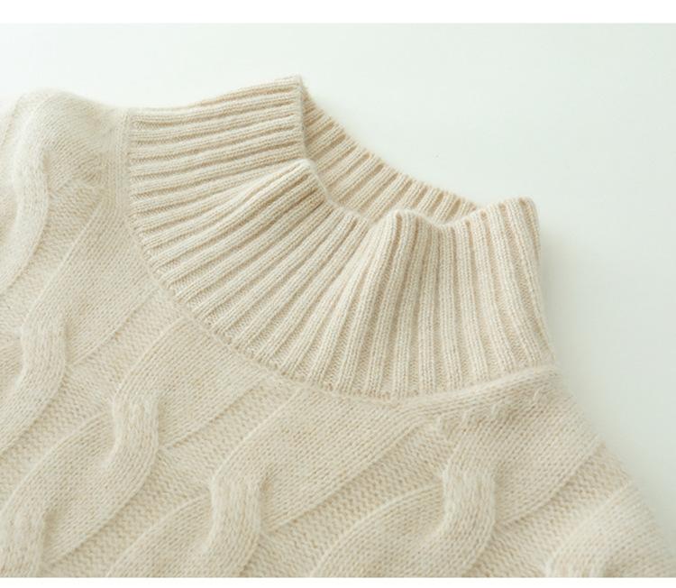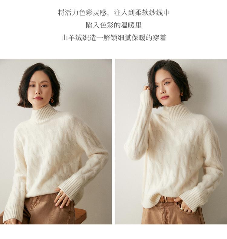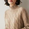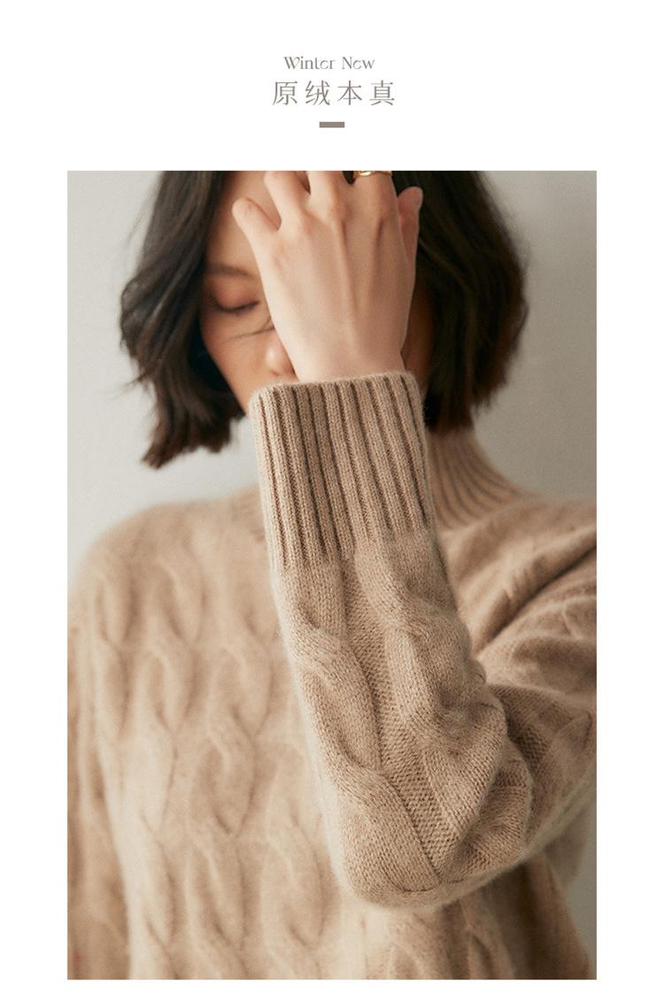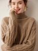 Suéter de cachemira gruesa de doble hebra para mujer, jersey de cuello alto de manga larga, camisa de fondo, suéter de punto informal holgado para otoño e invierno.