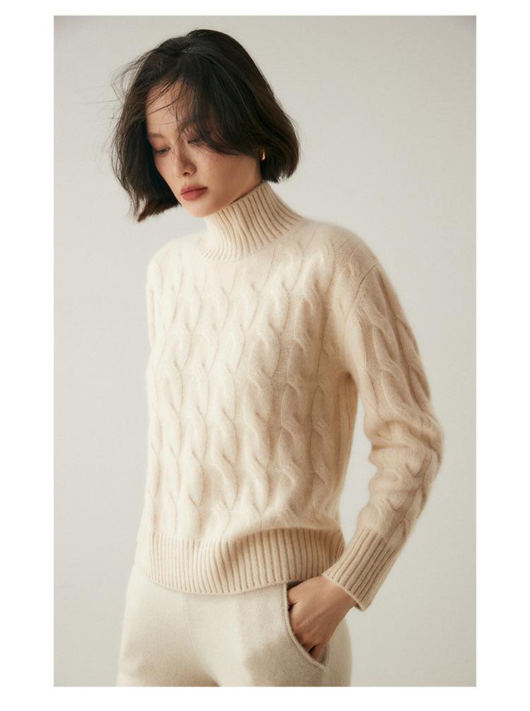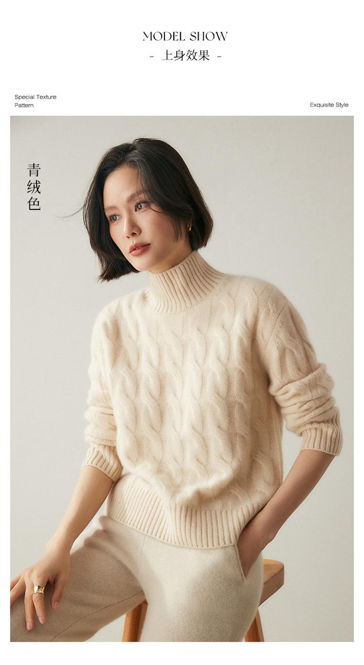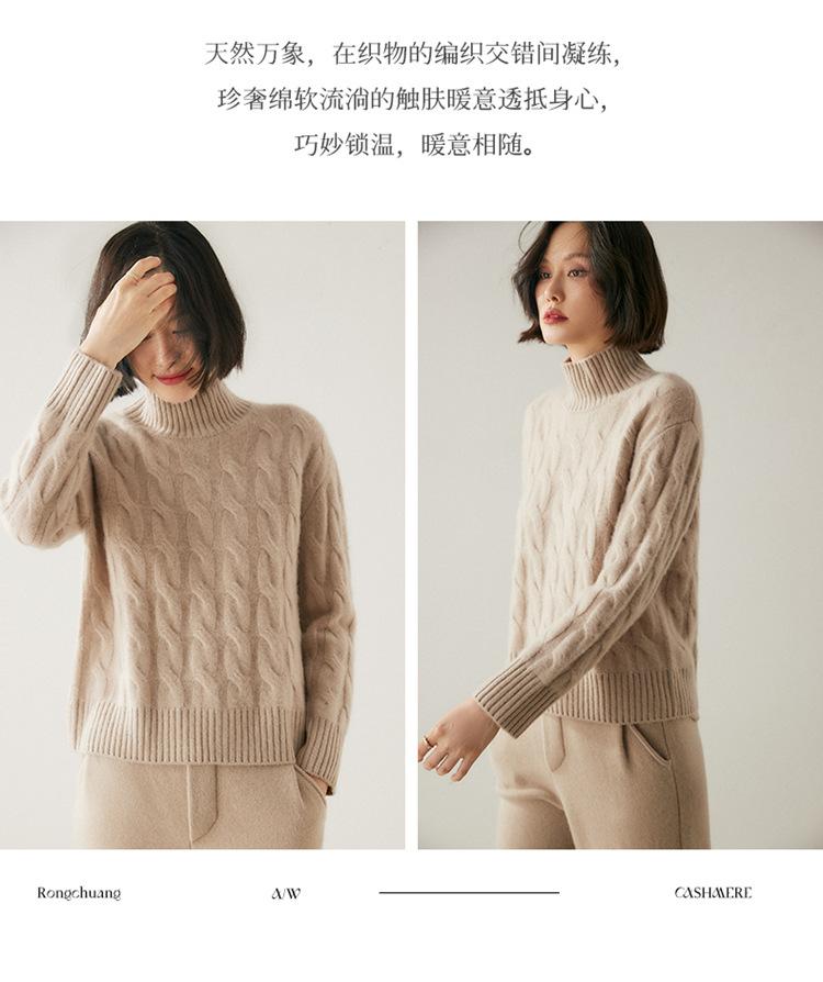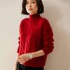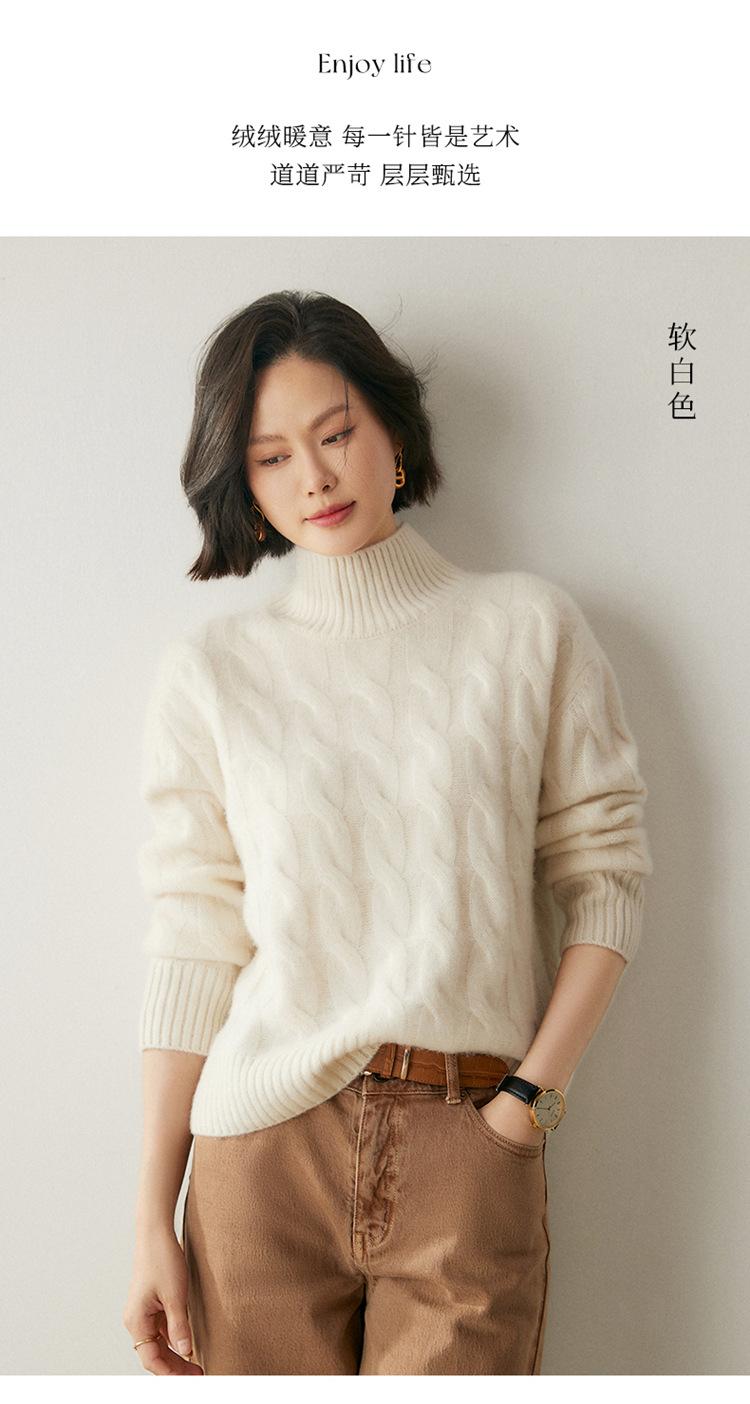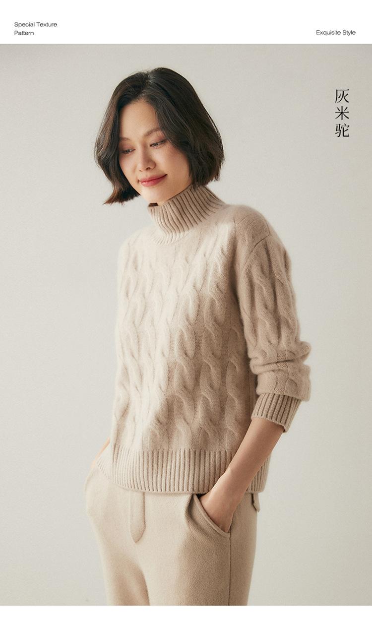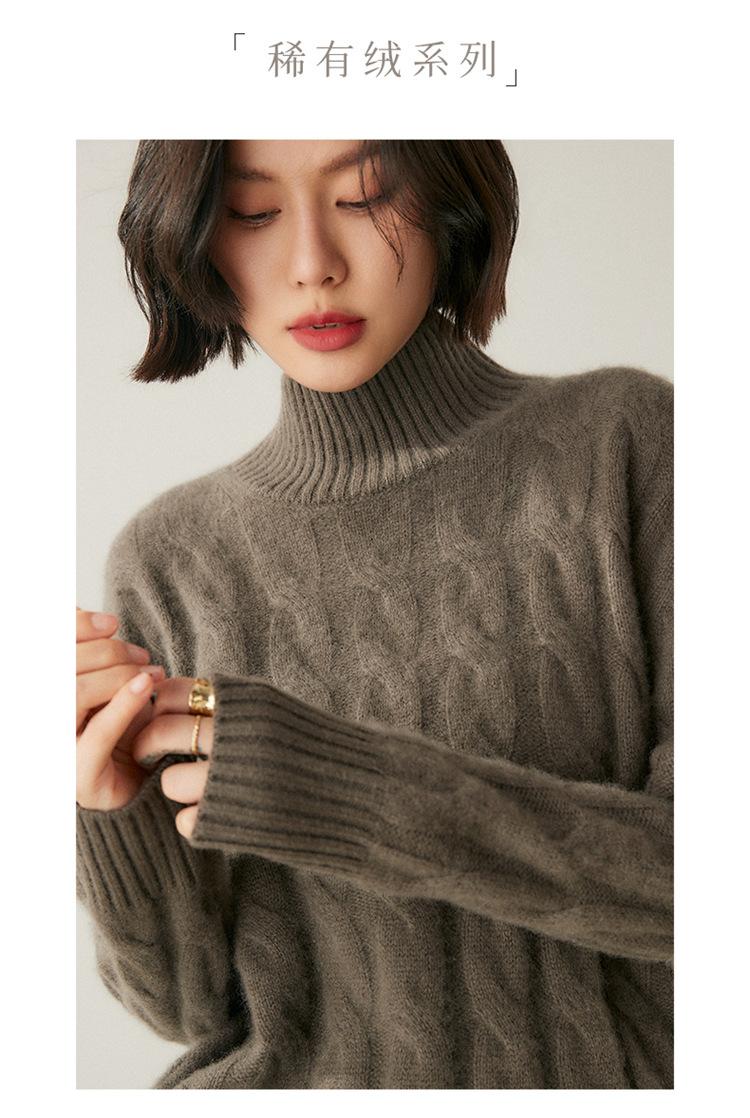 Suéter de cachemira gruesa de doble hebra para mujer, jersey de cuello alto de manga larga, camisa de fondo, suéter de punto informal holgado para otoño e invierno.