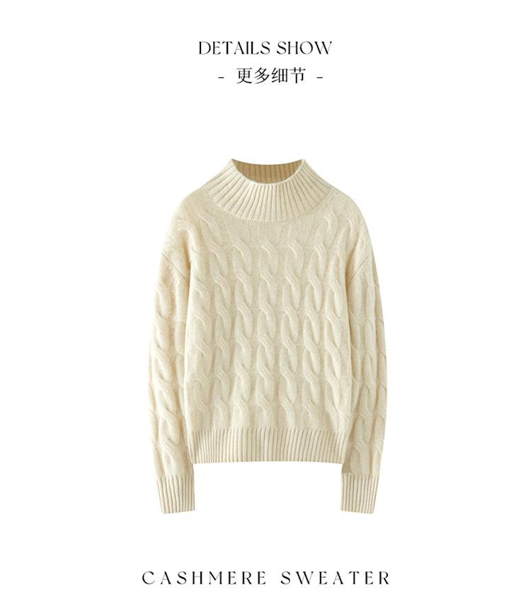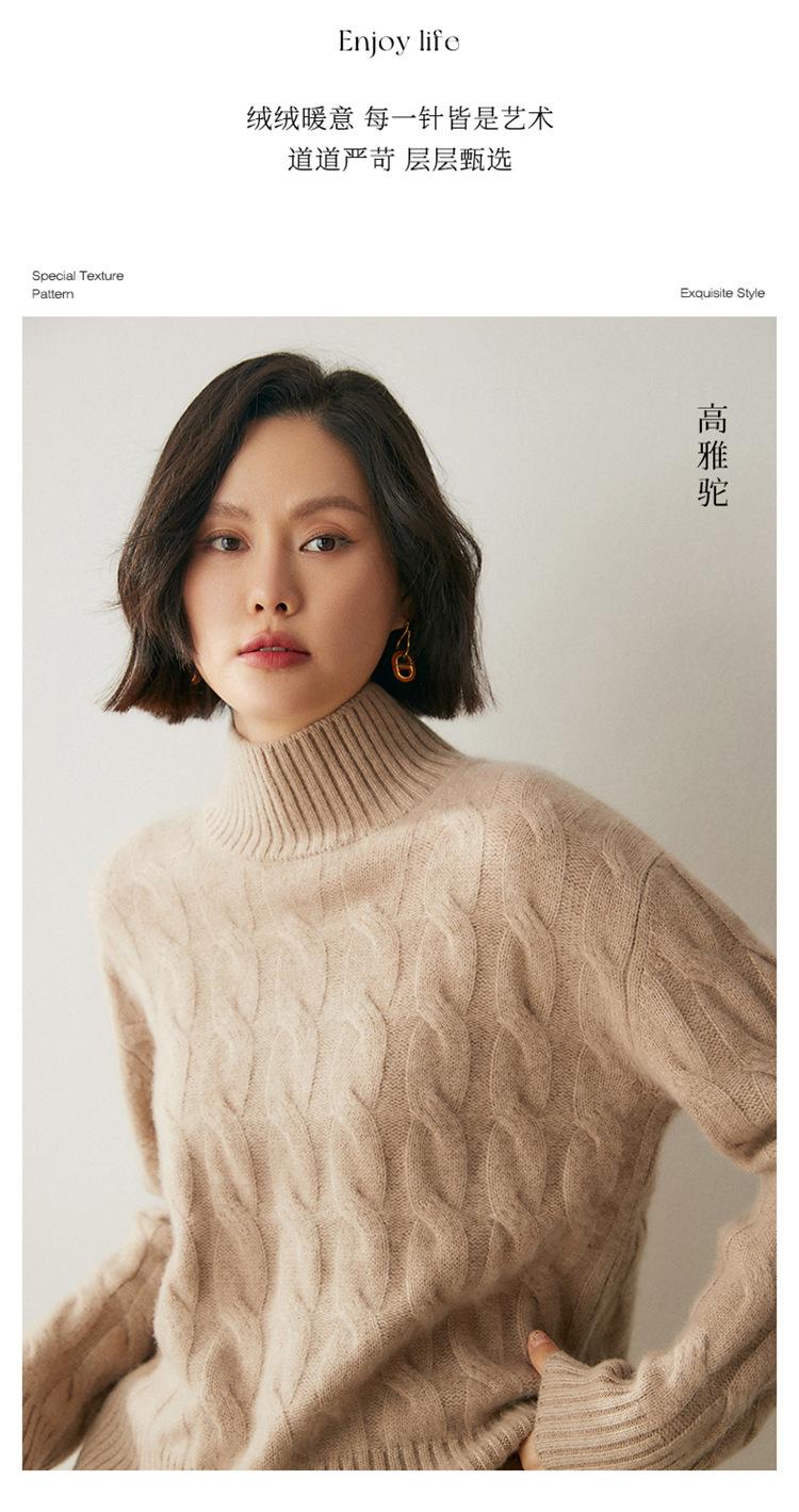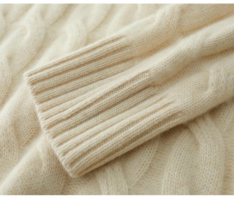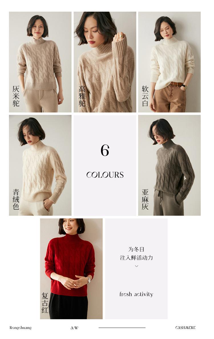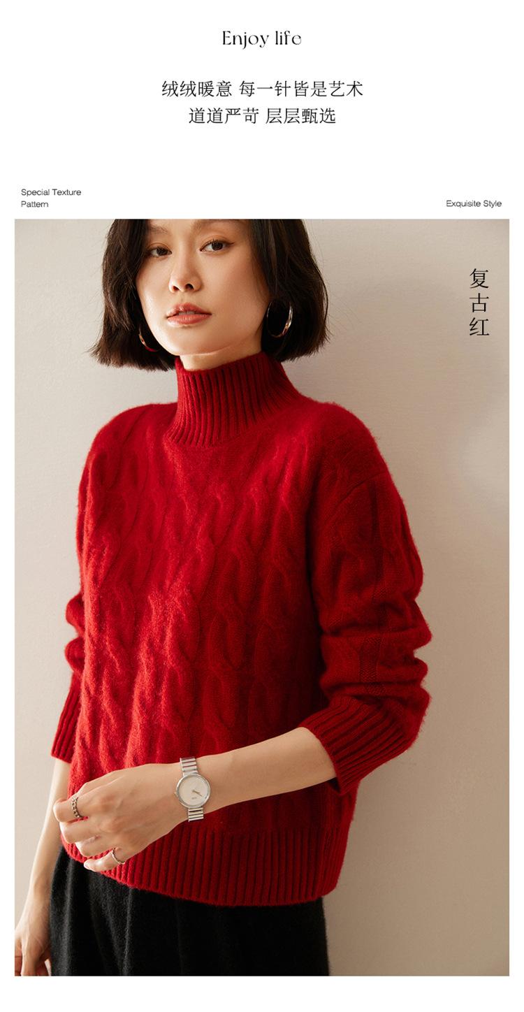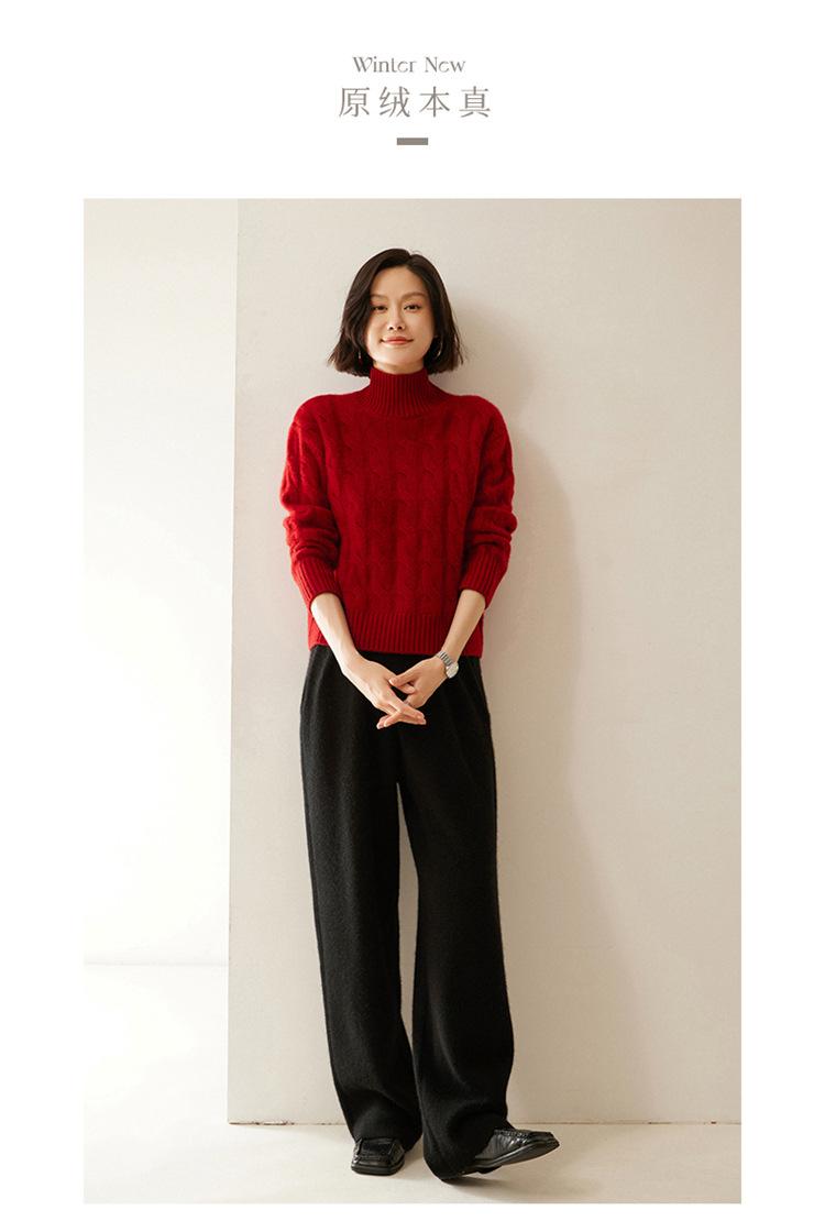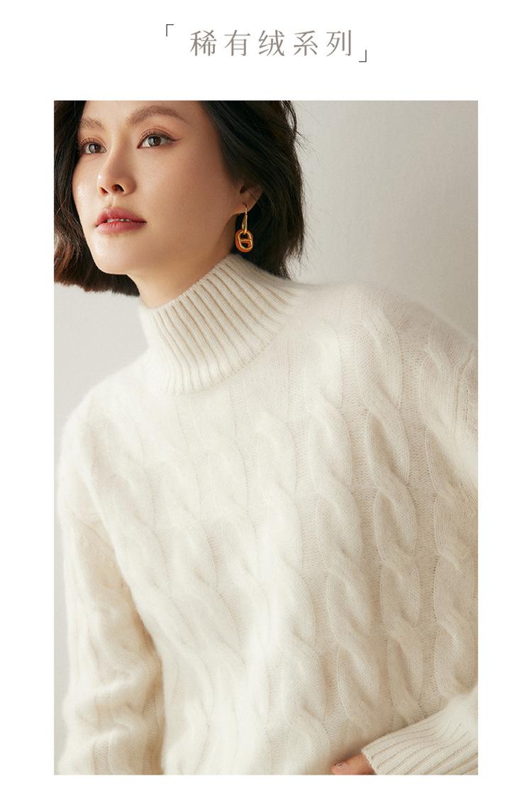 Suéter de cachemira gruesa de doble hebra para mujer, jersey de cuello alto de manga larga, camisa de fondo, suéter de punto informal holgado para otoño e invierno.