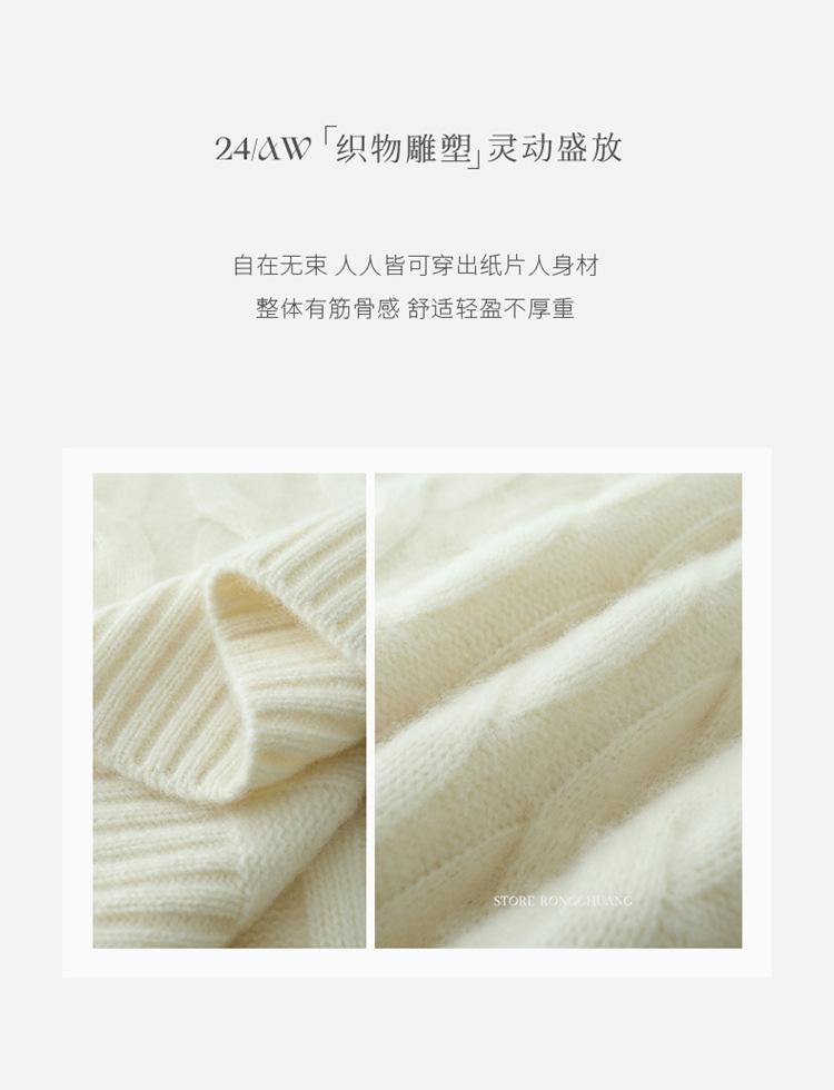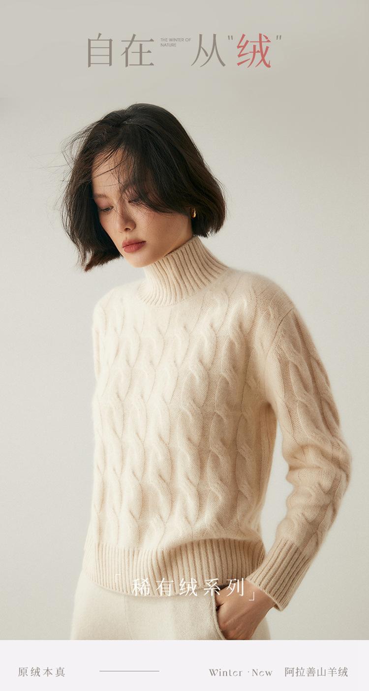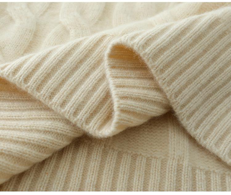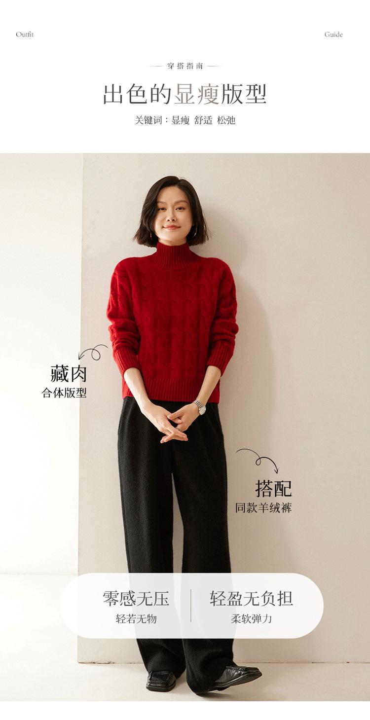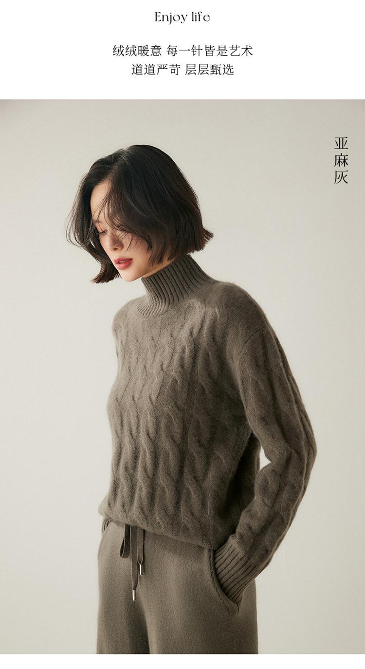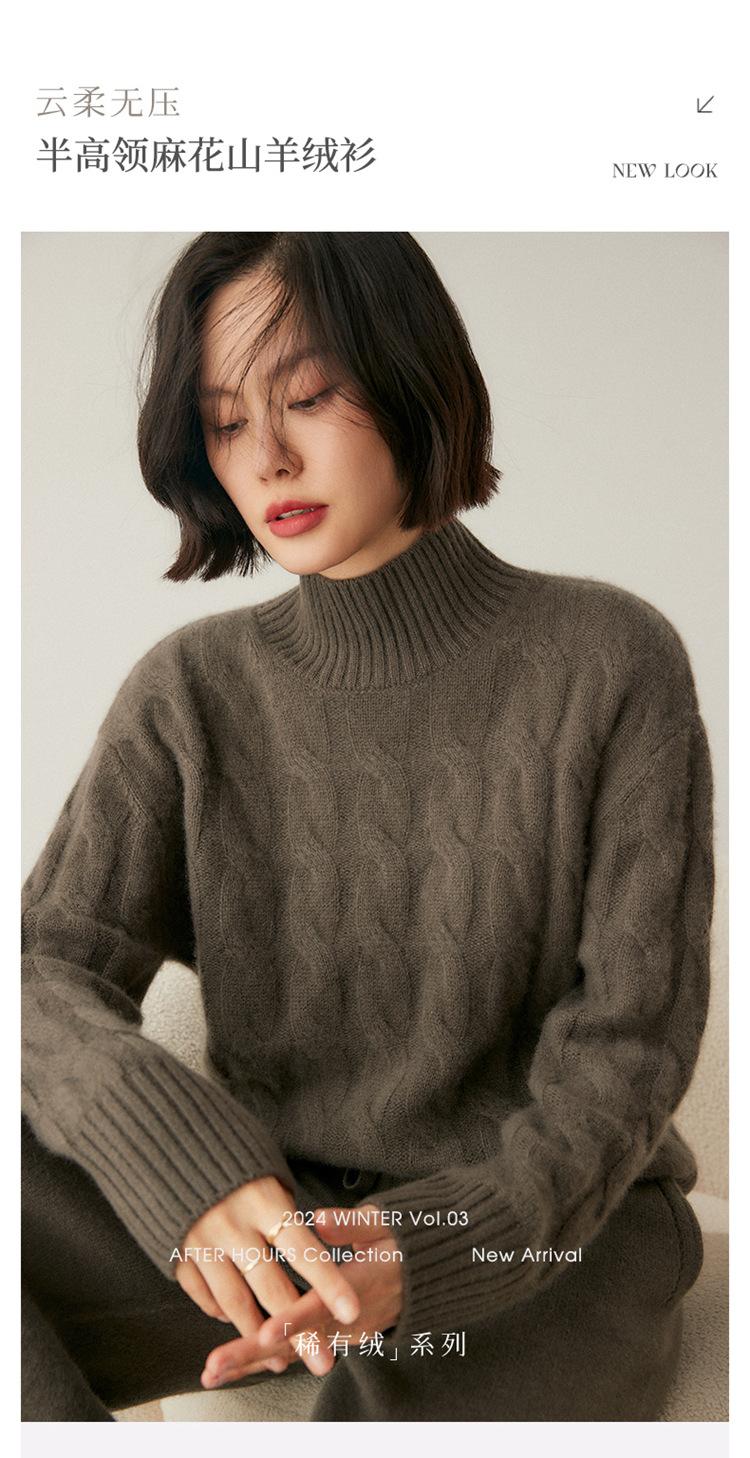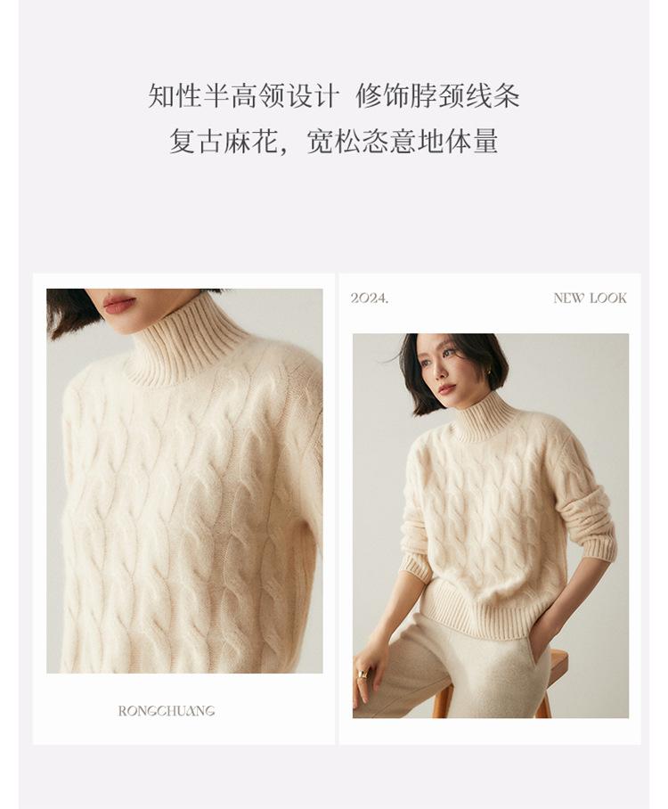 Suéter de cachemira gruesa de doble hebra para mujer, jersey de cuello alto de manga larga, camisa de fondo, suéter de punto informal holgado para otoño e invierno.