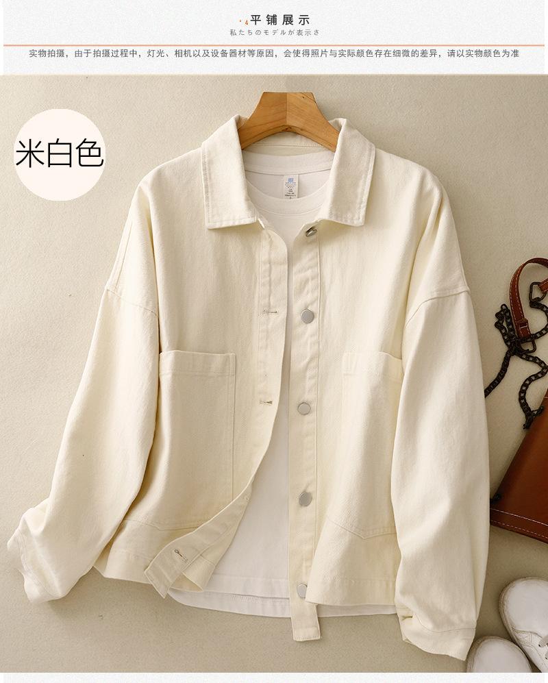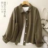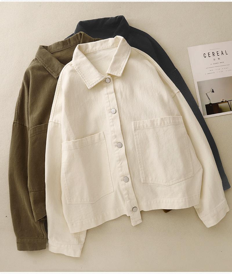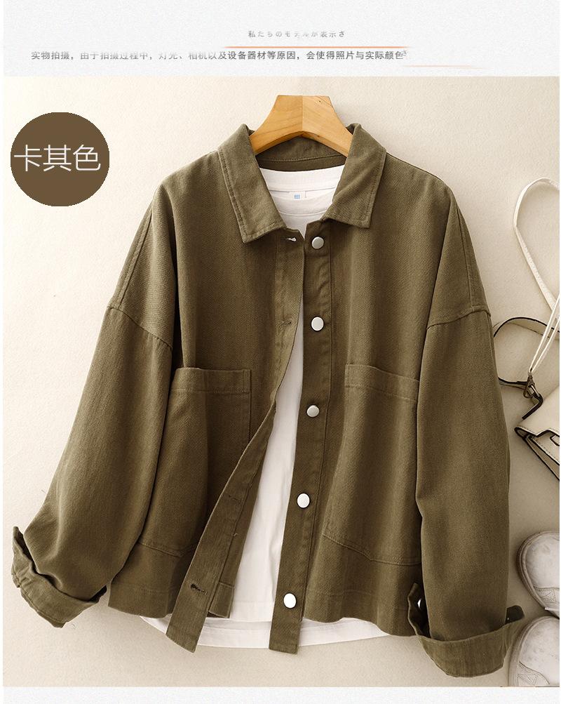 Foto real en stock Chaqueta Cargo para Mujer Primavera y Otoño Nuevo Estilo Coreano Suelta Adelgazante Bolsillo Grande Manga Larga Algodón Vintage Top
