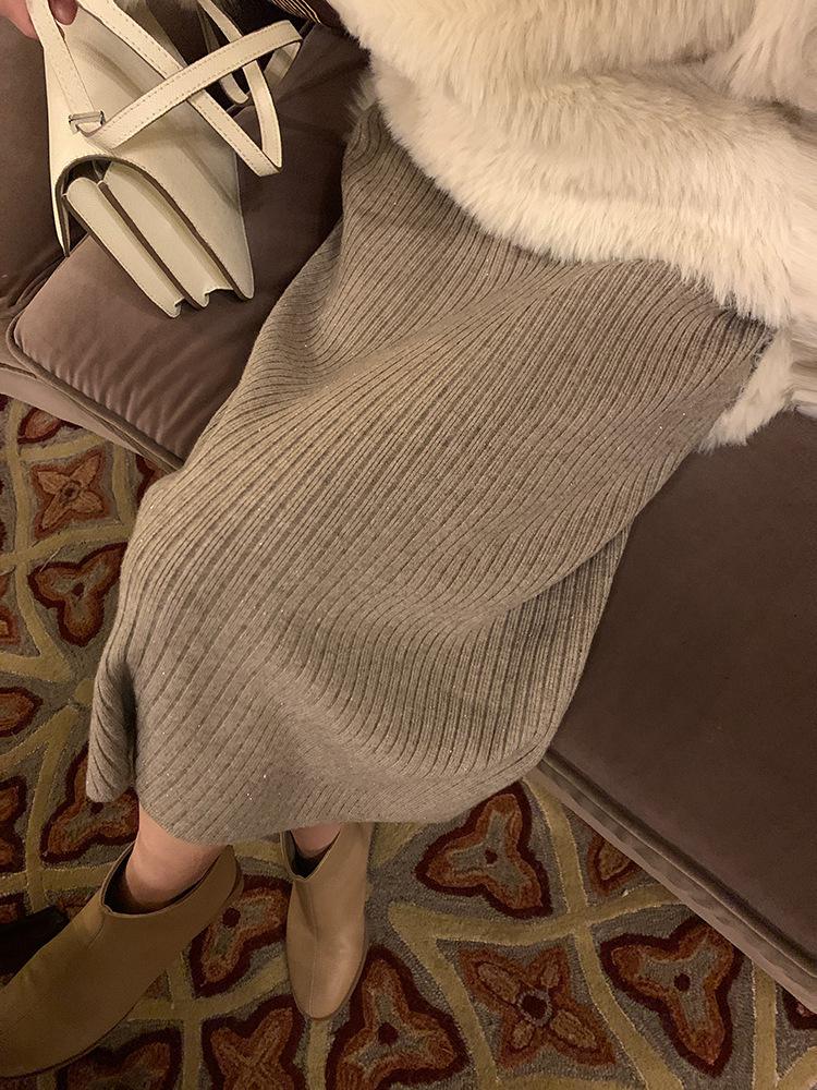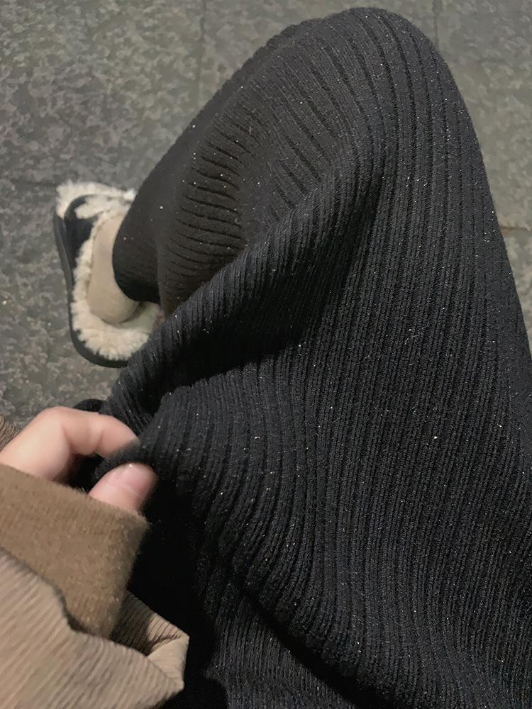 Falda tejida de largo medio y cintura alta para mujer que cubre la entrepierna 2024 otoño e invierno nueva versión coreana de falda de cadera ajustada tendencia