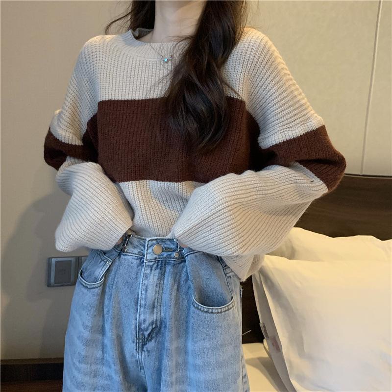 Suéter Corto a Rayas para Mujer Primavera y Otoño 2025 Nuevo Ropa Exterior Holgada Otoño e Invierno Top de Suéter de Manga Larga