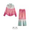 Comercio exterior transfronterizo de Amazon, ropa para mujer europea y americana, verano 2024, nueva camisa de manga larga con estampado tie-dye, pantalones, traje para mujer