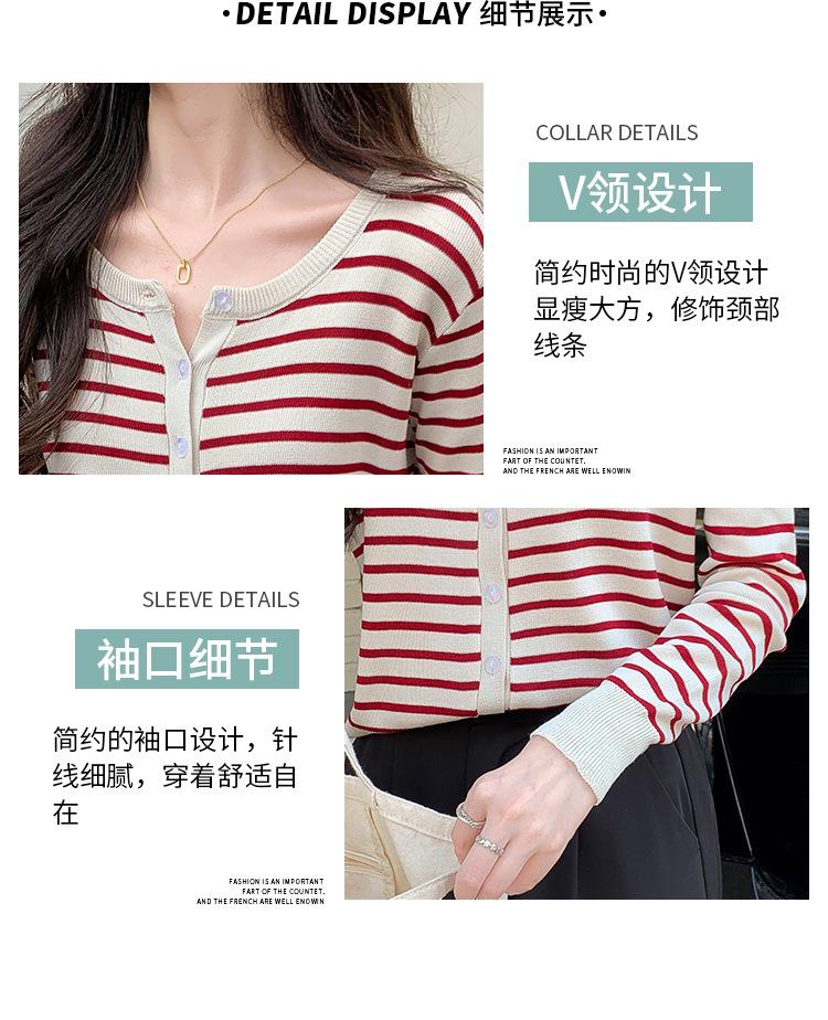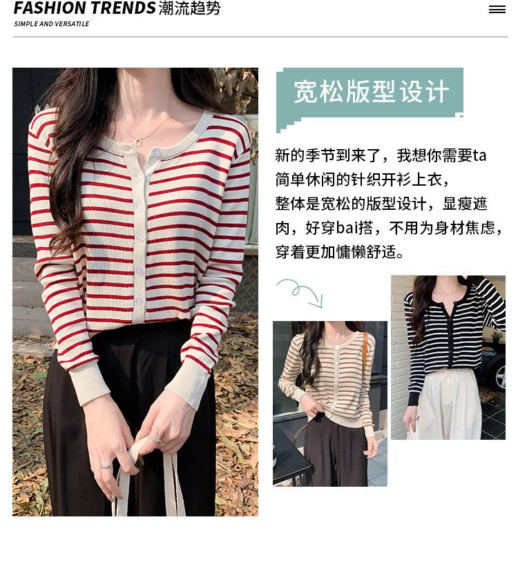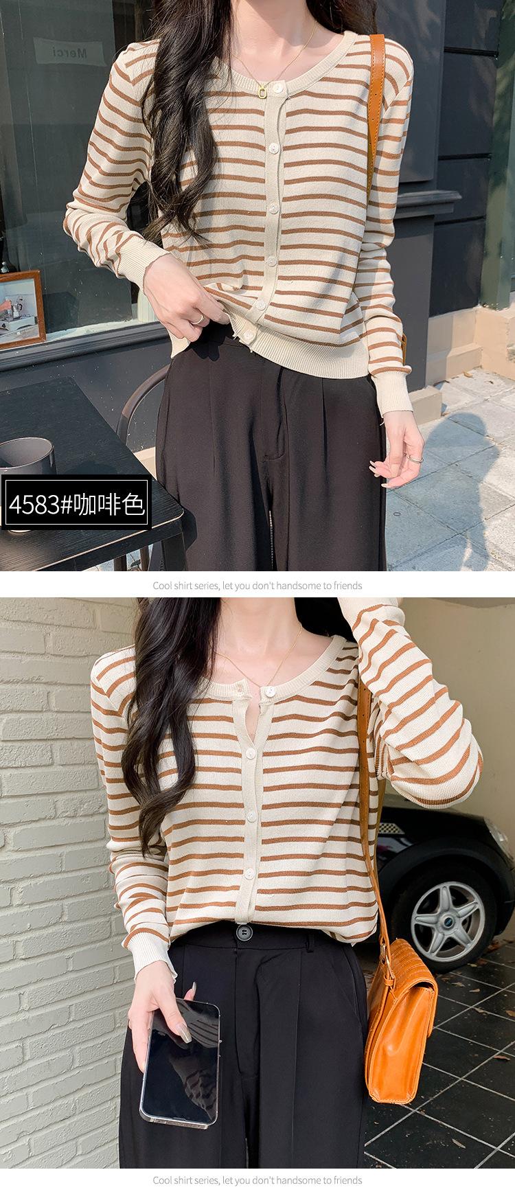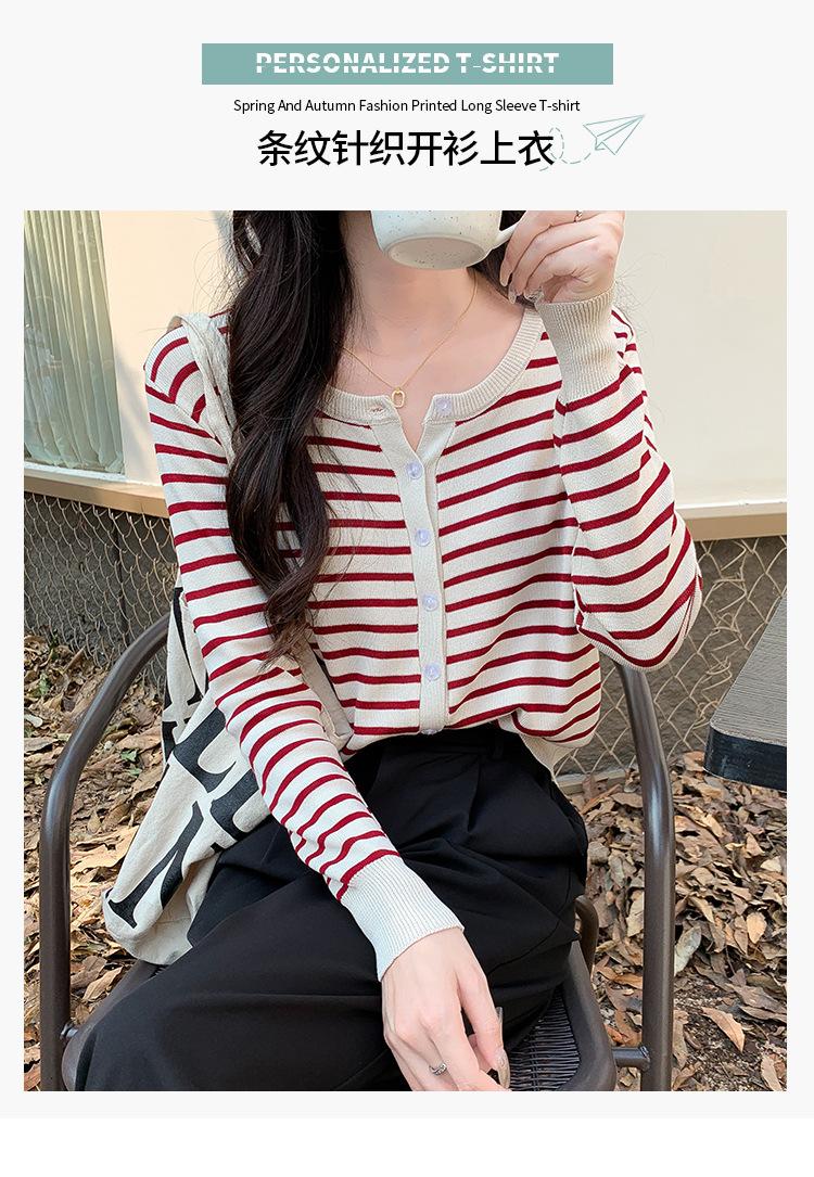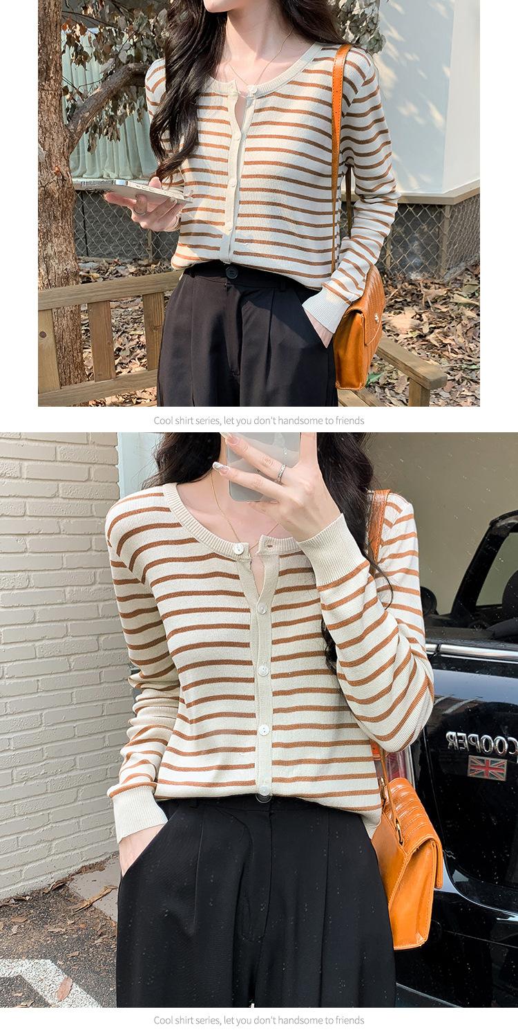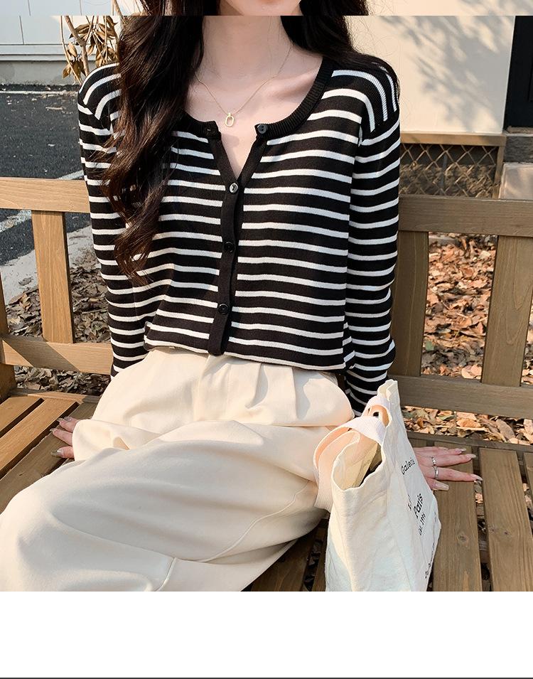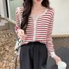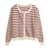 Cárdigan de punto a rayas para mujer, nuevo atuendo de primavera y otoño de 2024, suéter fino elegante, abrigo con top de manga larga