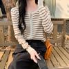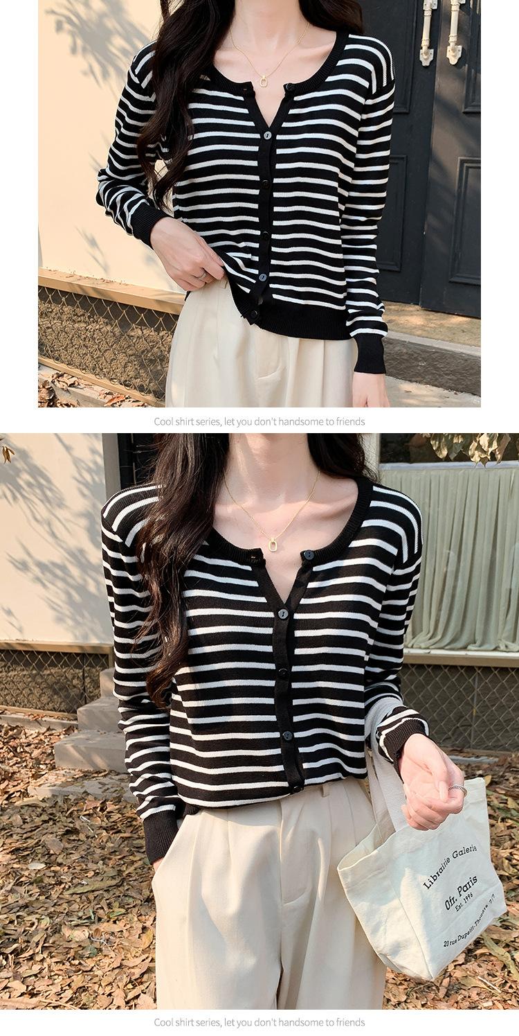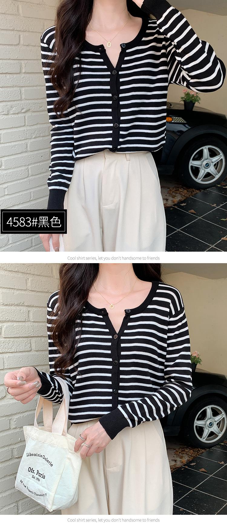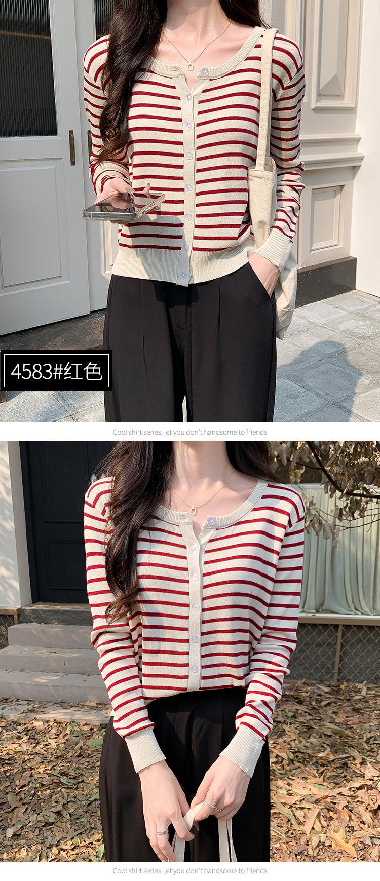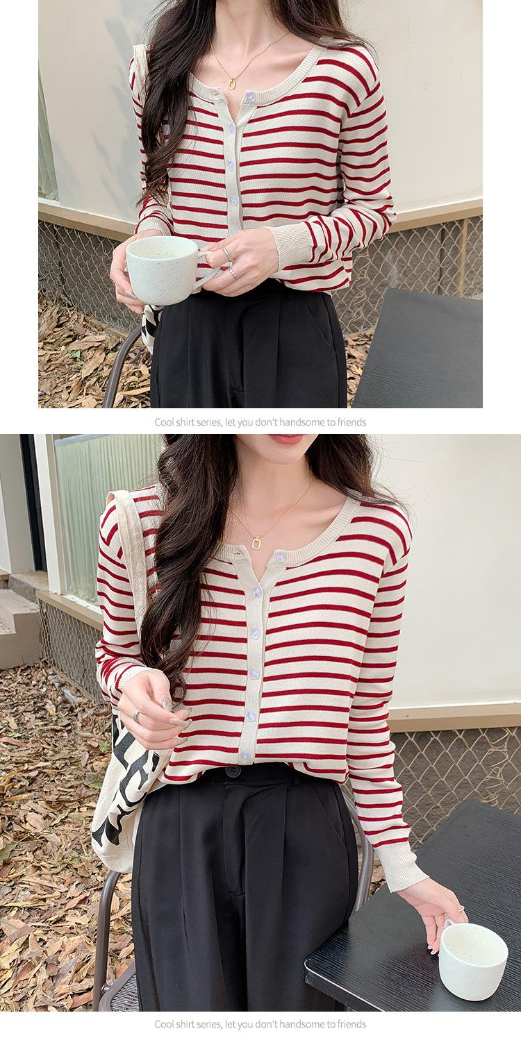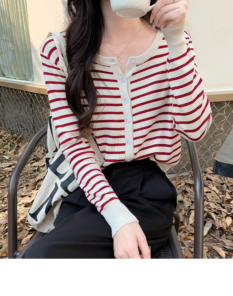 Cárdigan de punto a rayas para mujer, nuevo atuendo de primavera y otoño de 2024, suéter fino elegante, abrigo con top de manga larga