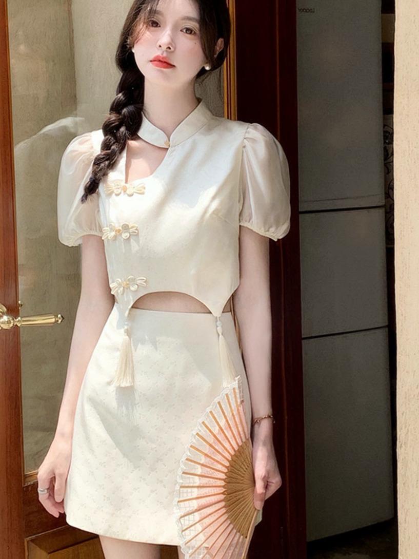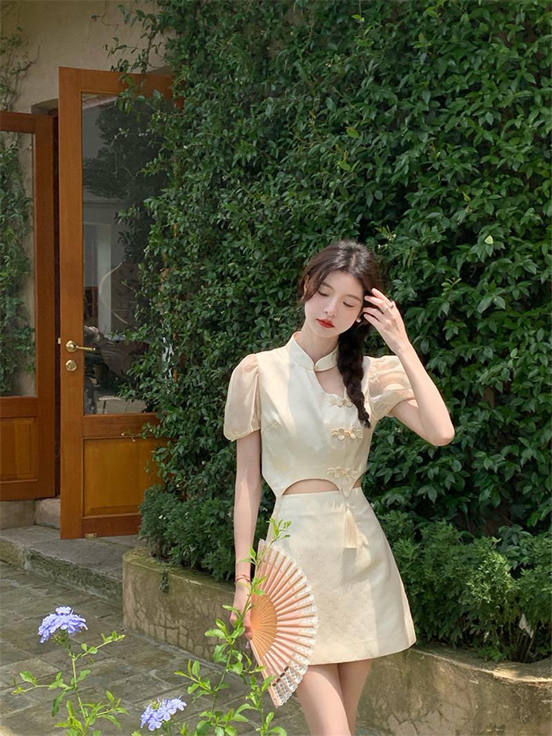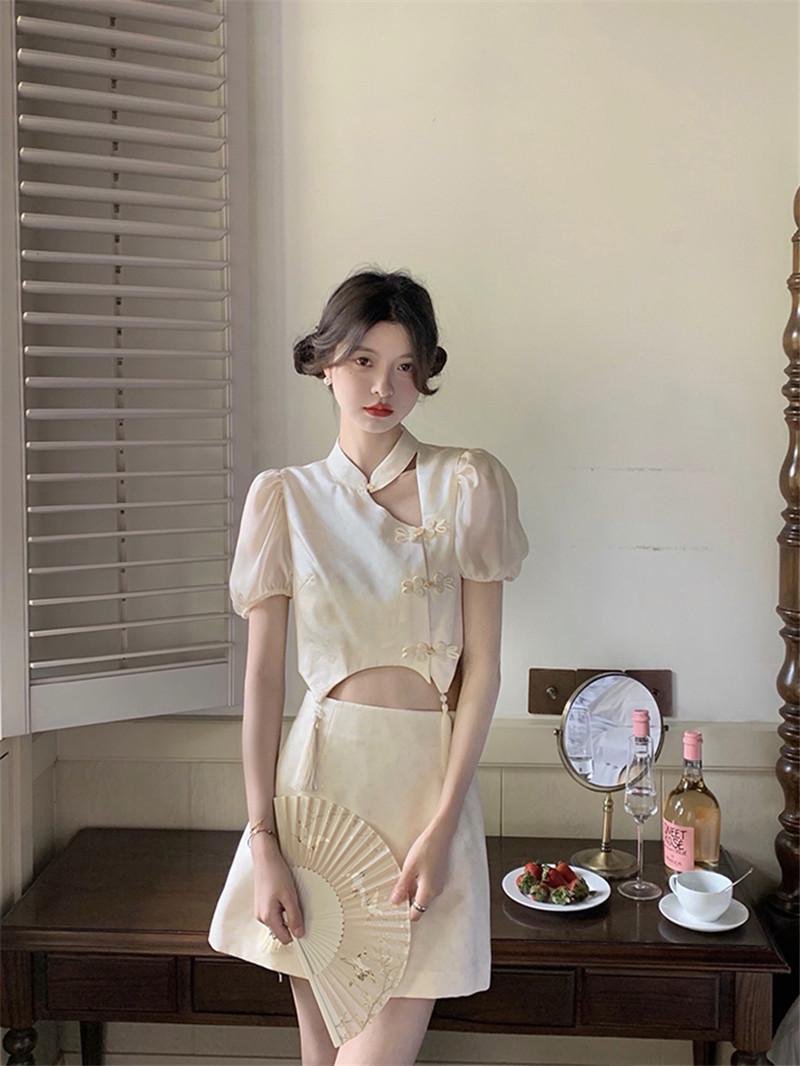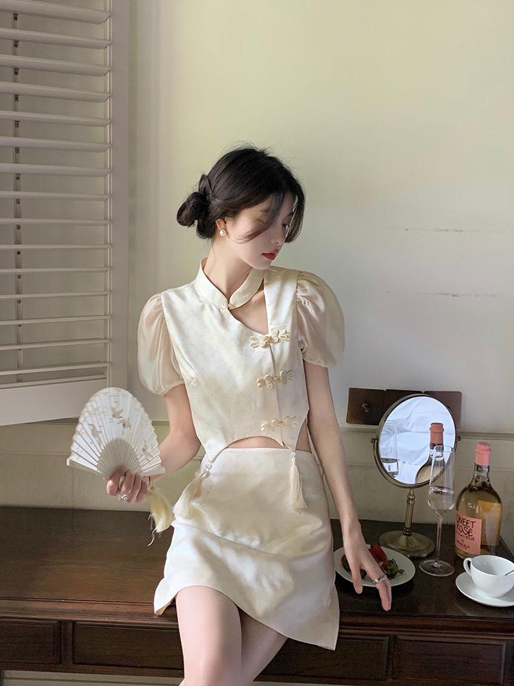 Nuevo Top Corto Elegante Chinoiserie de Verano para Mujer, Vestido de Traje Mejorado de Alta Gama, Top Chinoiserie Nuevo con Aberturas, Cheongsam
