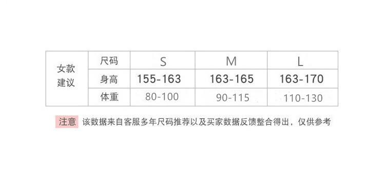 S recommended 80-95, M recommendation 95-110, L recommendation 110-125